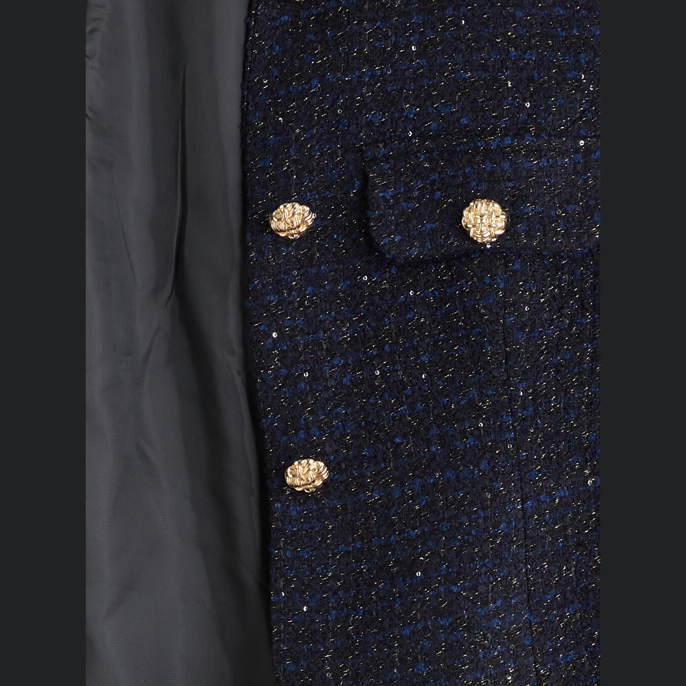 فيست نسائي شتوي – أزرق (ياقة دائرية، تصميم بكِمر، خامة بوليڤيسكون، قصة قياسية، بطول قصير)