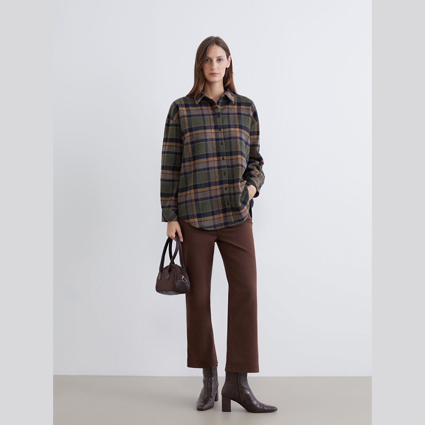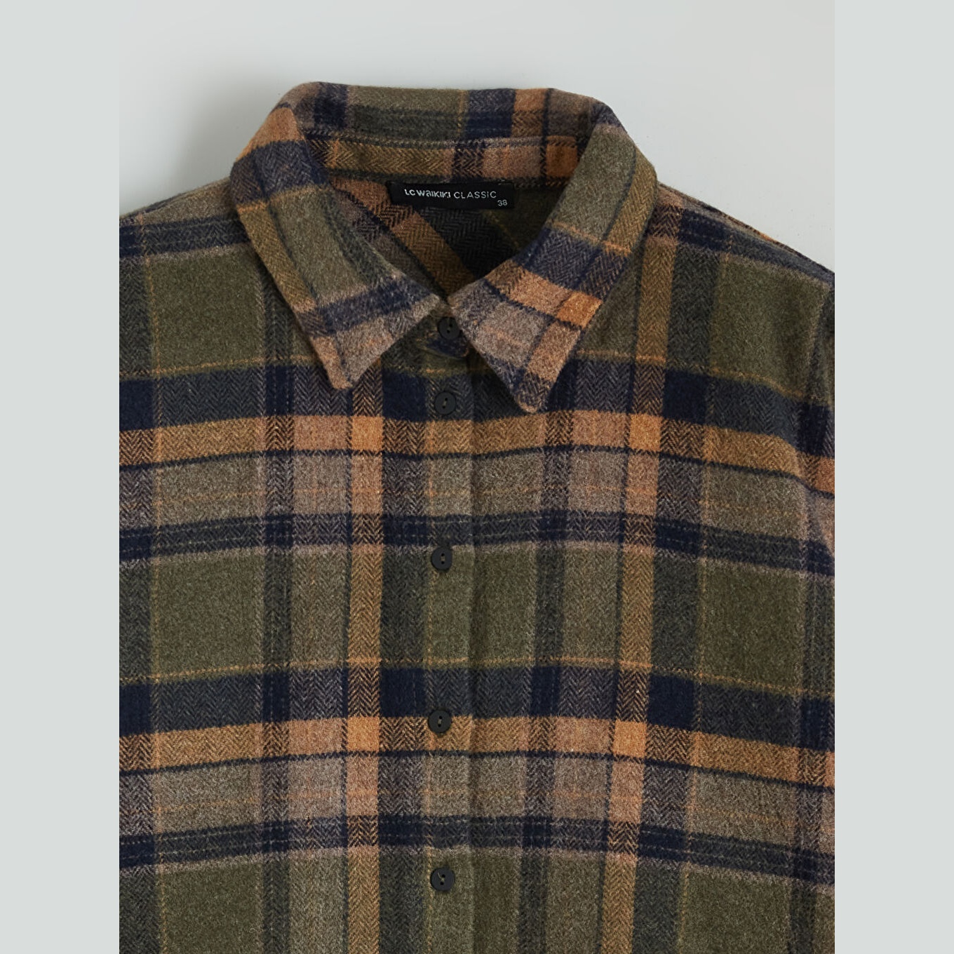 قميص عملي بلون أخضر بنقشة مربعات كلاسيكية من مجموعة LC Waikiki Classic، يتميز بياقة قميص تقليدية تضيف لمسة رسمية ناعمة، وقصة واسعة (Oversize) تمنحك مظهرًا عصريًا ومريحًا. مصنوع من خامة متوسطة السماكة، بأكمام طويلة، بطول يصل إلى الورك، ويُغلق بأزرار أمامية، مثالي للتنسيق مع البنطال القماشي أو الجينز في الإطلالات اليومية أو الكاجوال.