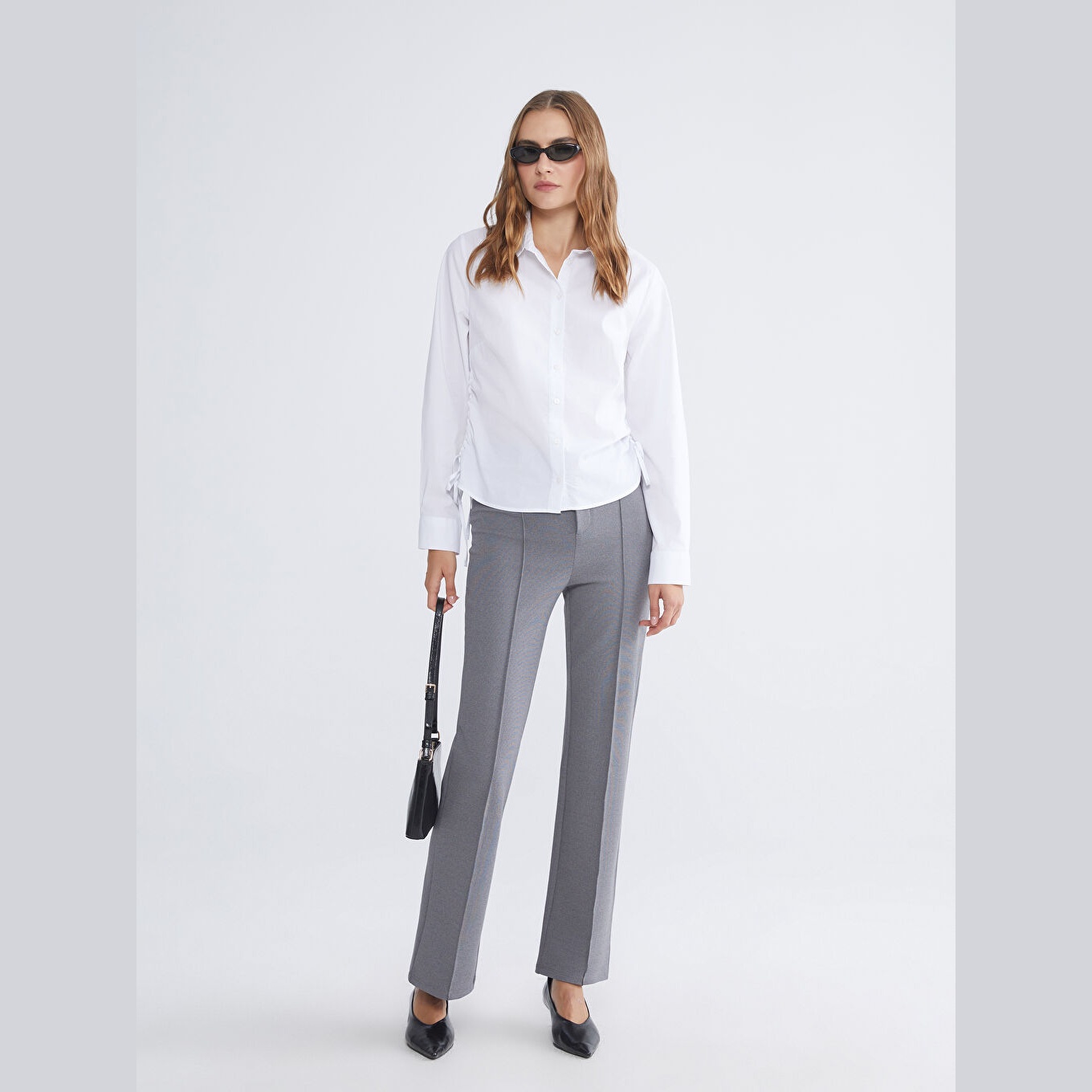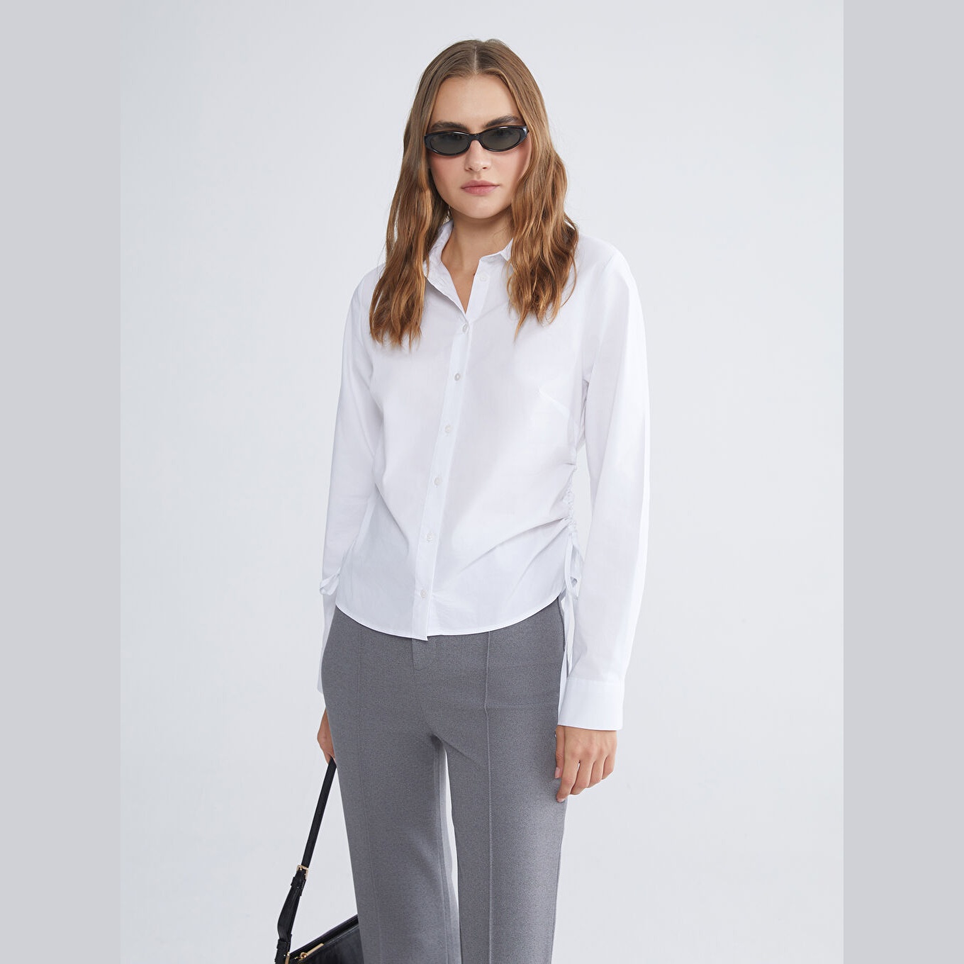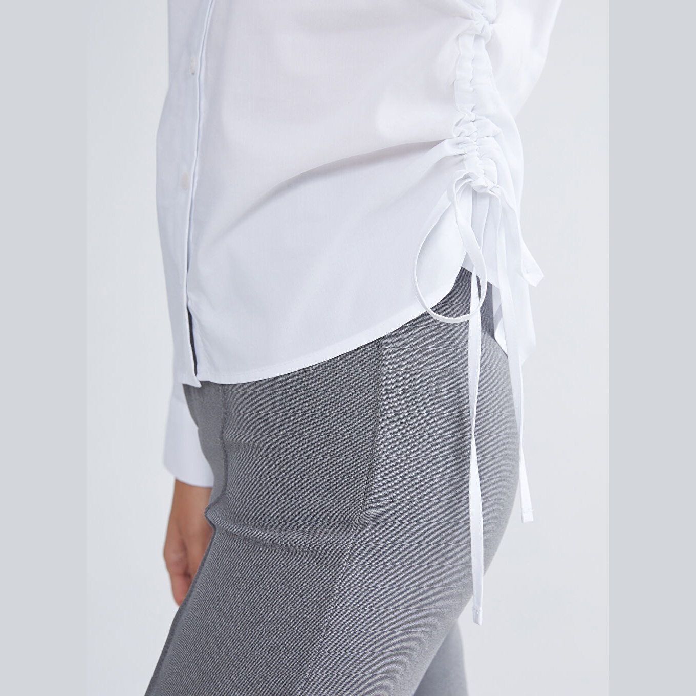 قميص أنيق بلون أبيض نقي من مجموعة LC Waikiki للمقاسات الكبيرة، يتميز بياقة قميص تقليدية تضيف لمسة رسمية ناعمة، وقصة قياسية (Regular Fit) تمنحك مظهرًا متوازنًا ومريحًا. مصنوع من خامة بوبلين مرنة بتركيبة %72 قطن، %24 بوليستر، %4 إيلاستان، بأكمام طويلة، بسماكة متوسطة، ويُغلق بأزرار أمامية، مع تفصيل ربطة أمامية تضيف لمسة أنثوية عصرية، مثالي للتنسيق مع البنطال القماشي أو الجينز في الإطلالات اليومية أو المكتبية.