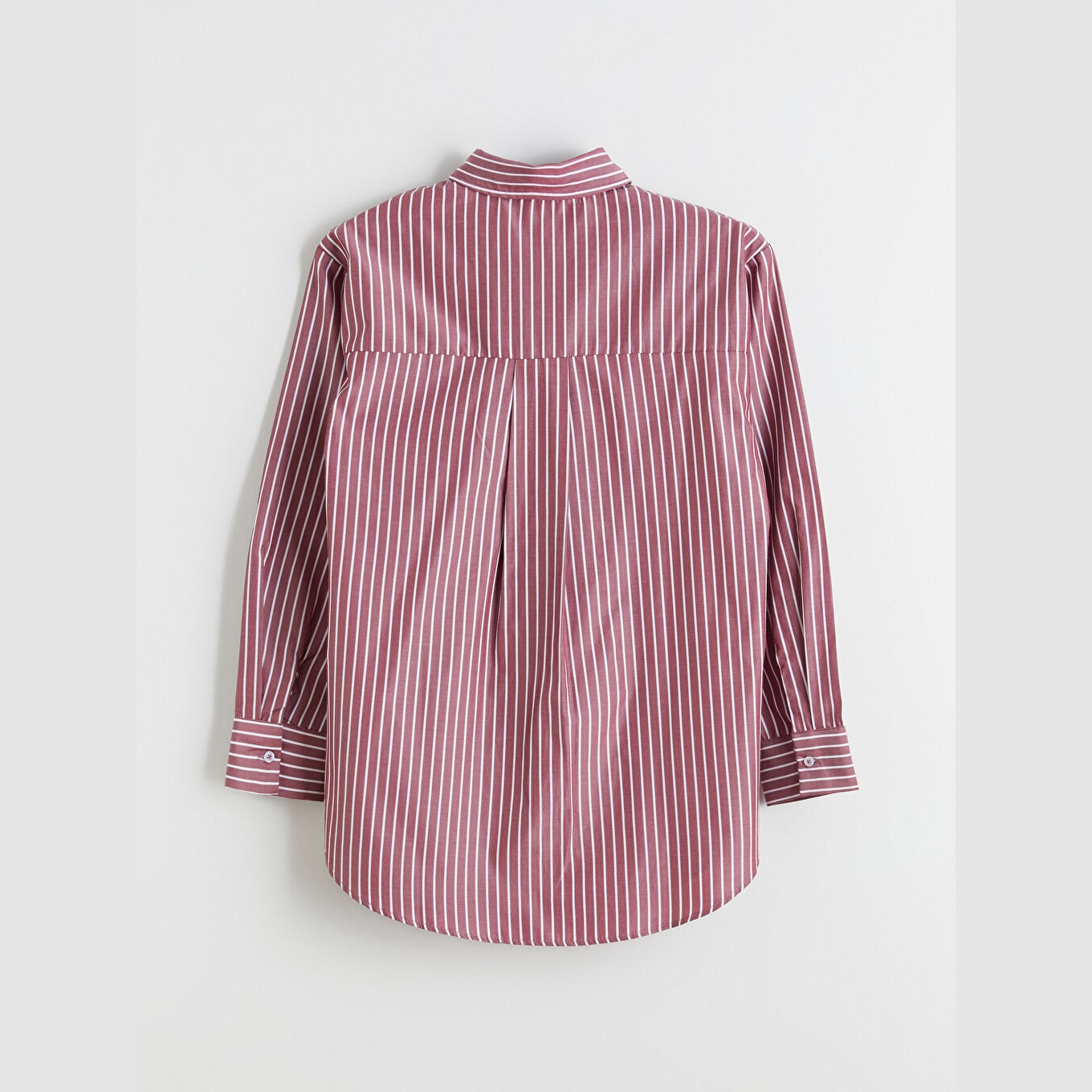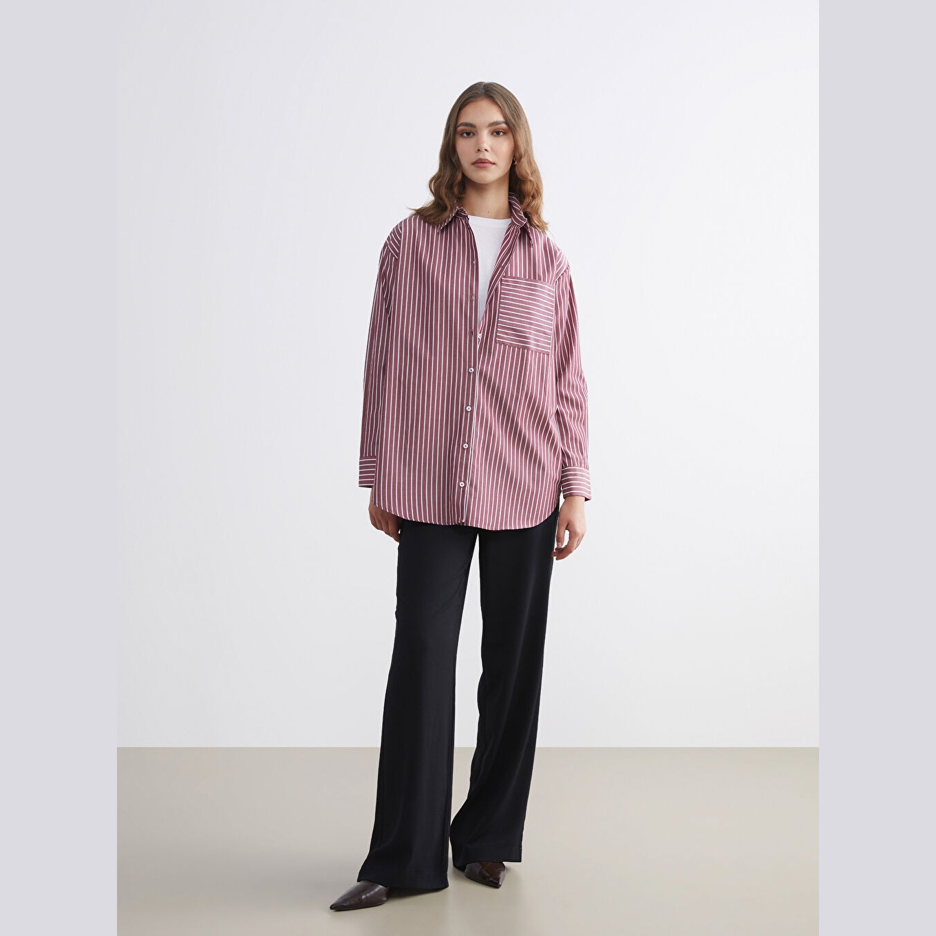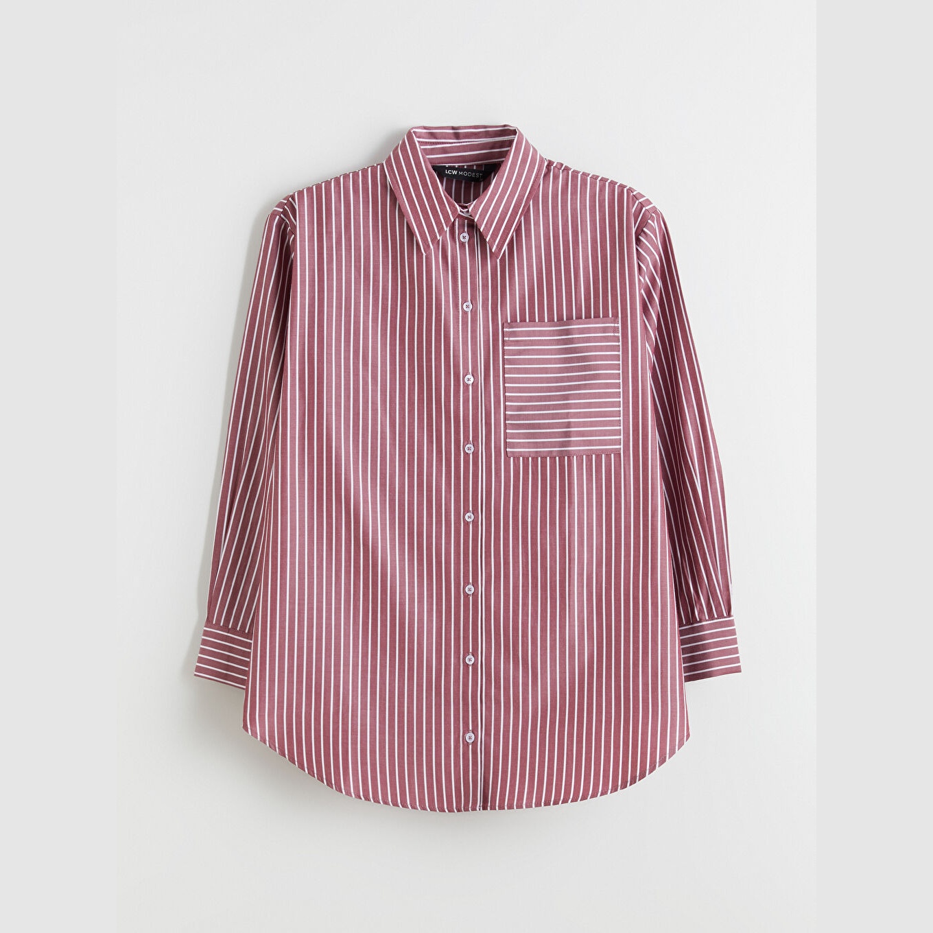 تونيك أنيق بلون بوردو بنقشة خطوط ناعمة من مجموعة LCW Modest، يتميز بياقة قميص تقليدية تضيف لمسة رسمية ناعمة، وقصة فضفاضة (Loose Fit) تمنحك مظهرًا مريحًا ومحتشمًا. مصنوع من خامة بوبلين مزدوجة بتركيبة %50 قطن، %50 بوليستر، بأكمام طويلة، بسماكة متوسطة، بطول يصل إلى الورك، ويُغلق بأزرار أمامية، مثالي للتنسيق مع البنطال القماشي أو الجينز في الإطلالات اليومية أو العملية.