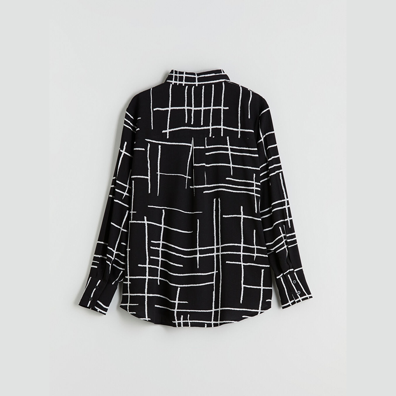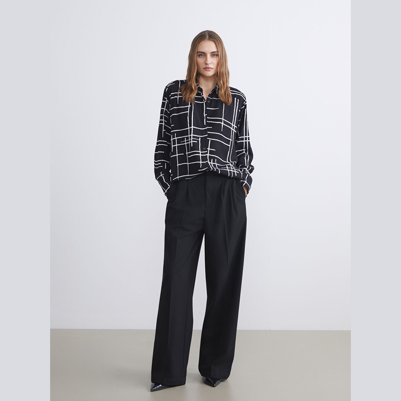 قميص أنيق من مجموعة LCW ECO بلون أسود مزين بنقشة فنية متعددة الألوان، يتميز بياقة قميص تقليدية تضيف لمسة رسمية ناعمة، وقصة واسعة (Loose Fit) تمنحك مظهرًا عصريًا ومريحًا. مصنوع من خامة فيسكوز منسوجة (Armürlü) 100%، بأكمام طويلة، بسماكة متوسطة، بطول يصل إلى الورك، ويُغلق بأزرار أمامية، مثالي للتنسيق مع البنطال القماشي أو التنورة لإطلالة أنثوية أنيقة.