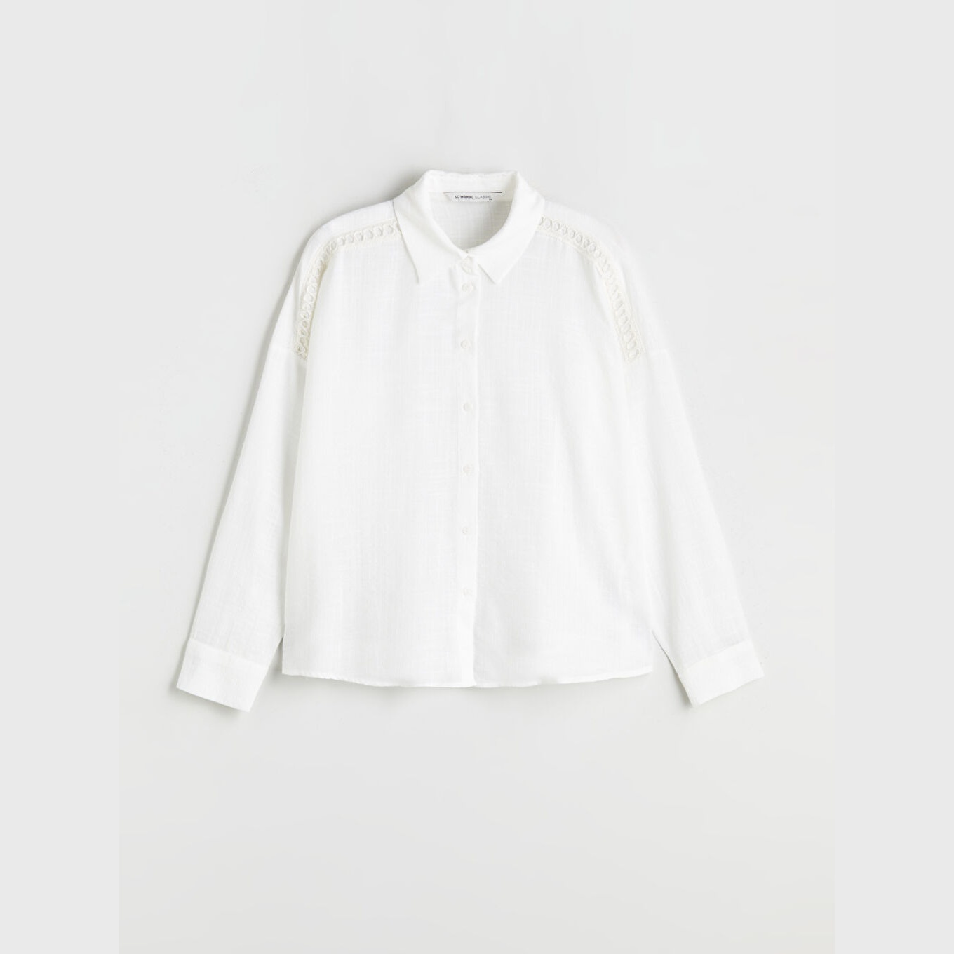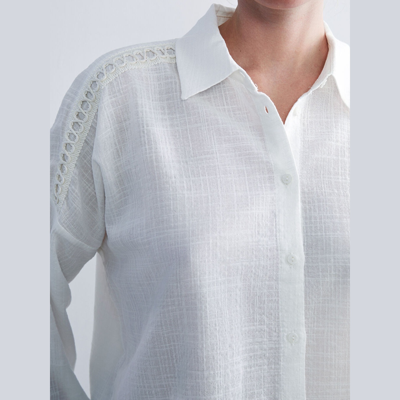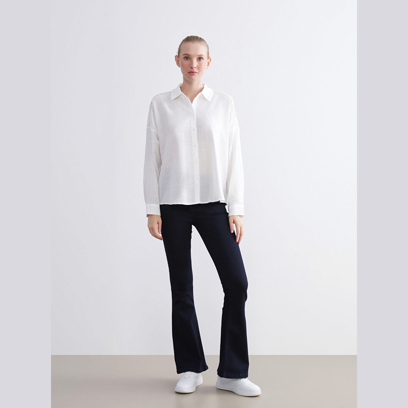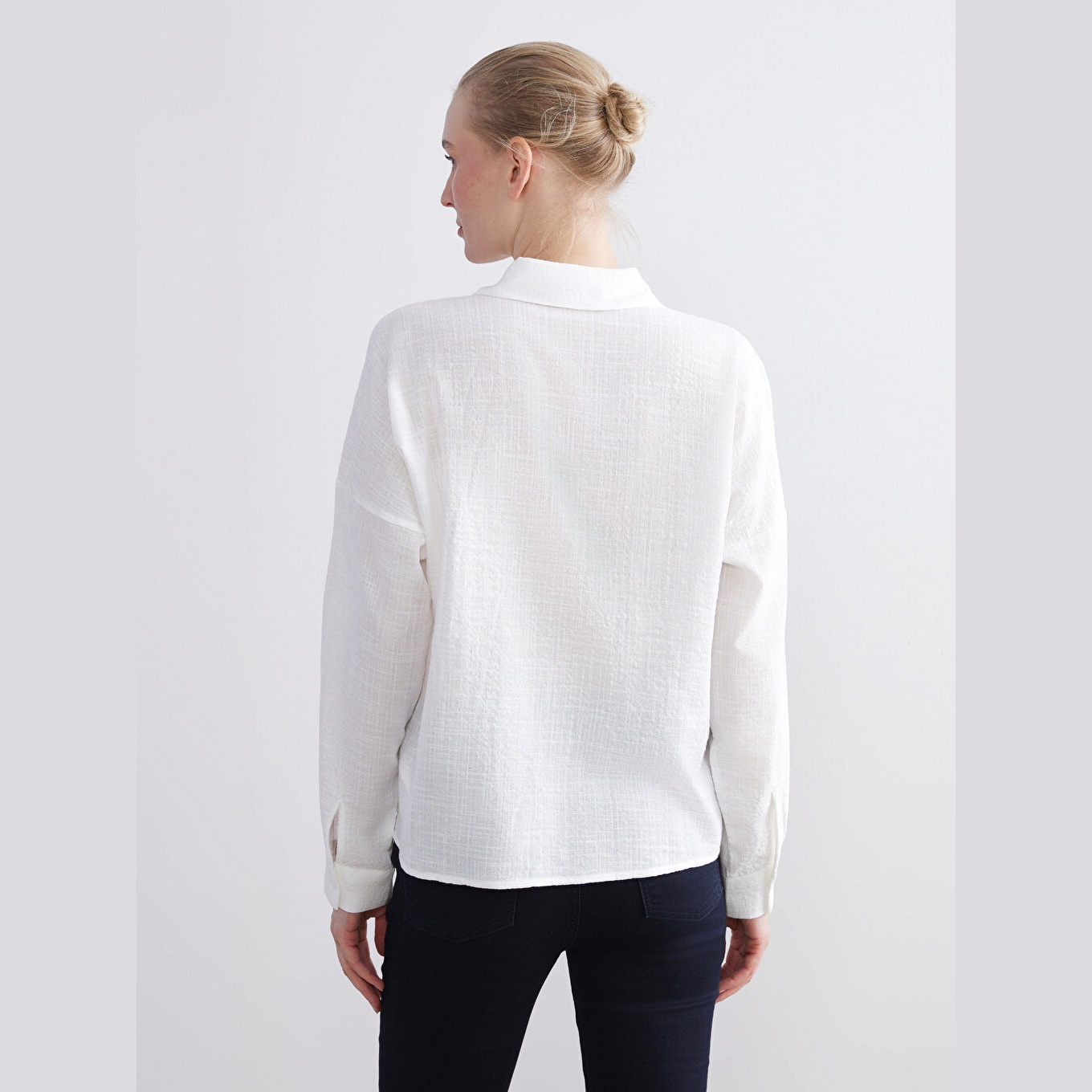 قميص أنيق بلون أبيض سادة من مجموعة LCWAIKIKI Classic – المقاسات الكبيرة، يتميز بياقة قميص تقليدية تضيف لمسة رسمية ناعمة، وقصة واسعة (Loose Fit) تمنحك مظهرًا مريحًا وعصريًا. مصنوع من خامة ناعمة ومريحة بتركيبة %60 قطن، %40 فيسكوز، بأكمام طويلة، بسماكة متوسطة، بطول يصل إلى الورك، ويُغلق بأزرار أمامية، مثالي للتنسيق مع البنطال القماشي أو الجينز في الإطلالات اليومية أو العملية.
