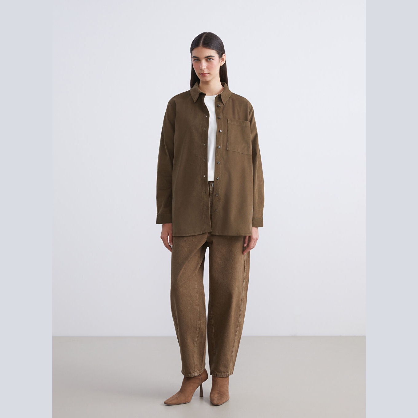 تونيك أنيق بلون زيتي سادة من مجموعة LCW Modest، يتميز بياقة قميص تقليدية تضيف لمسة رسمية ناعمة، وقصة قياسية (Regular Fit) تمنحك مظهرًا مرتبًا ومريحًا. مصنوع من خامة كاديفه قطنية 100%، بأكمام طويلة، بسماكة متوسطة، بطول يصل إلى الورك، ويُغلق بأزرار أمامية، مثالي للتنسيق مع البنطال القماشي أو الجينز في الإطلالات اليومية أو العملية خلال المواسم الباردة.