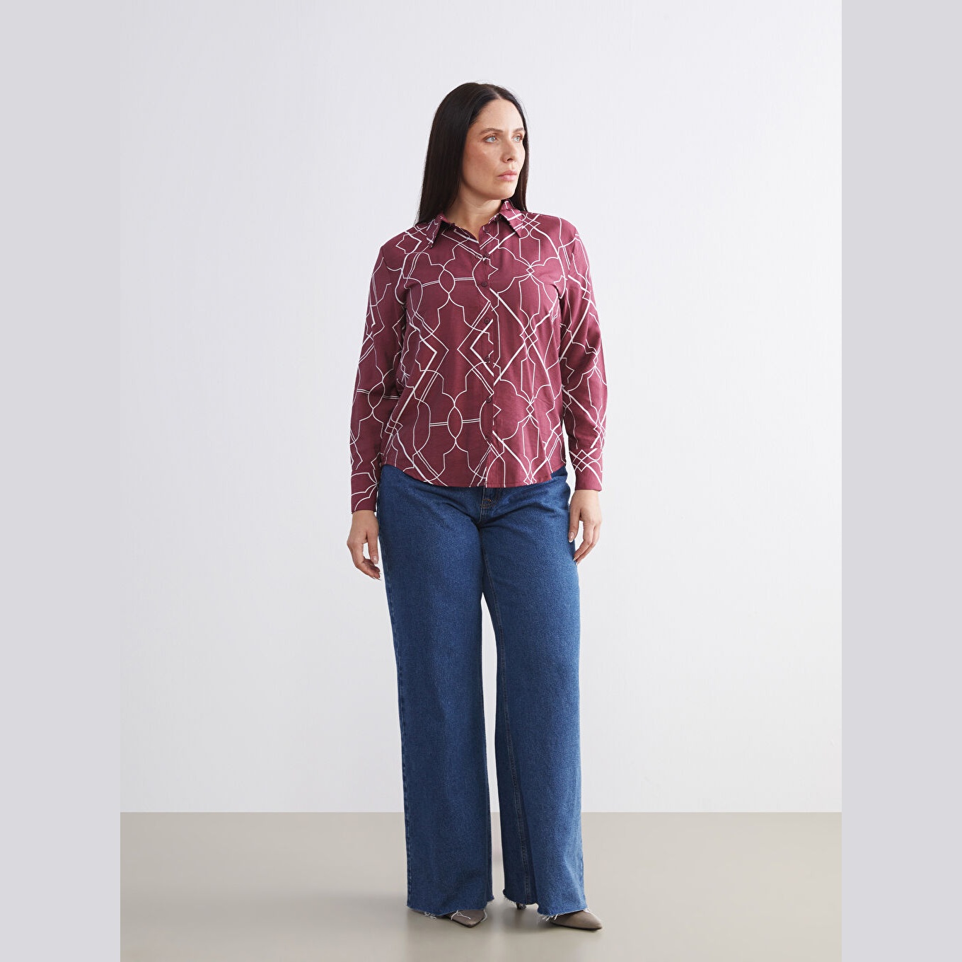 قميص أنيق بلون بوردو مزخرف بنقشة ناعمة من مجموعة LCWAIKIKI Classic – المقاسات الكبيرة، يتميز بياقة قميص تقليدية تضيف لمسة رسمية ناعمة، وقصة فضفاضة (Loose Fit) تمنحك مظهرًا مريحًا وانسيابيًا. مصنوع من خامة ناعمة ومريحة بتركيبة %85 فيسكوز، %15 بولياميد، بأكمام طويلة، بسماكة متوسطة، بطول يصل إلى الورك، ويُغلق بأزرار أمامية، مثالي للتنسيق مع البنطال القماشي أو الجينز في الإطلالات اليومية أو العملية.