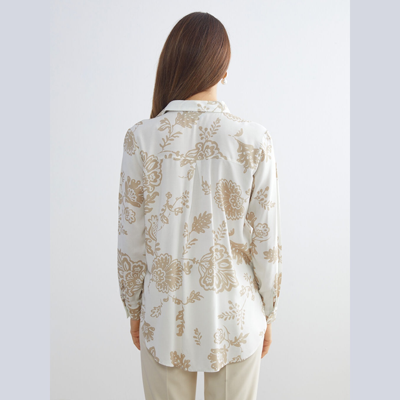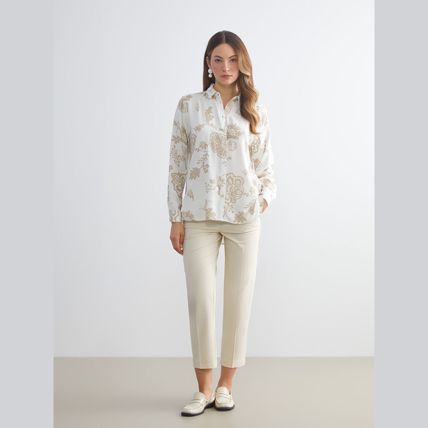 قميص أنيق بلون بيج مزخرف بنقشة زهرية ناعمة من مجموعة LCWAIKIKI Classic – المقاسات الكبيرة، يتميز بياقة قميص تقليدية تضيف لمسة رسمية ناعمة، وقصة فضفاضة (Loose Fit) تمنحك مظهرًا مريحًا وانسيابيًا. مصنوع من خامة فيكسوز طبيعية 100%، بأكمام طويلة، بسماكة خفيفة، بطول يصل إلى الورك، ويُغلق بأزرار أمامية، مثالي للتنسيق مع البنطال القماشي أو الجينز في الإطلالات اليومية أو العملية.