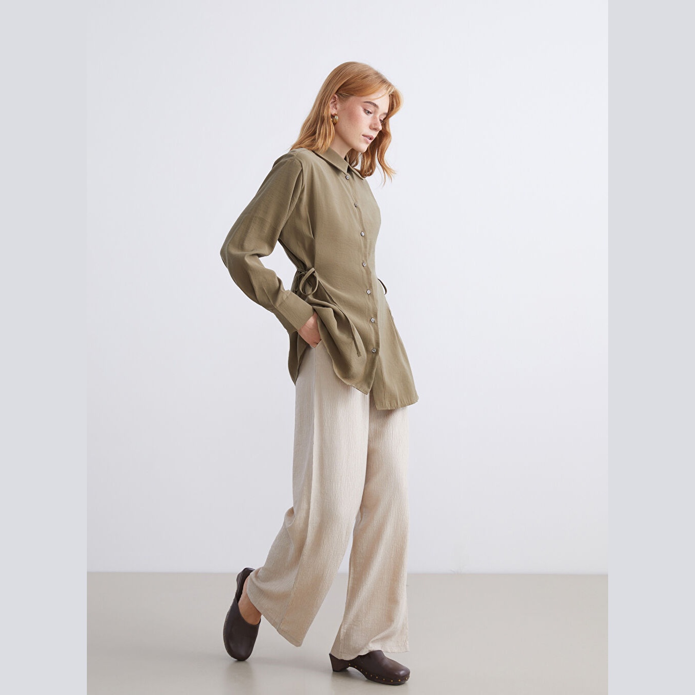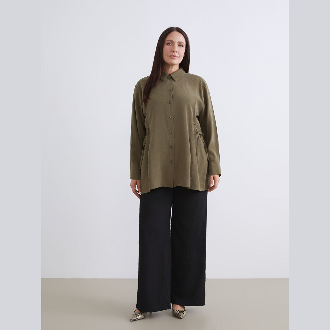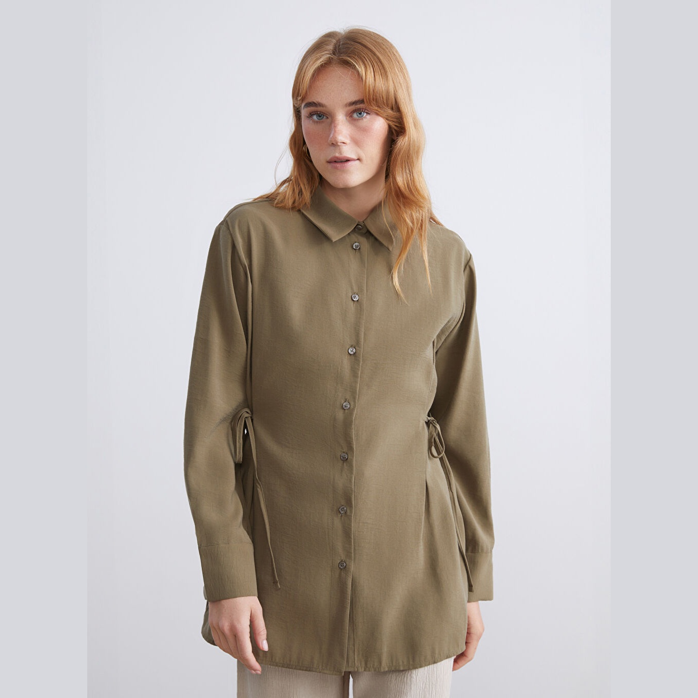 تونيك أنيق بلون أخضر سادة من مجموعة LCW Modest – الأزياء المحتشمة، يتميز بياقة قميص تقليدية تضيف لمسة رسمية ناعمة، وقصة فضفاضة (Loose Fit) تمنحك مظهرًا مريحًا وانسيابيًا. مصنوع من خامة كرينكل خفيفة ومريحة بتركيبة %84 مودال، %16 بوليستر، بأكمام طويلة، بسماكة خفيفة، بطول يصل إلى الورك، ويُغلق بأزرار أمامية، مثالي للتنسيق مع البنطال القماشي أو الجينز في الإطلالات اليومية أو العملية.