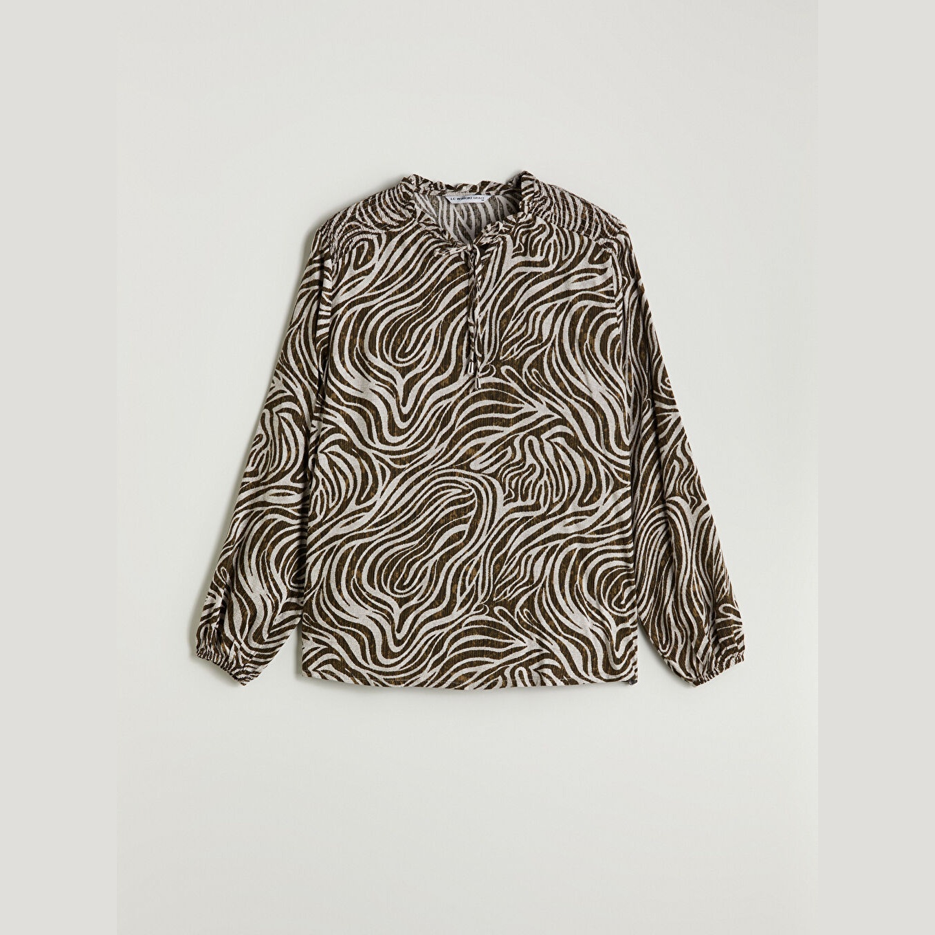 بلوز نسائي فيسكوز بياقة مربوطة – نقشة متعددة الألوان (ياقة قابلة للربط، خامة فيسكوز، قصة قياسية، تصميم عملي، بطول الورك)