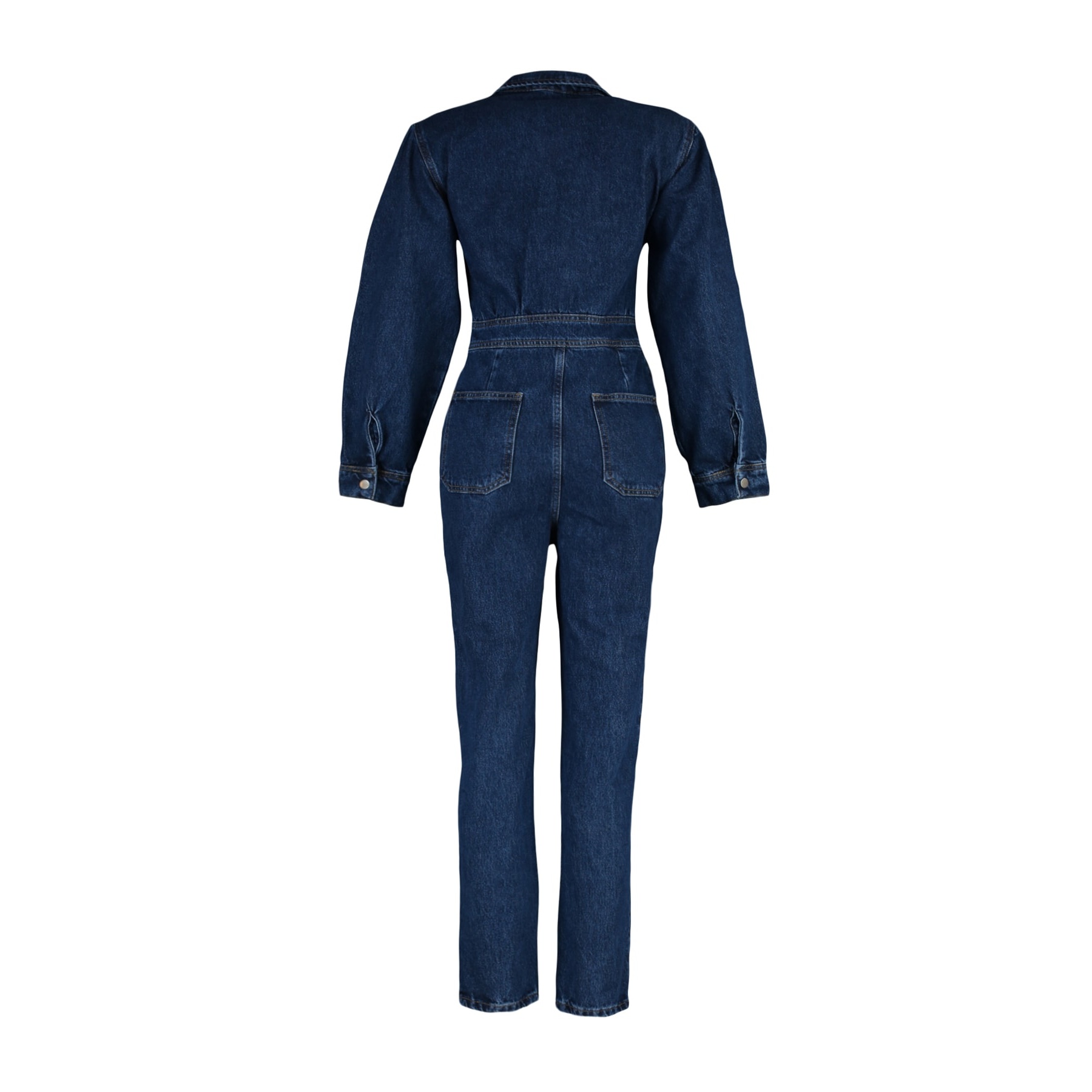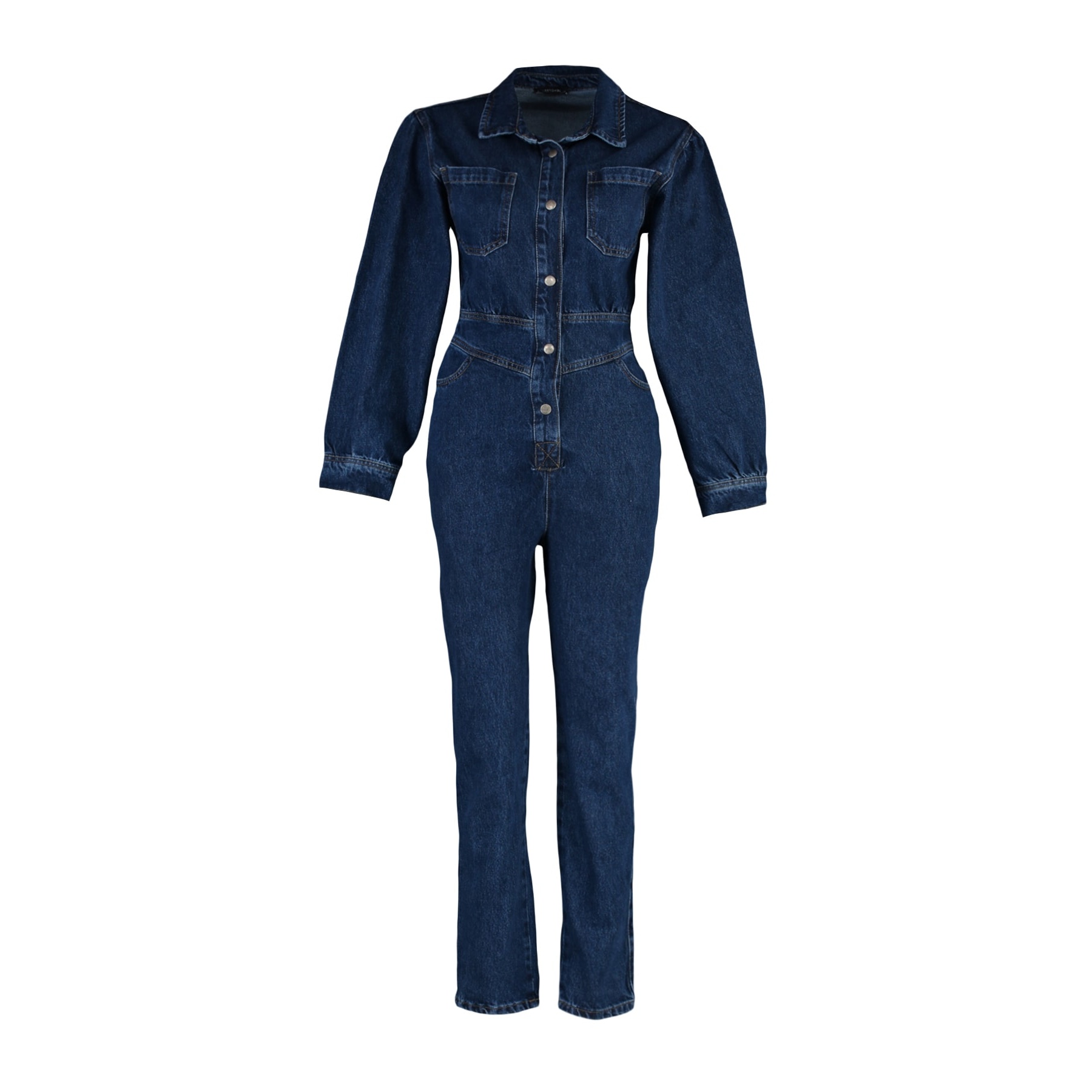 جمبسوت نسائي – كحلي بأكمام منفوخة وقصة ضيقة (قماش دنيم، تصميم عملي)