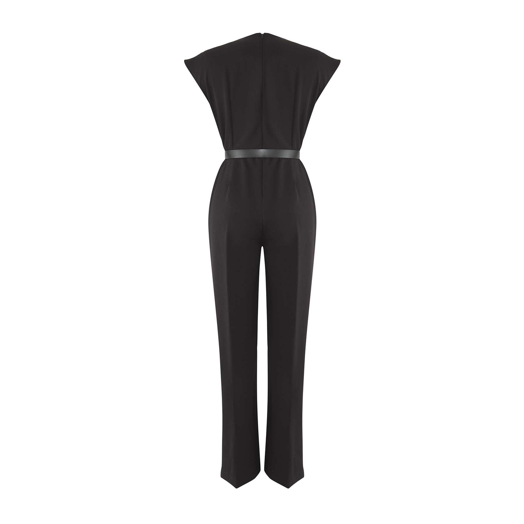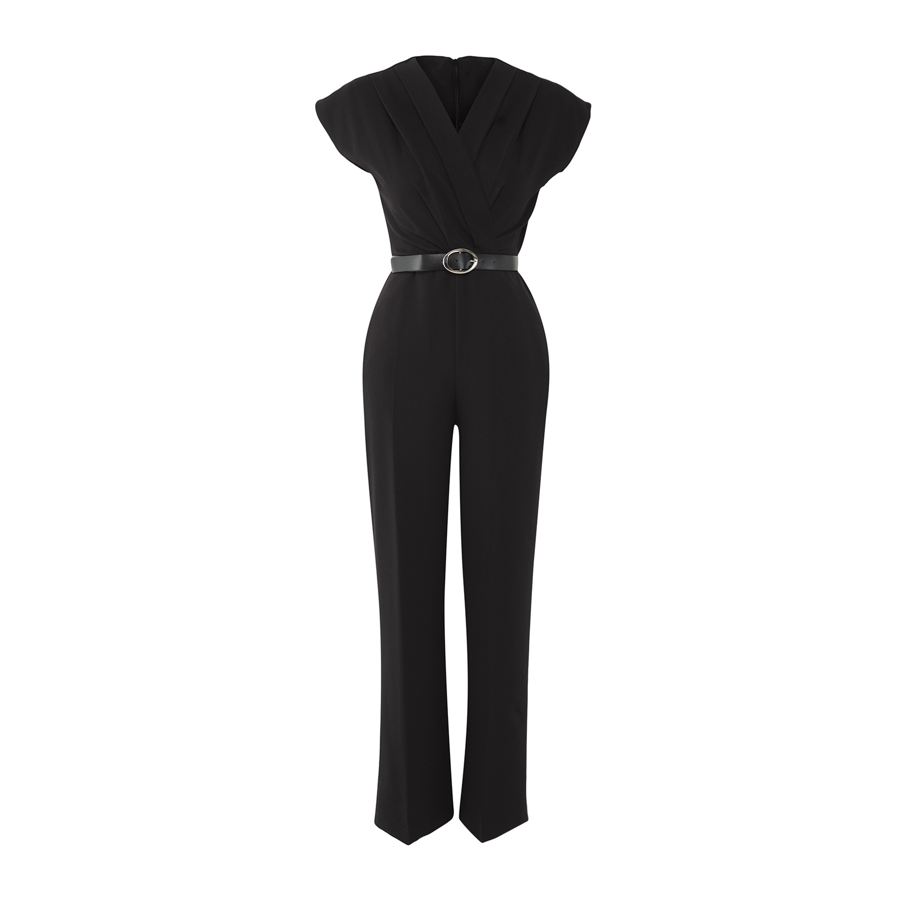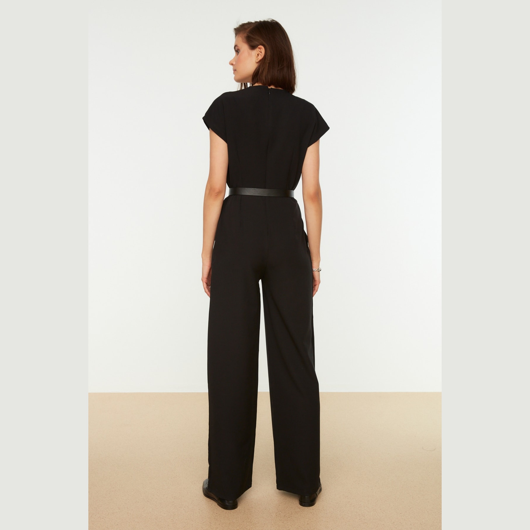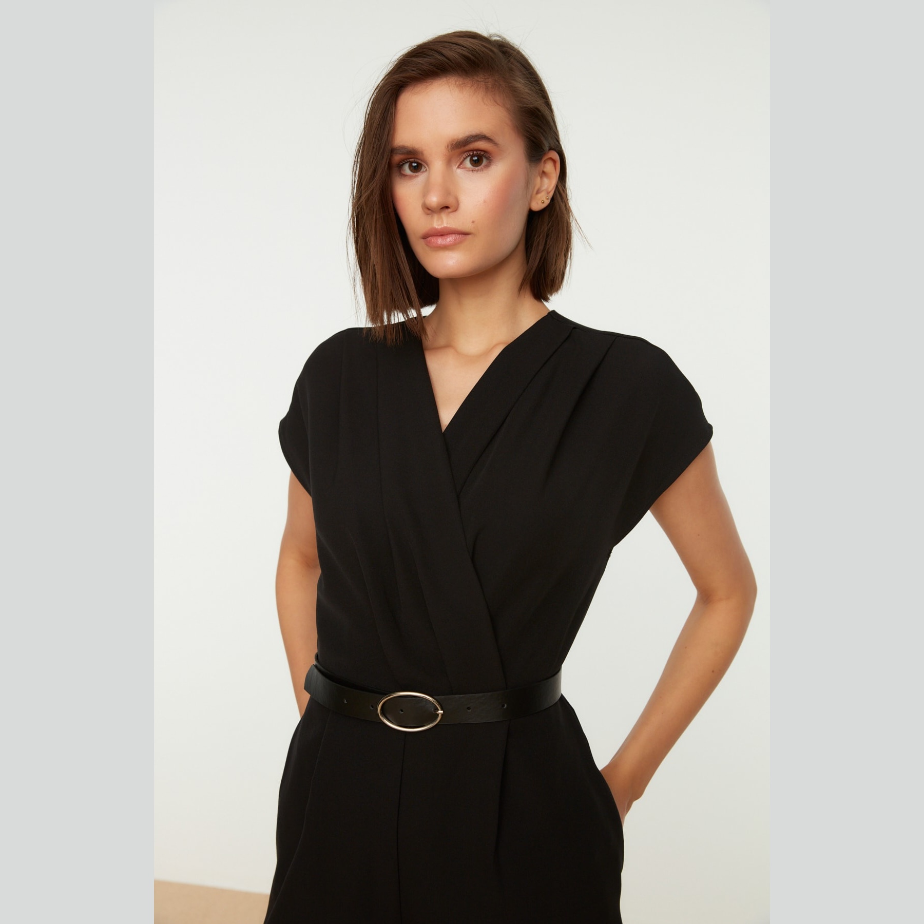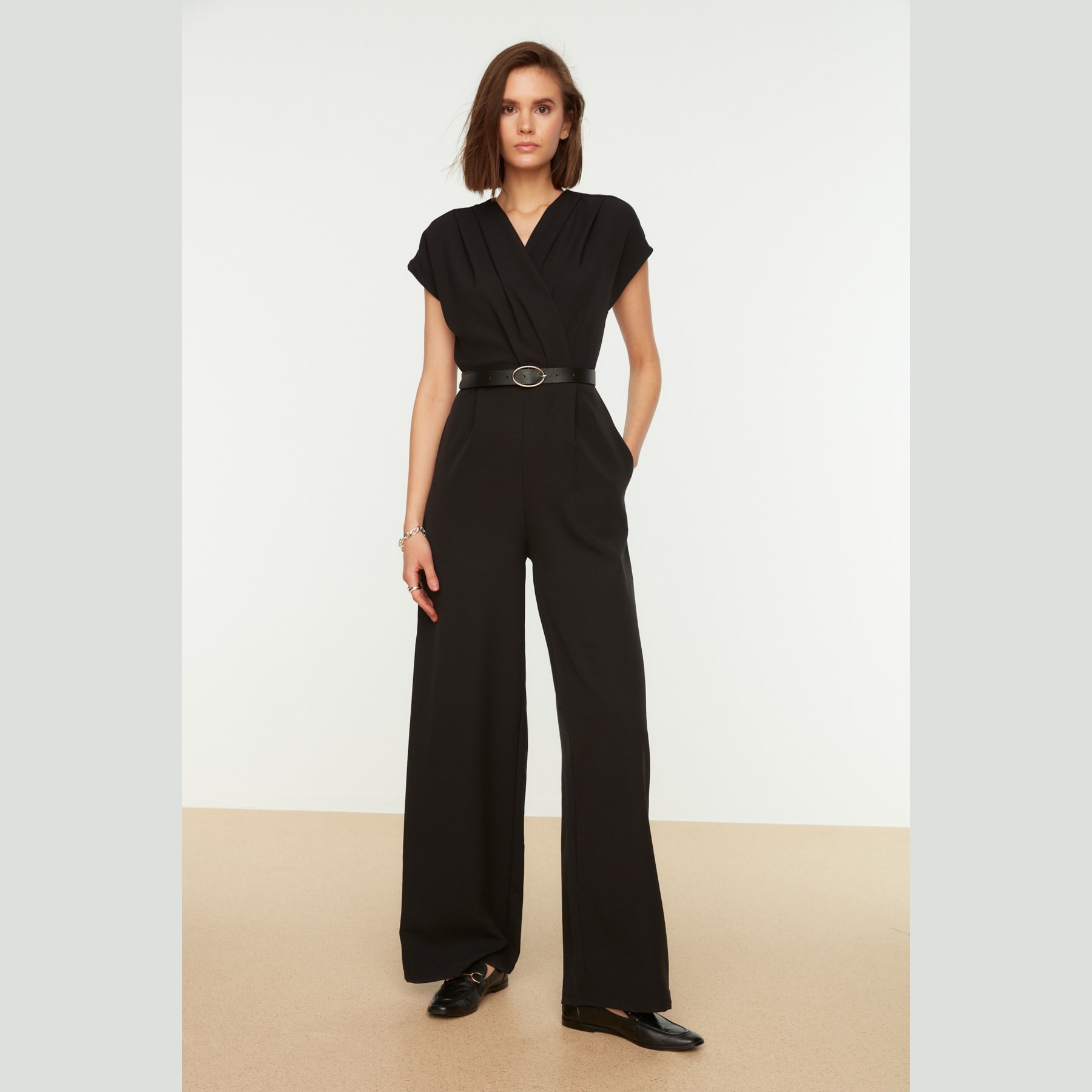 جمبسوت أنيق بلون أسود موحد من مجموعة Trendyolmilla – لأناقة يومية راقية بلمسة كلاسيكية مريحة، يتميز بقصة مستقيمة وواسعة من الأرجل (Straight & Wide Leg) مع ياقة كروڤاز متقاطعة وحزام خصر قابل للتعديل، مصنوع من خامة دوكوم متينة بتركيبة 87% بوليستر، 13% إيلاستان، ما يجعله مثاليًا للإطلالات العملية والمناسبات الرسمية.