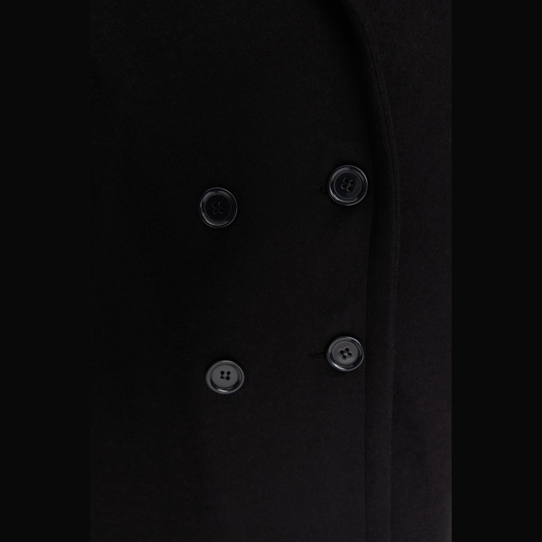كاب نسائي – أسود بقصة واسعة وطول كامل (قماش كاشمير صوفي، تصميم شتوي)