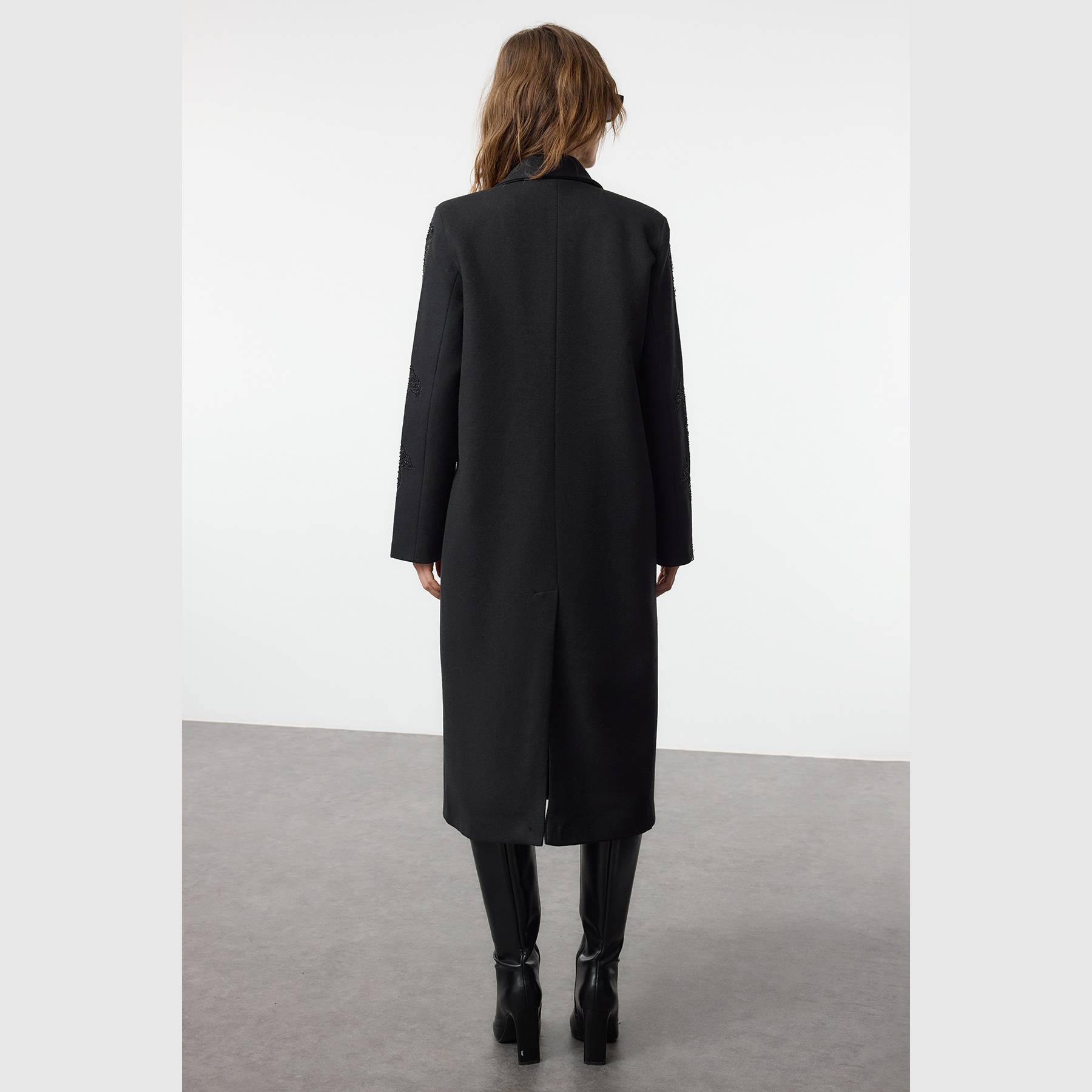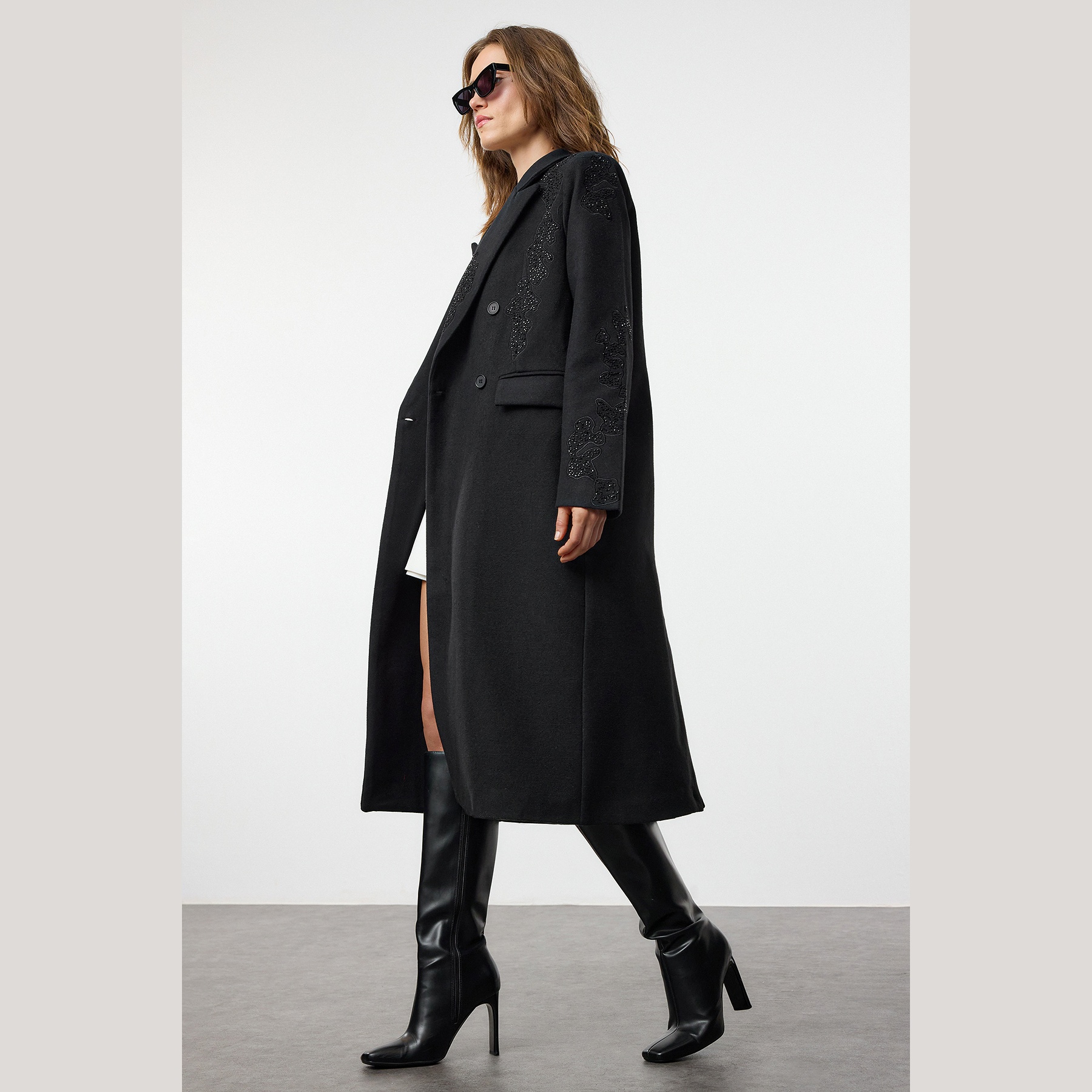 كاب شتوي أنيق بلون أسود موحد من مجموعة Trendyolmilla – لأناقة دافئة بلمسة فنية ناعمة، يتميز بقصة منتظمة (Regular Fit) وطول كامل، مع ياقة جاكيت كلاسيكية، وأكمام طويلة، وتفاصيل تطريز ناعمة تضيف لمسة أنثوية، مصنوع من خامة ناعمة ومريحة بتركيبة تشمل 61% بوليستر، 36% قطن، 3% إيلاستان، ومبطن بالكامل، ما يجعله مثاليًا لأيام الشتاء الباردة.