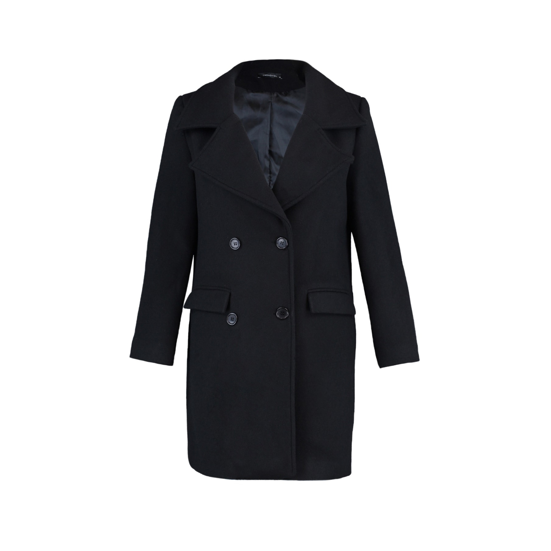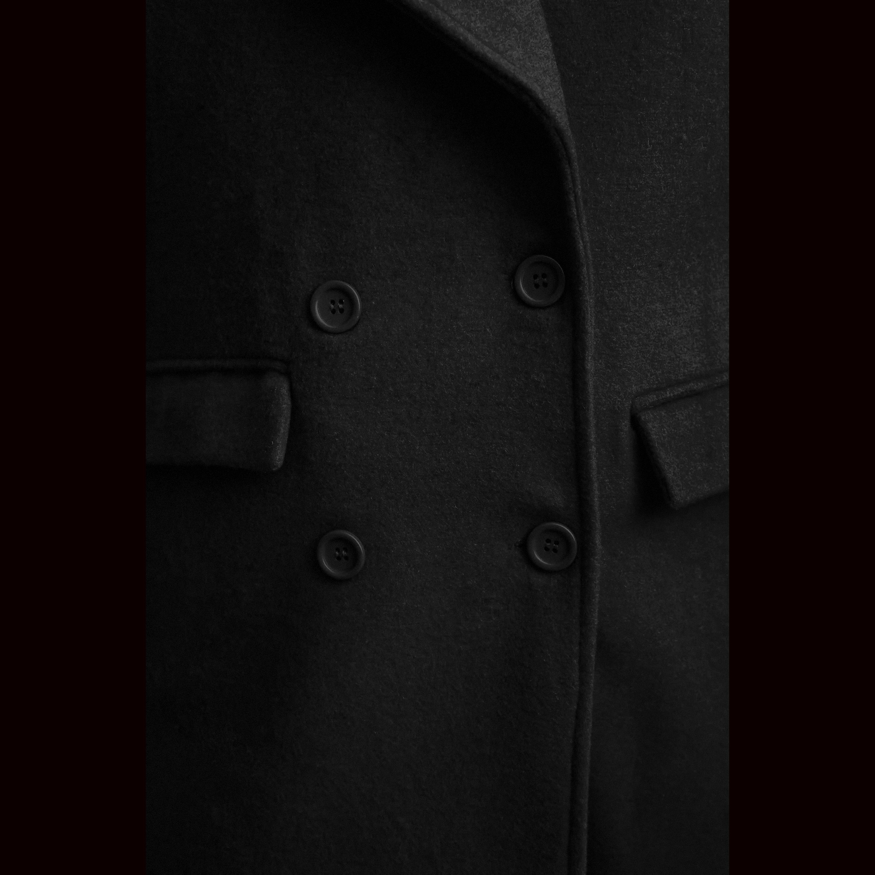كاب نسائي – أسود بإغلاق أمامي بالأزرار (قماش كاشمير، قصة منتظمة)