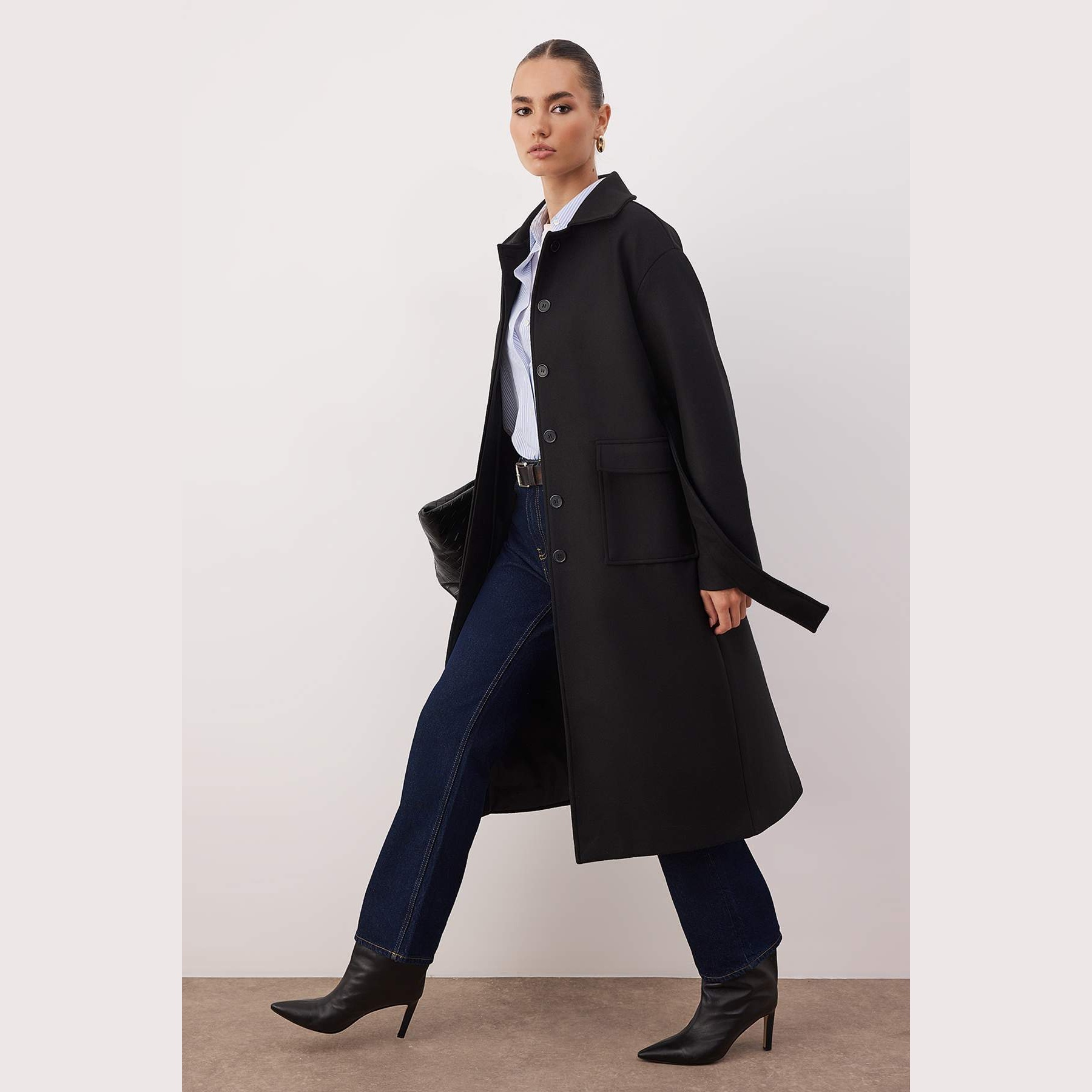 كاب شتوي أنيق بلون أسود كلاسيكي من مجموعة Trendyolmilla – لأناقة عملية بلمسة مريحة وعصرية، يتميز بقصة Oversize واسعة وطويلة مع ياقة جاكيت كلاسيكية، وأكمام طويلة، وإغلاق أمامي مفرد، مزوّد بـ حزام خصر قابل للتعديل، بالإضافة إلى تفاصيل جيوب أمامية عملية، مصنوع من خامة كاشمير صوفي (Kaşe Dokuma) بتركيبة 100% بوليستر، ومبطن بالكامل، ما يجعله مثاليًا لأيام الشتاء الباردة.