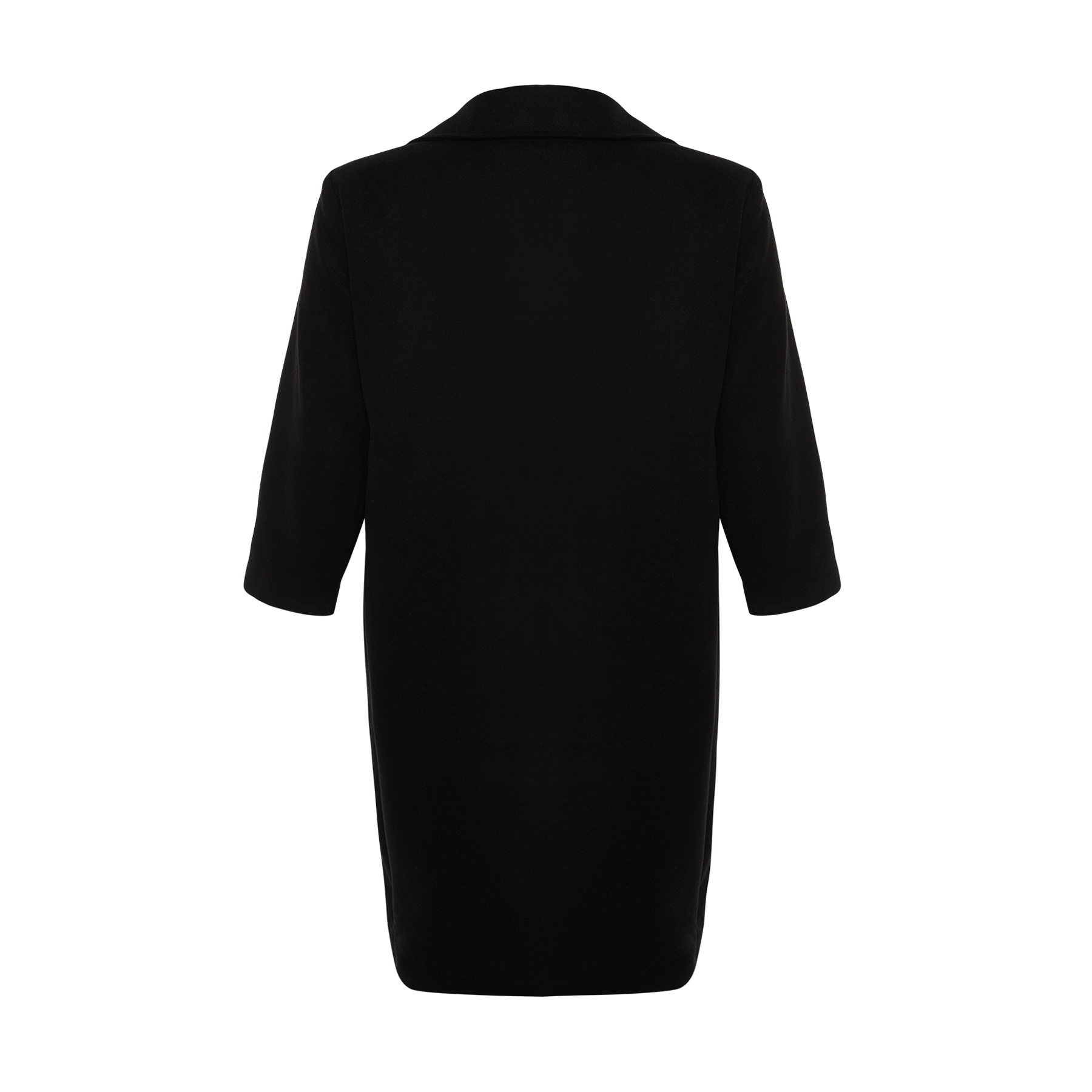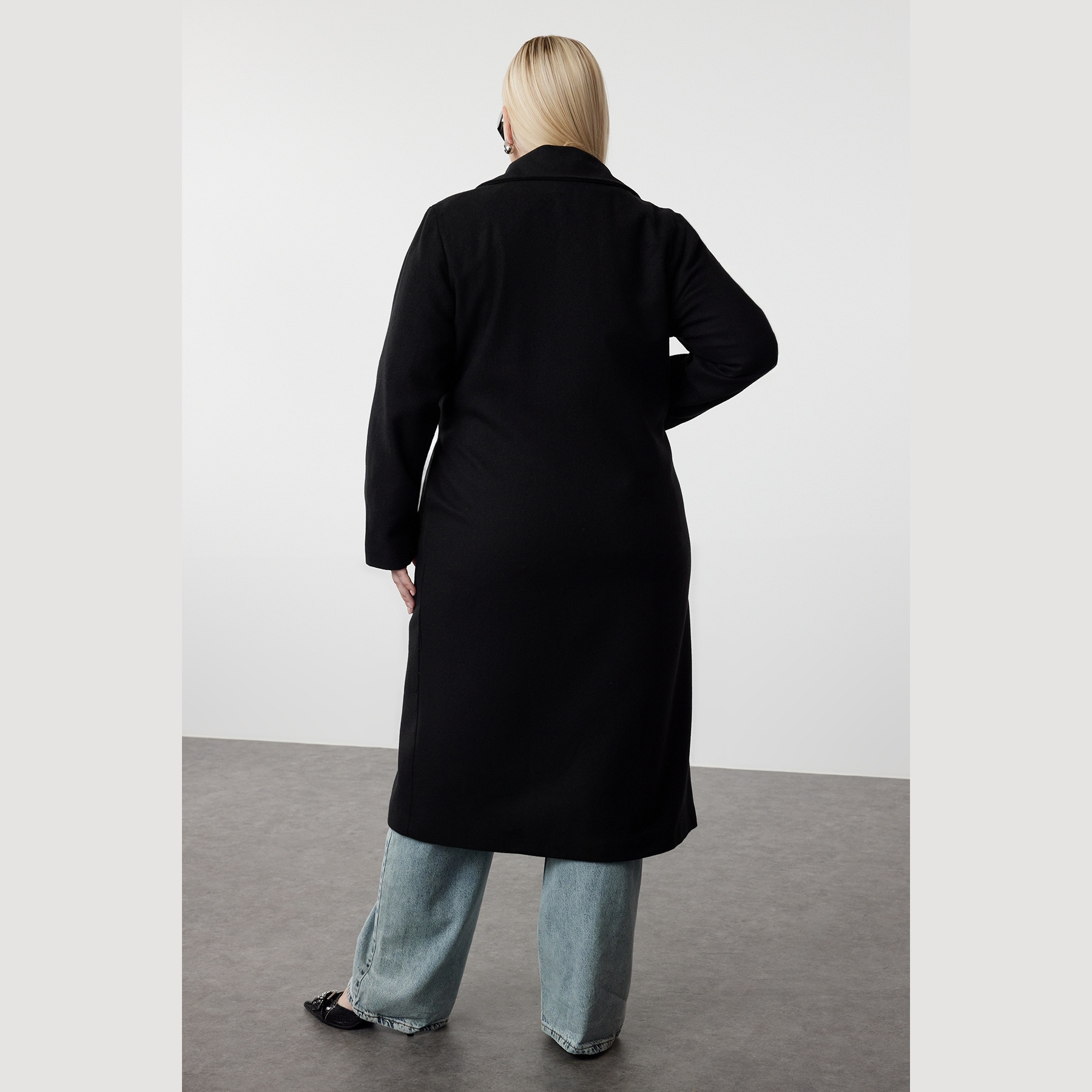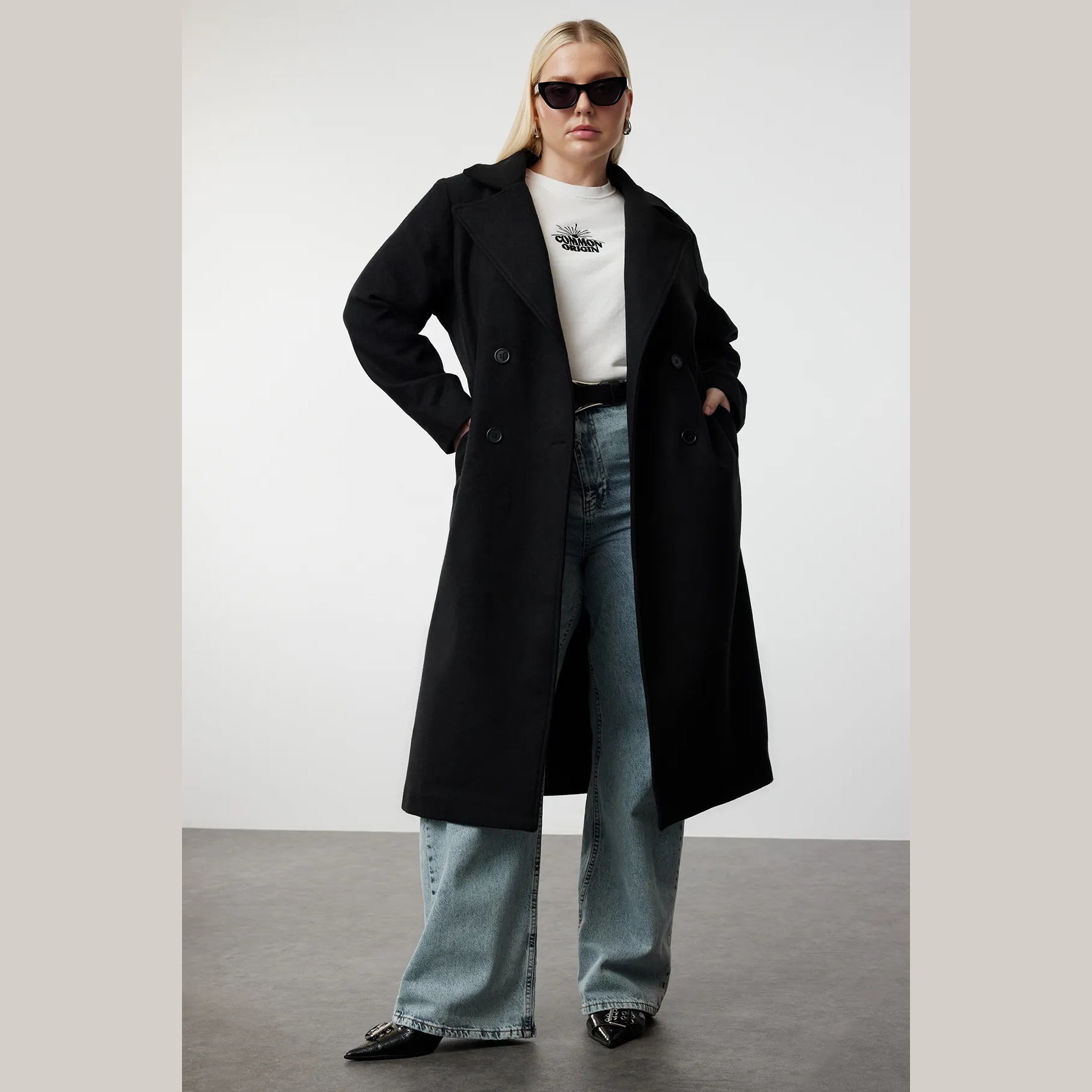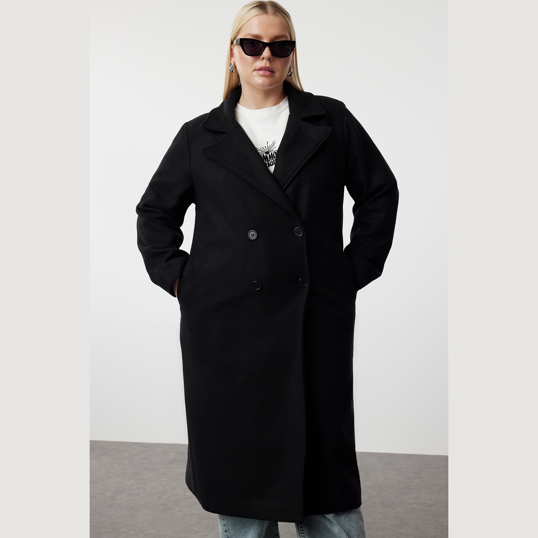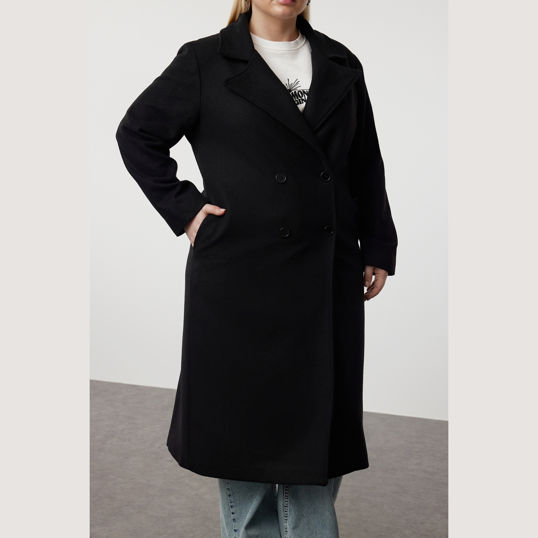 كاب شتوي أنيق بلون أسود كلاسيكي من مجموعة Trendyolmilla Curve – مصمم خصيصًا للراحة والأناقة في المقاسات الكبيرة، يتميز بقصة Oversize واسعة وطول عملي، مع ياقة كروڤاز مزدوجة، وأكمام طويلة، وإغلاق أمامي مزدوج، مصنوع من خامة كاشمير صوفي (Kaşe Dokuma) بتركيبة غنية تشمل 49% بوليستر، 22% أكريليك، 19% صوف، 6% فيسكوز، 4% قطن، ومبطن بالكامل، ما يجعله مثاليًا لأيام الشتاء الباردة.