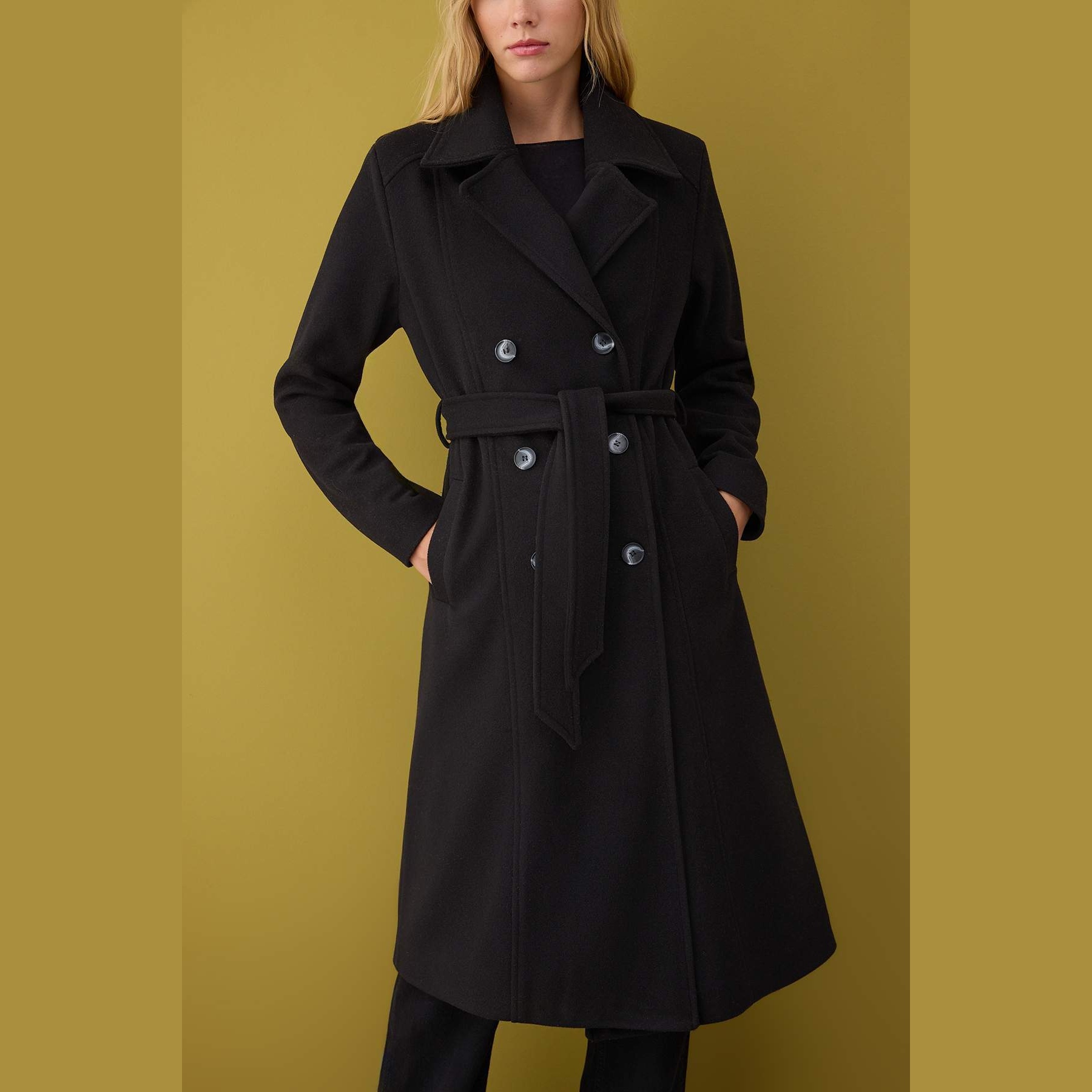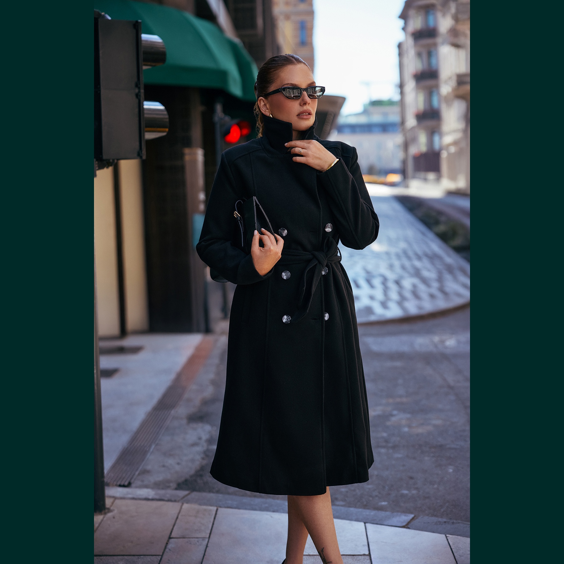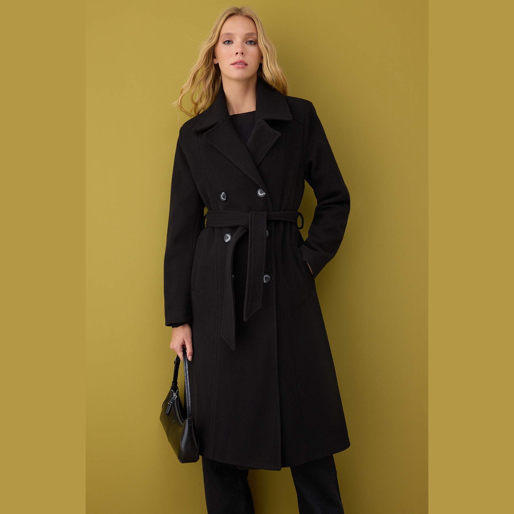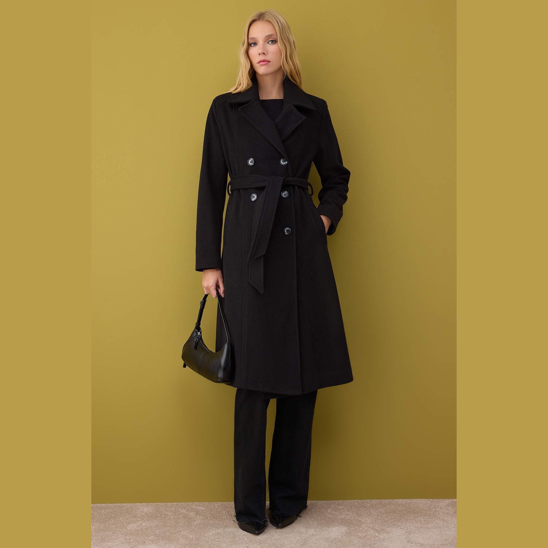كاب شتوي أنيق بلون أسود كلاسيكي من مجموعة Trendyolmilla – لأناقة شتوية عملية بلمسة ناعمة، يتميز بقصة Oversize واسعة وطويلة مع ياقة كروڤاز مزدوجة، وأكمام طويلة، وإغلاق أمامي مزدوج، مصنوع من خامة كاشمير ناعم الملمس (Kaşe Dokuma) بتركيبة 100% بوليستر، ومبطن بالكامل، ما يجعله مثاليًا لأيام الشتاء الباردة.