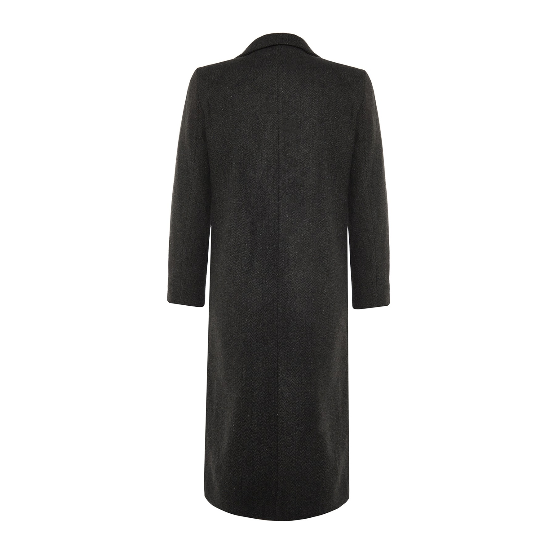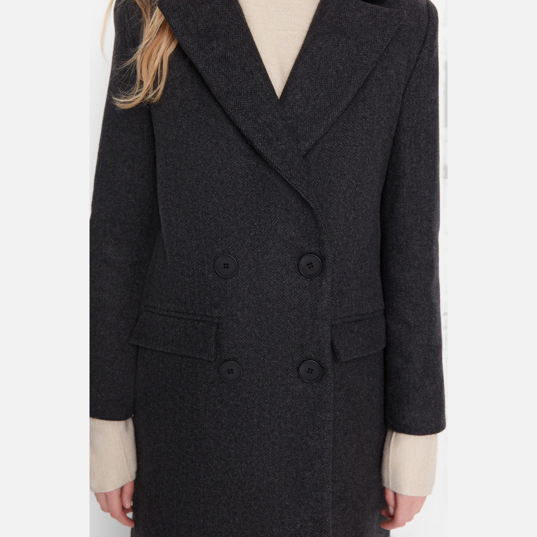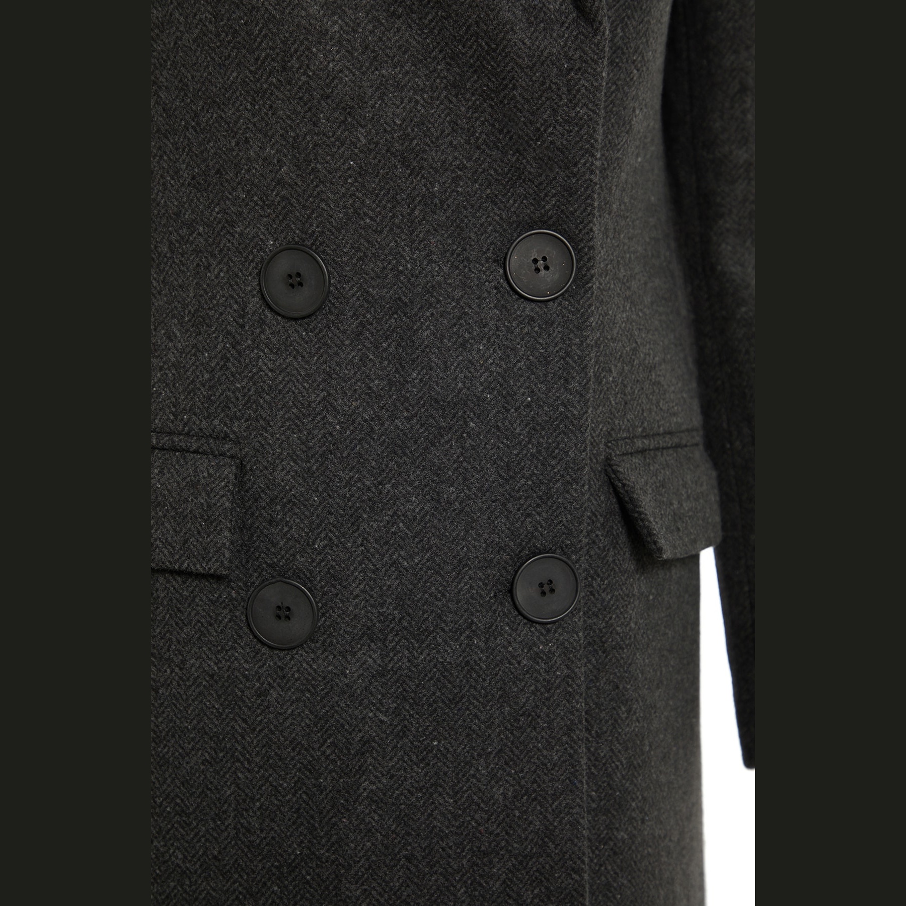 كاب نسائي – أسود بنقشة عظم السمكة وطول كامل (تصميم شتوي كلاسيكي)