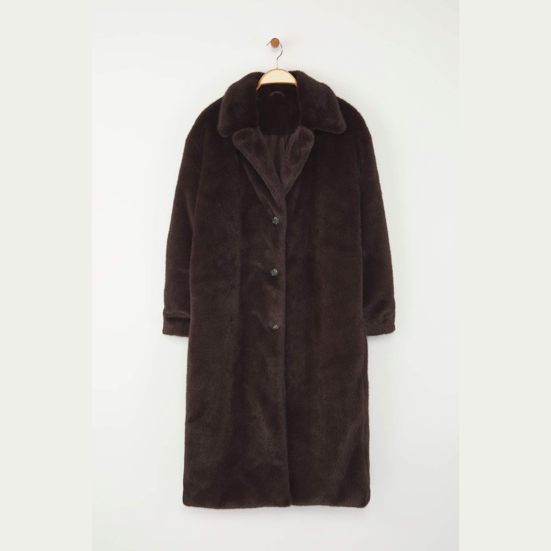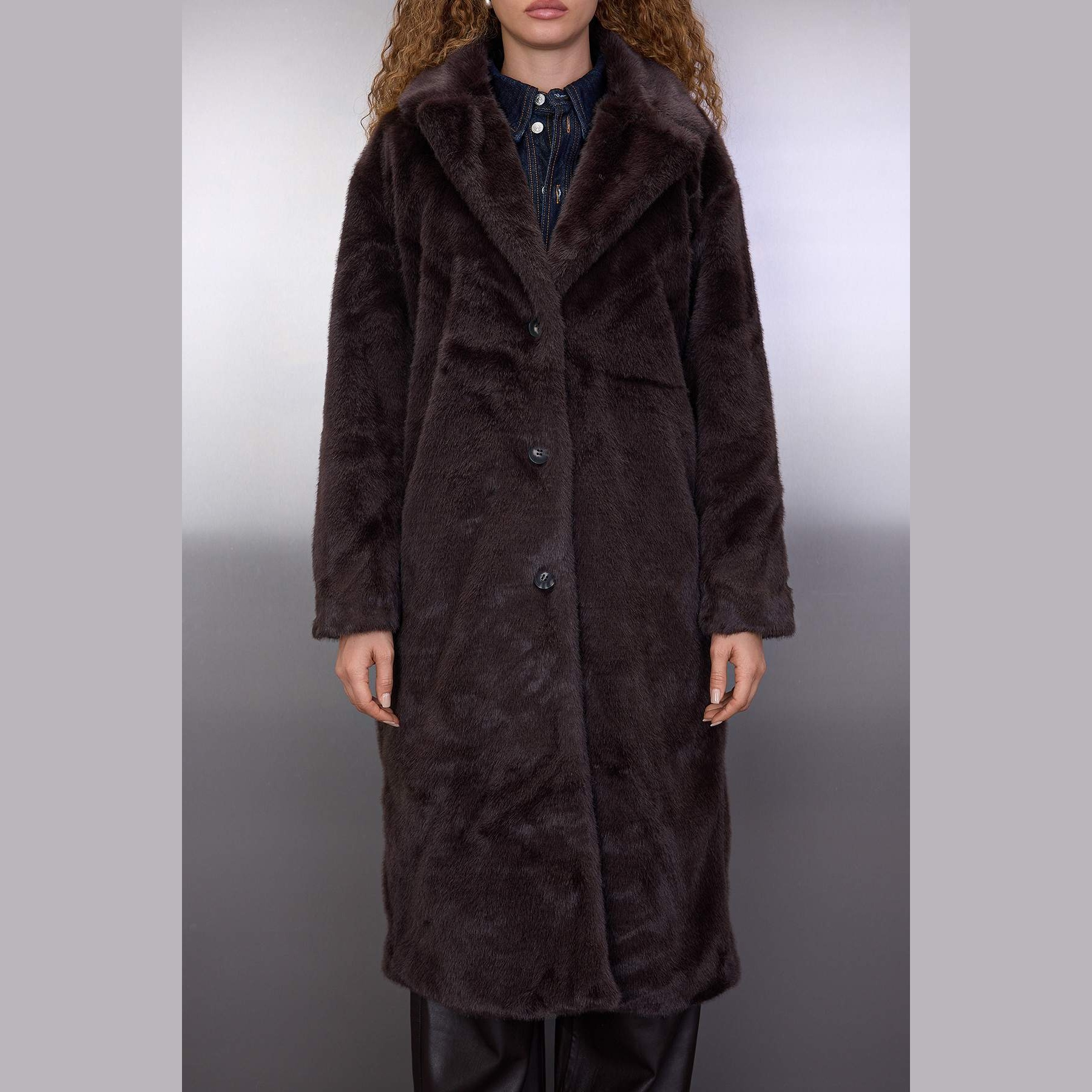 - الخصائص: قصة واسعة، ملمس فرو، تصميم شتوي، إغلاق مفرد