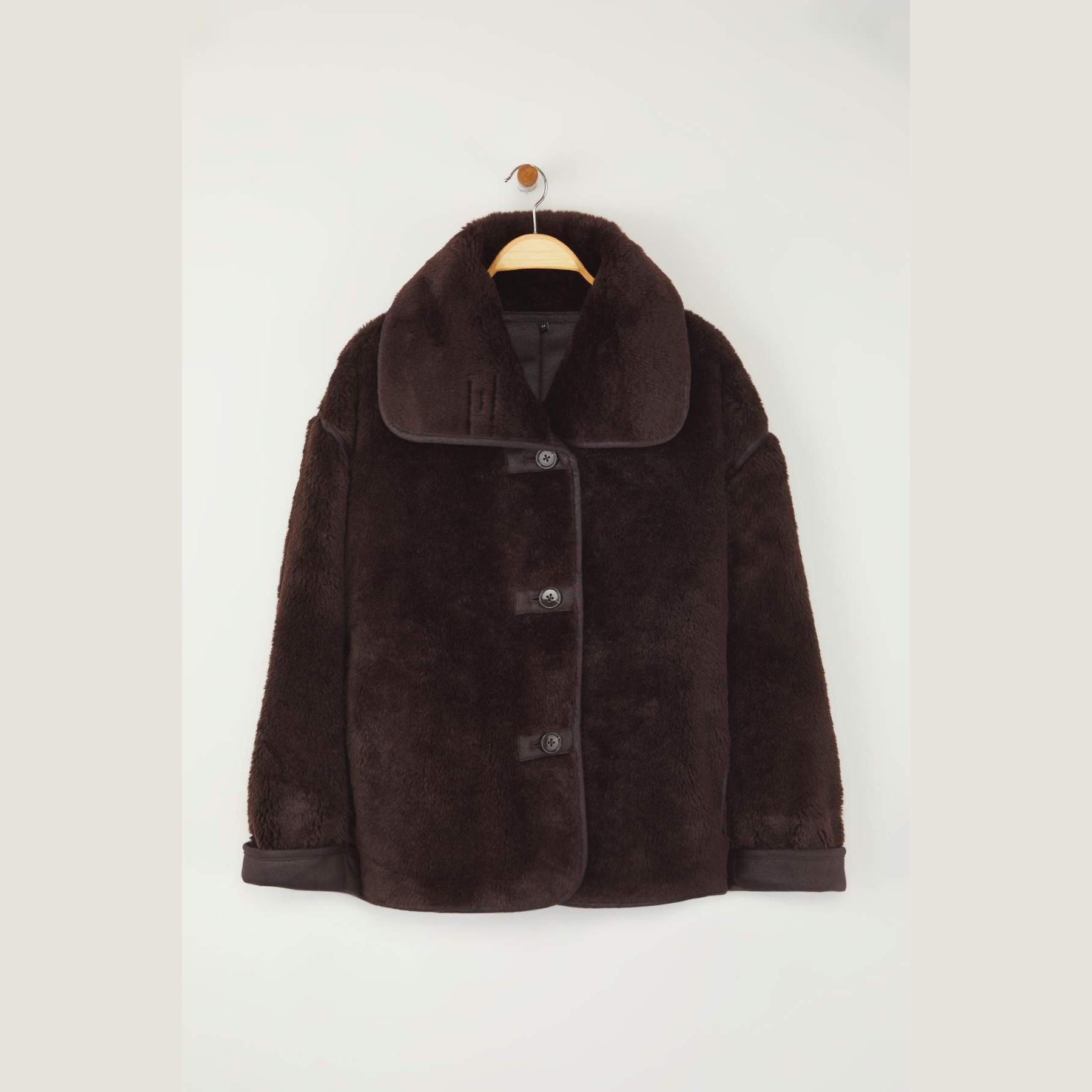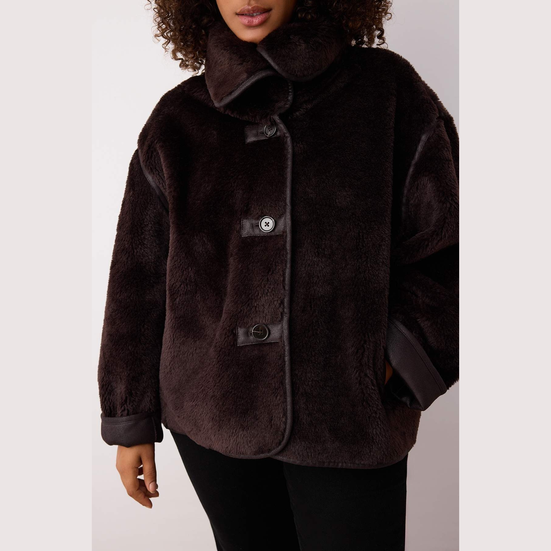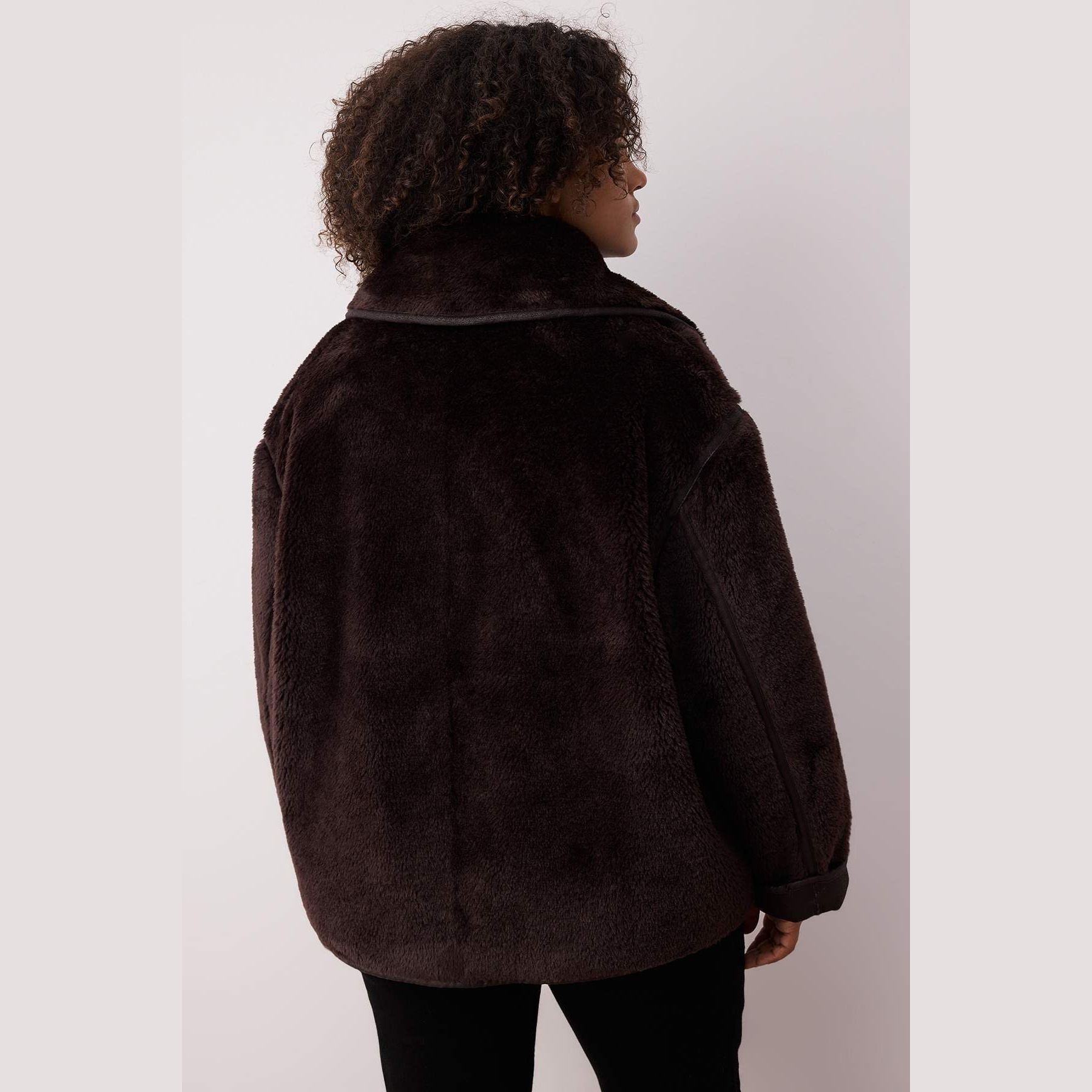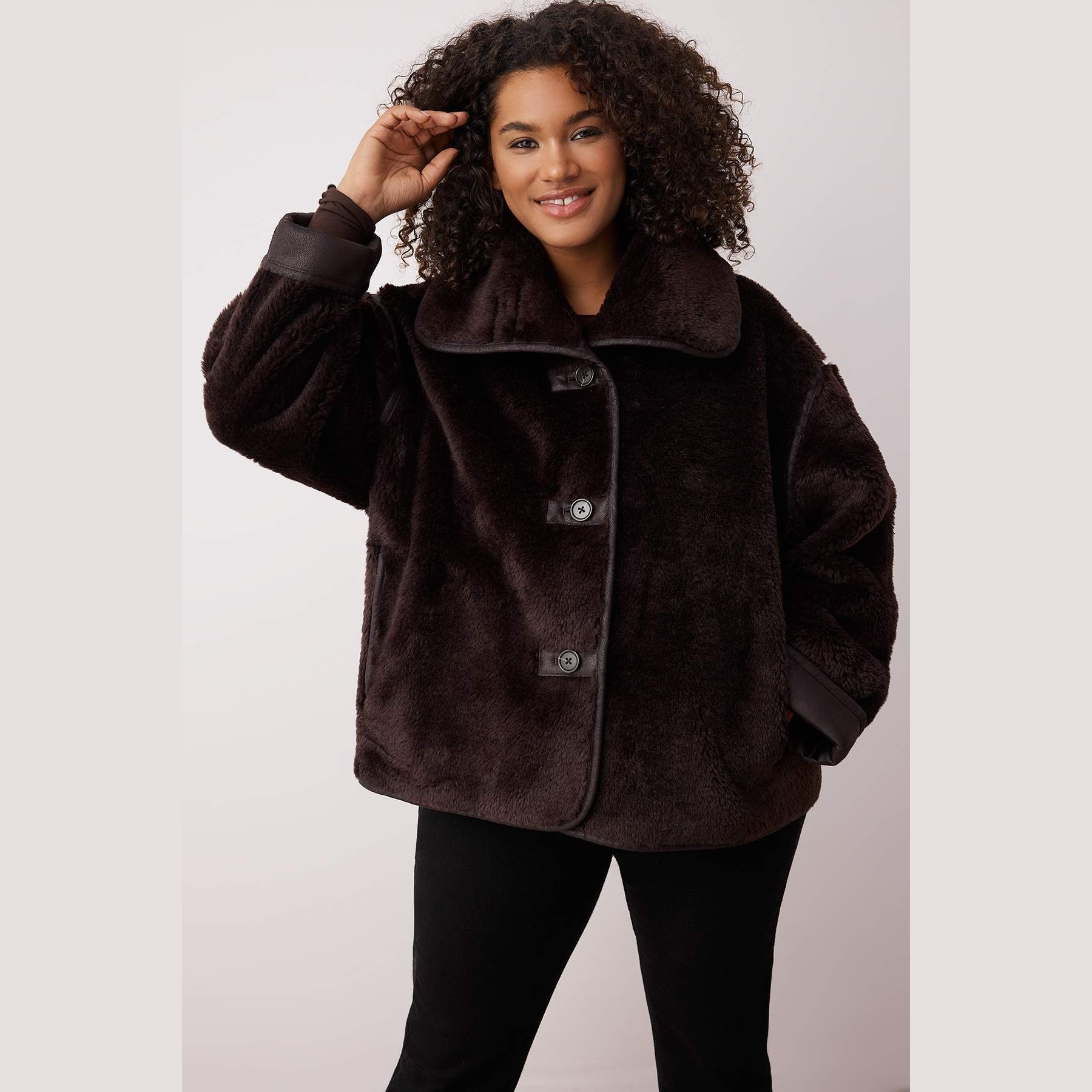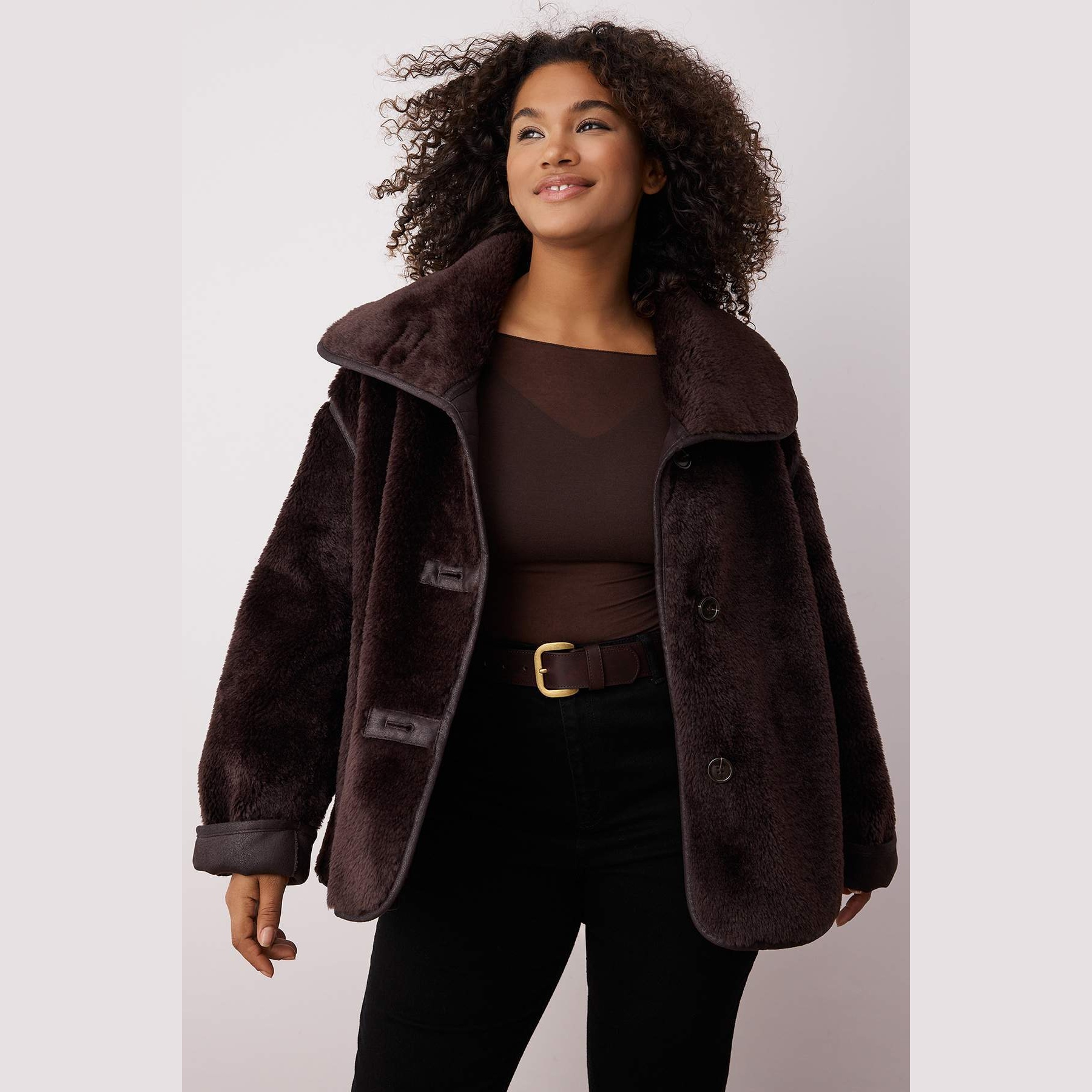 جاكيت شتوي أنيق بلون بني دافئ من مجموعة Trendyolmilla – مصمم خصيصًا للمقاسات الكبيرة بلمسة ناعمة ومريحة، يتميز بقصة Oversize واسعة وطول عملي، مع ياقة مستقيمة (Hakim Yaka)، وأكمام طويلة، وإغلاق أمامي بسحاب، مصنوع من خامة بيلوش صناعي (Suni Kürk Dokuma) بتركيبة 100% بوليستر، ومبطن بالكامل، ما يجعله مثاليًا لأيام الشتاء الباردة.