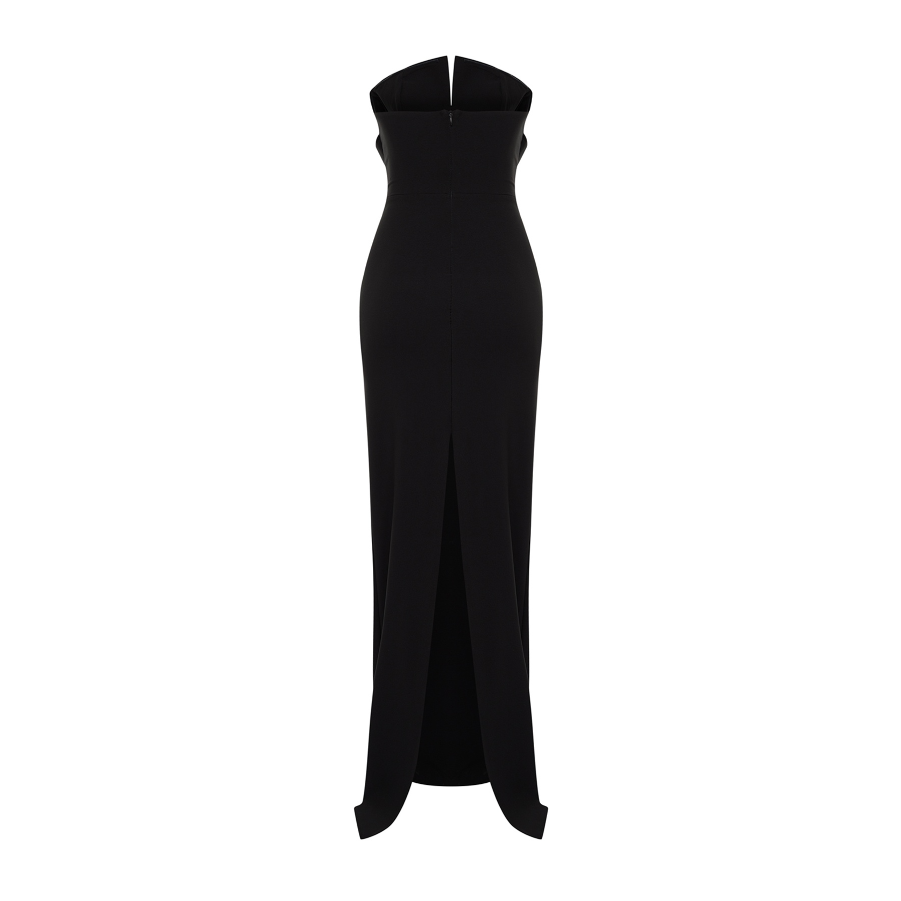 فستان سهرة بلون أسود أنيق، مصمم بقصة ضيقة تبرز جمال القوام، مع تفصيلة فيونكة ناعمة تضيف لمسة أنثوية راقية. يأتي بخامة دوكوم مرنة بدون بطانة، وياقة مستقيمة بدون أكمام، وطول ماكسي يمنحك حضورًا لافتًا في المناسبات الخاصة مثل حفلات التخرج أو السهرات الرسمية.