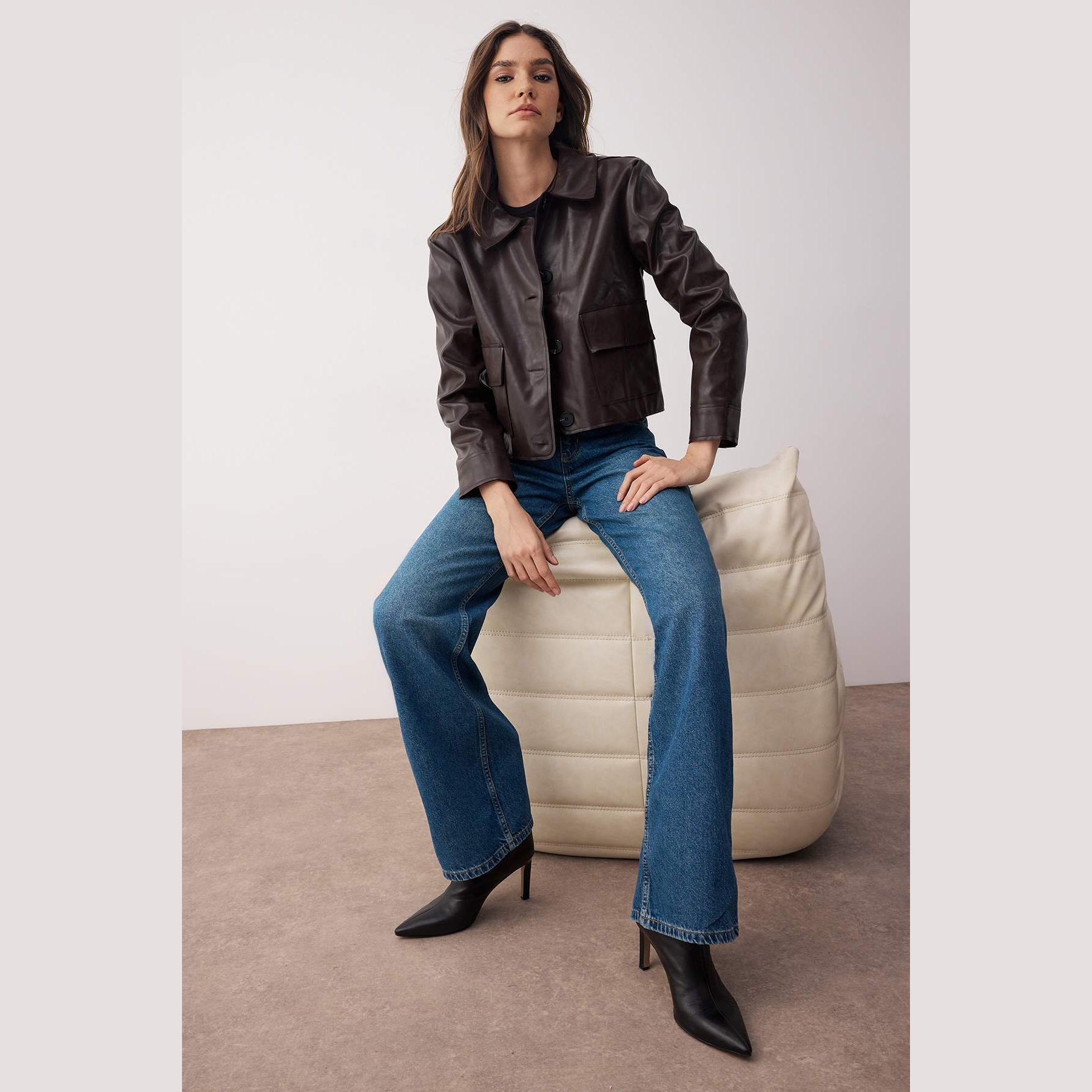جاكيت أنيق بلون بني داكن، مصنوع من خامة جلد صناعي محاكة بتركيبة بولي يوريثان، يتميز بياقة قميص كلاسيكية وأكمام طويلة، مع قصة منتظمة (Regular Fit) تمنحك مظهرًا عمليًا ومريحًا. مثالي للإطلالات اليومية في فصل الشتاء، ويضفي لمسة فاخرة على تنسيقاتك الموسمية.