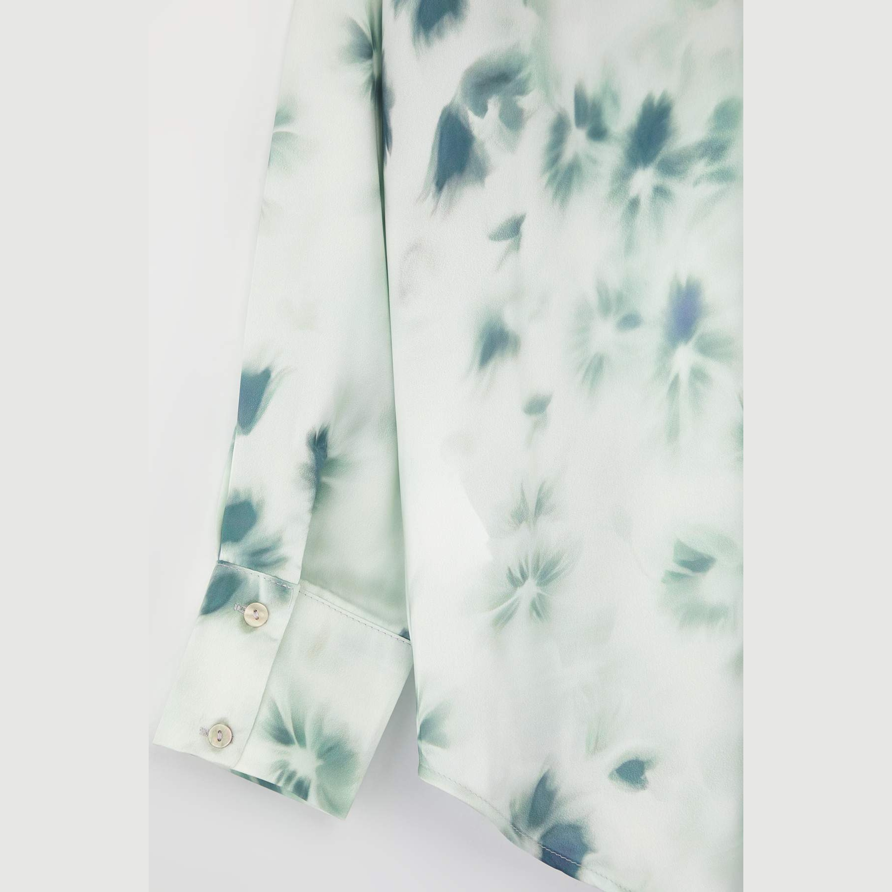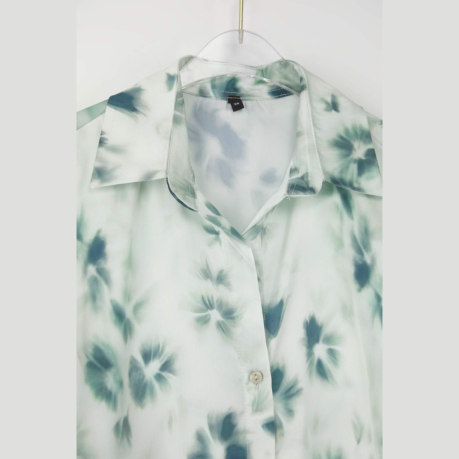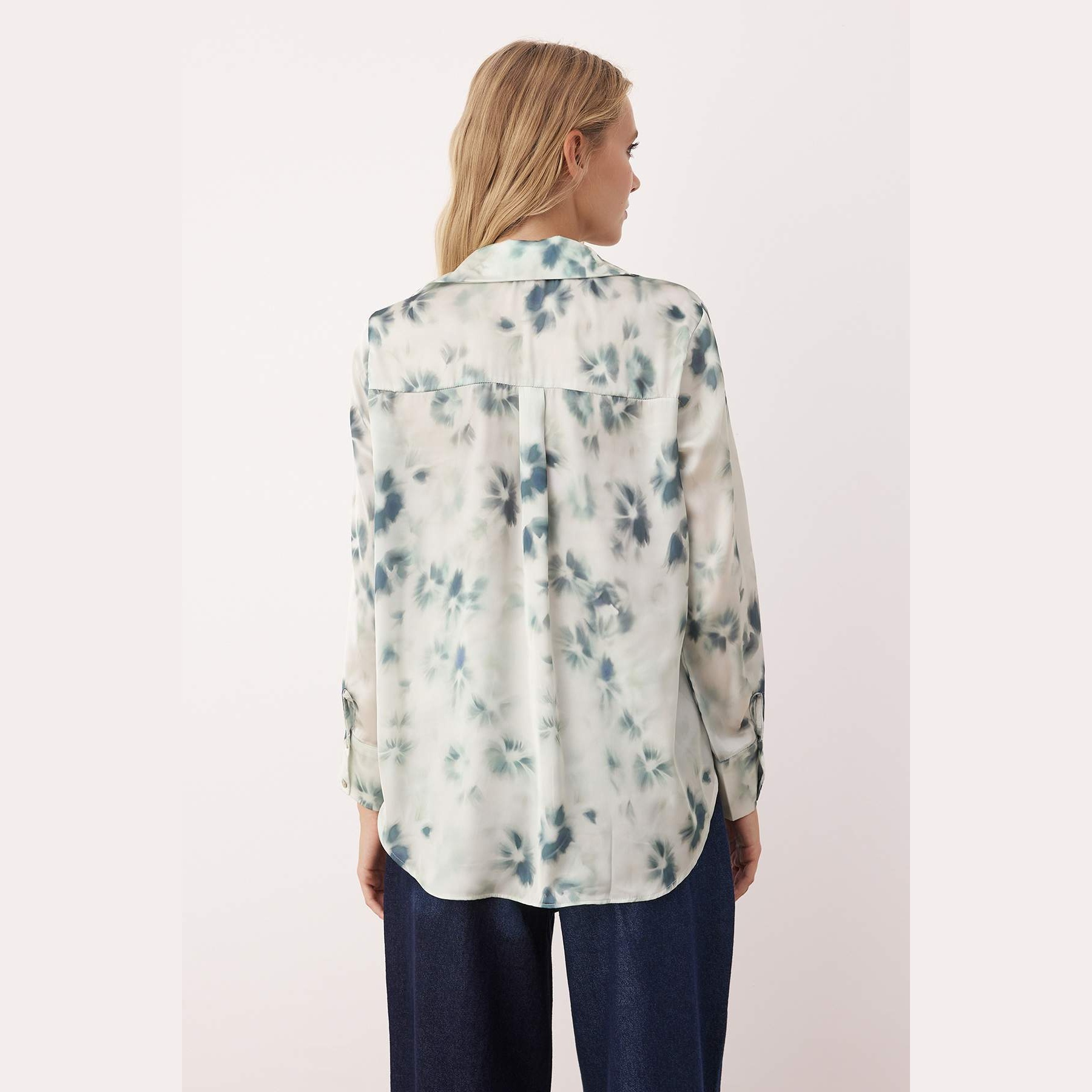 قميص نسائي بلون أخضر مزين بنقشة زهرية، مصنوع من خامة دوكّوما ناعمة بتركيبة بوليستر، يمنح إحساسًا مريحًا ولمسة أنثوية مبهجة. يتميز بياقة قميص كلاسيكية، وأكمام طويلة، وقصة مريحة مناسبة للإطلالات اليومية أو العملية.