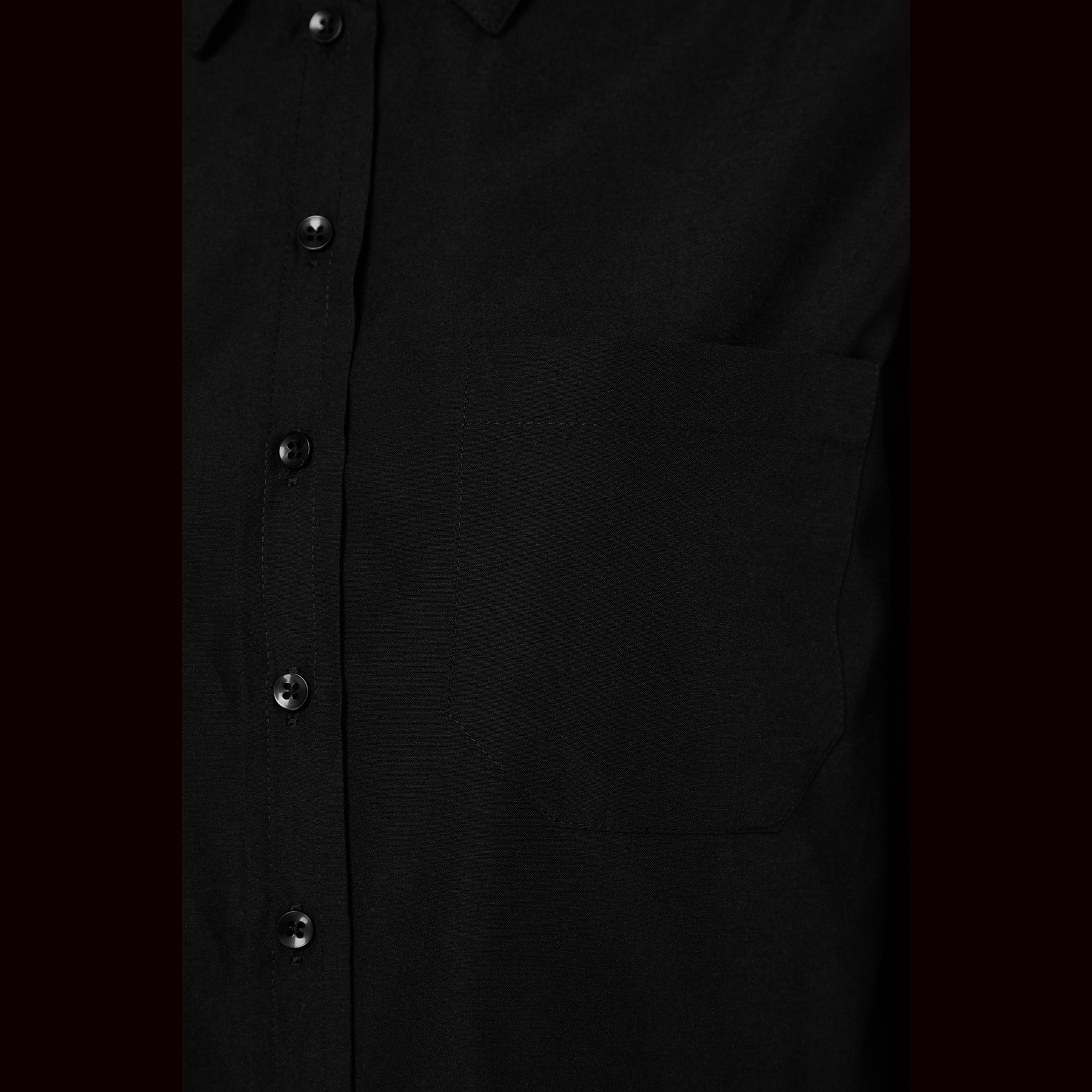 قميص نسائي – أسود بقصة Boyfriend وجيب أمامي (إطلالة كاجوال واسعة بخامة دوكّوما مريحة)