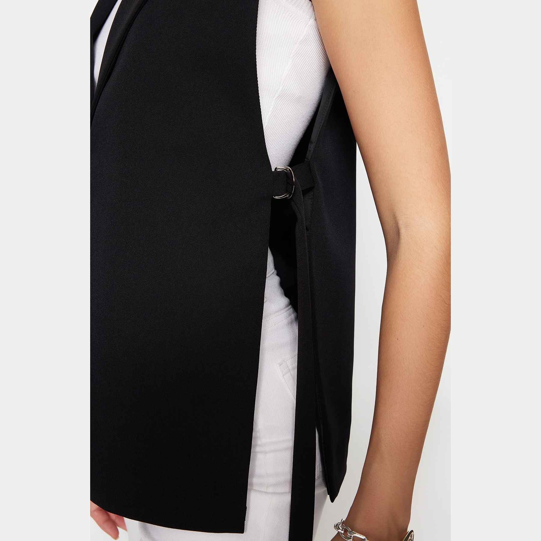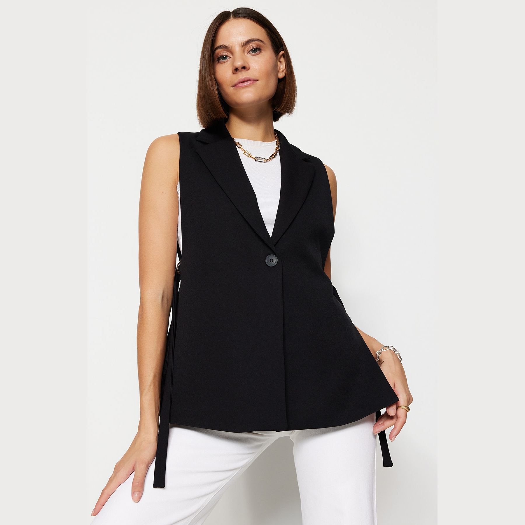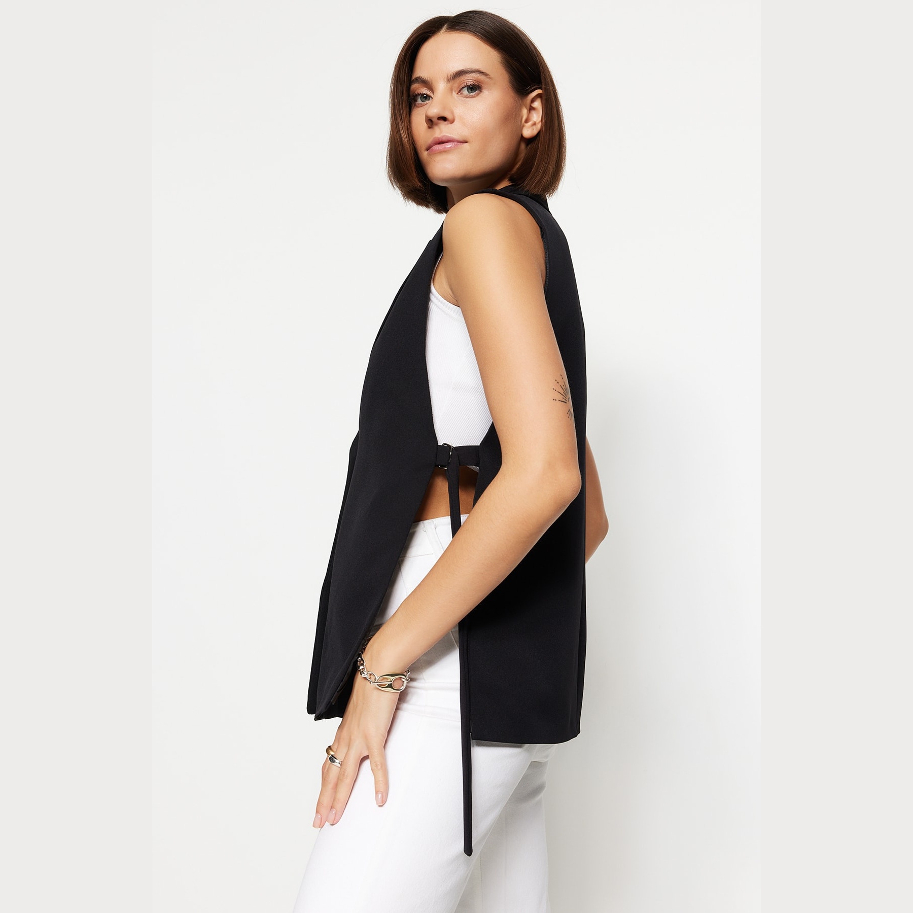 فيست نسائي – أسود بقصة Oversize وإكسسوارات جانبية (تصميم عصري واسع بلمسة جريئة)