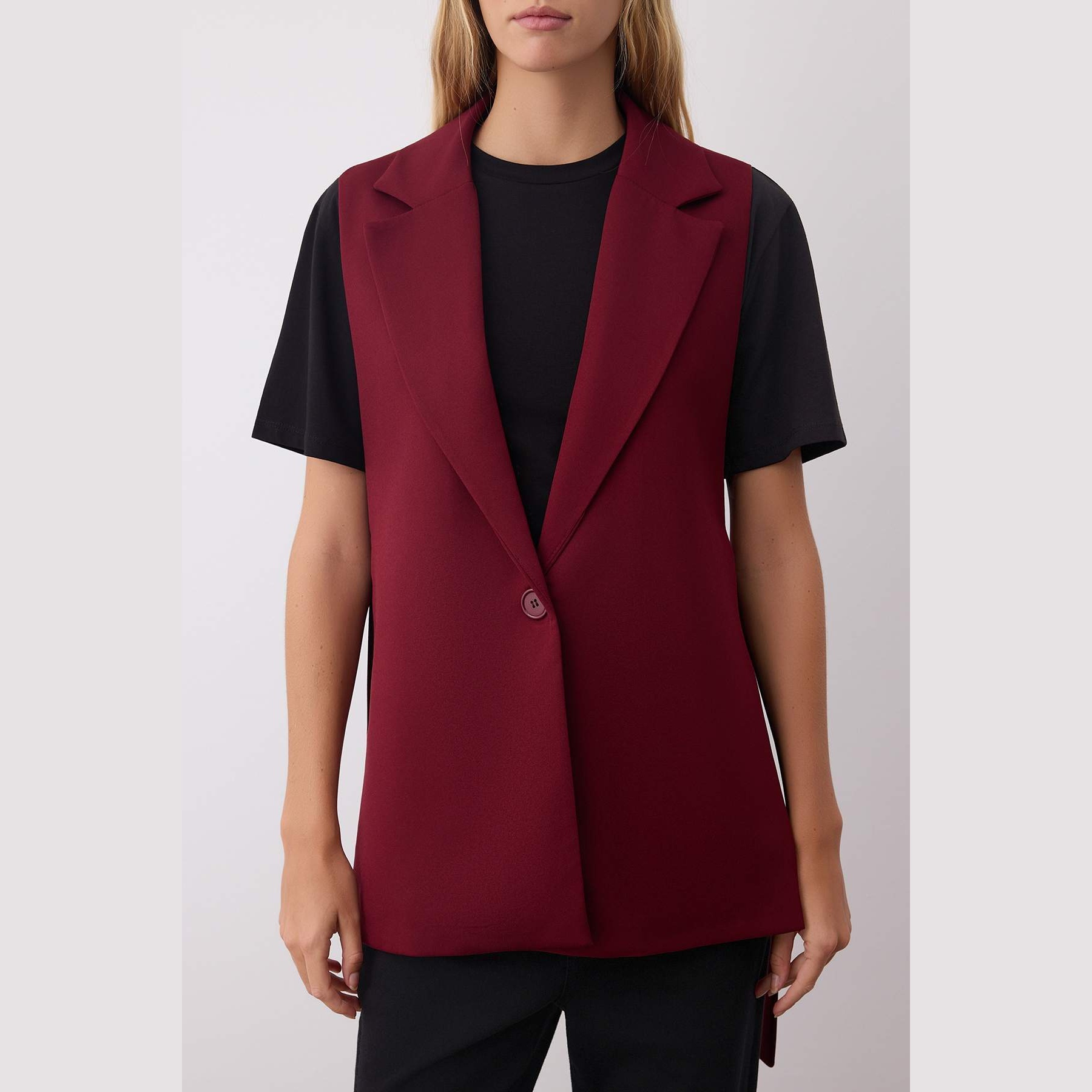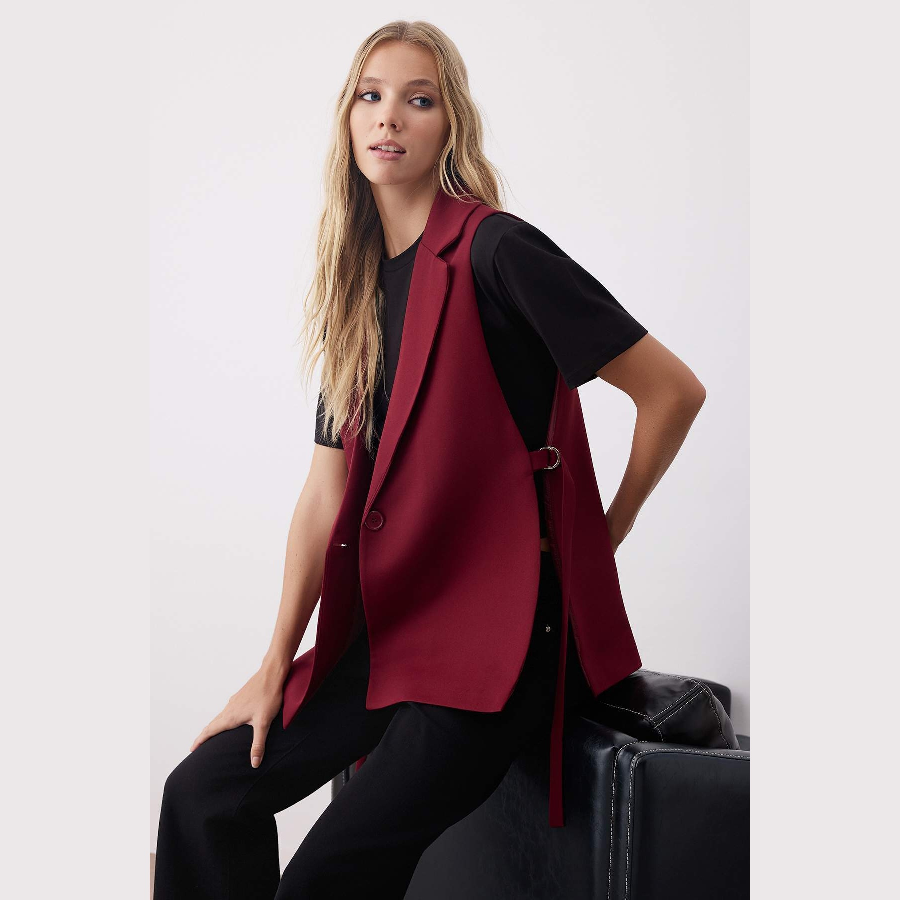 فيست نسائي بلون بوردو، مصنوع من خامة دوكّوما متينة ومبطّن بالكامل، يتميز بقصة Oversize واسعة تمنح إطلالة جريئة وعصرية، مع إكسسوارات جانبية وربطة خصر قابلة للتعديل تضيف لمسة تصميمية مميزة. يأتي بزر أمامي واحد وياقة جاكيت كلاسيكية، مما يجعله قطعة مثالية للتنسيق مع الإطلالات اليومية أو المسائية.