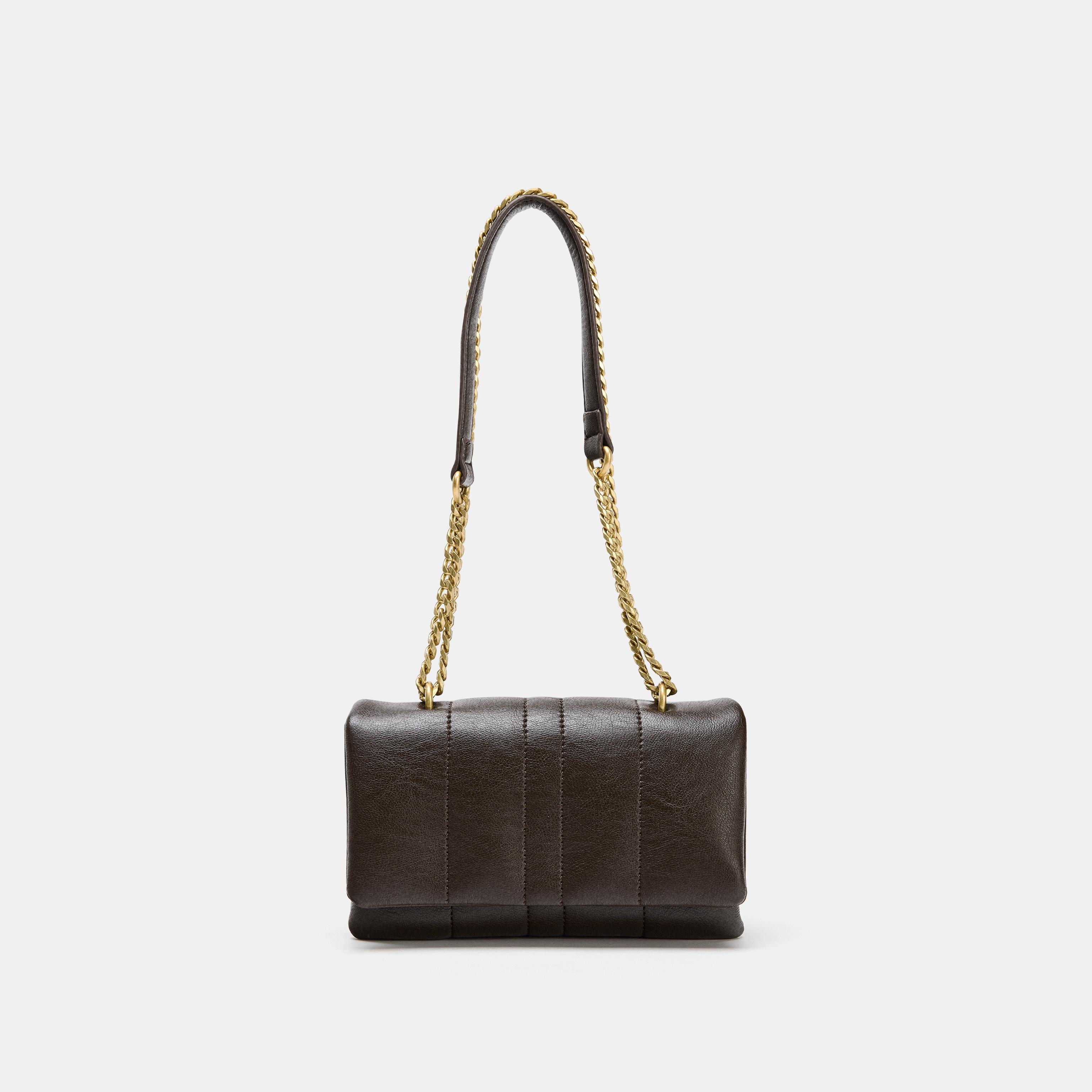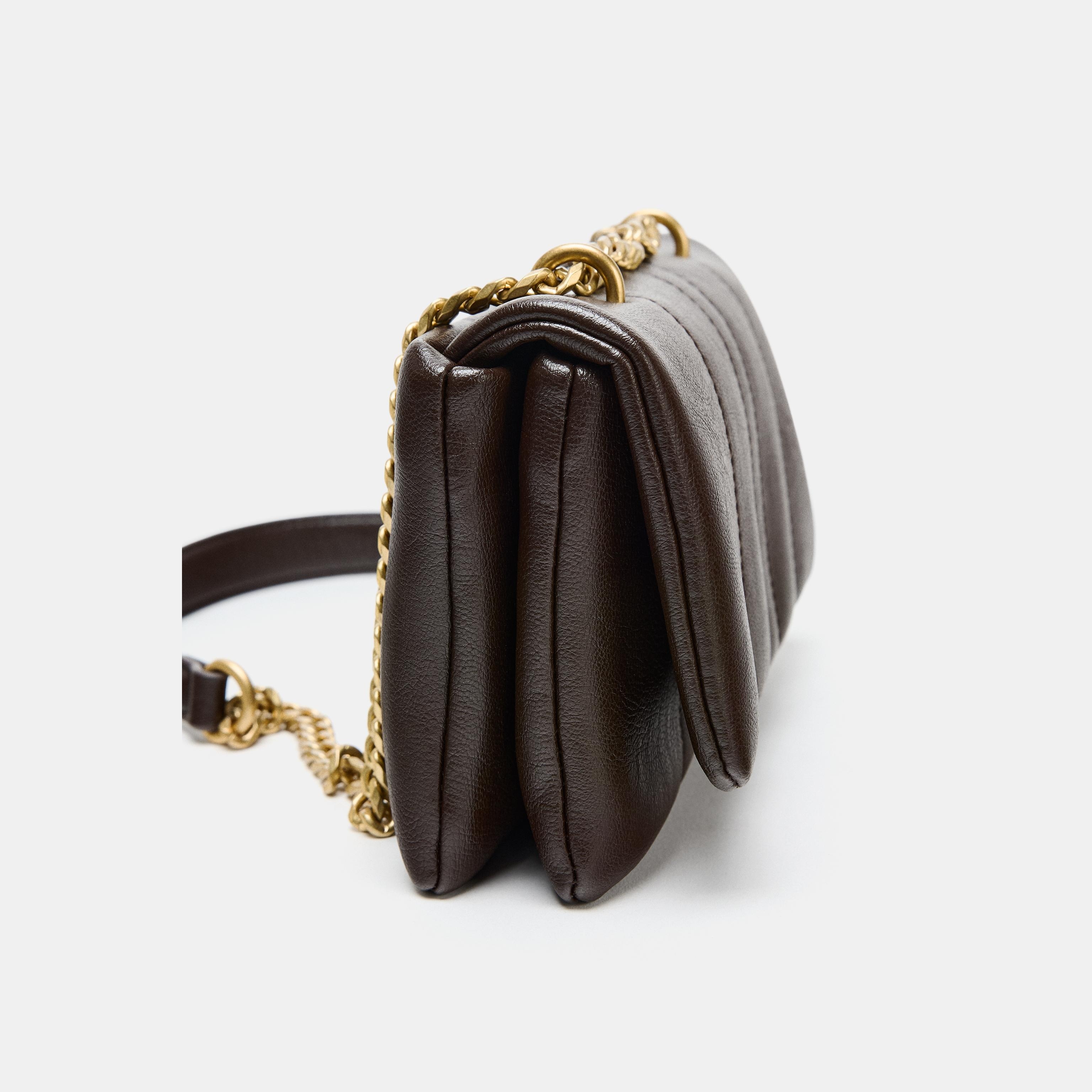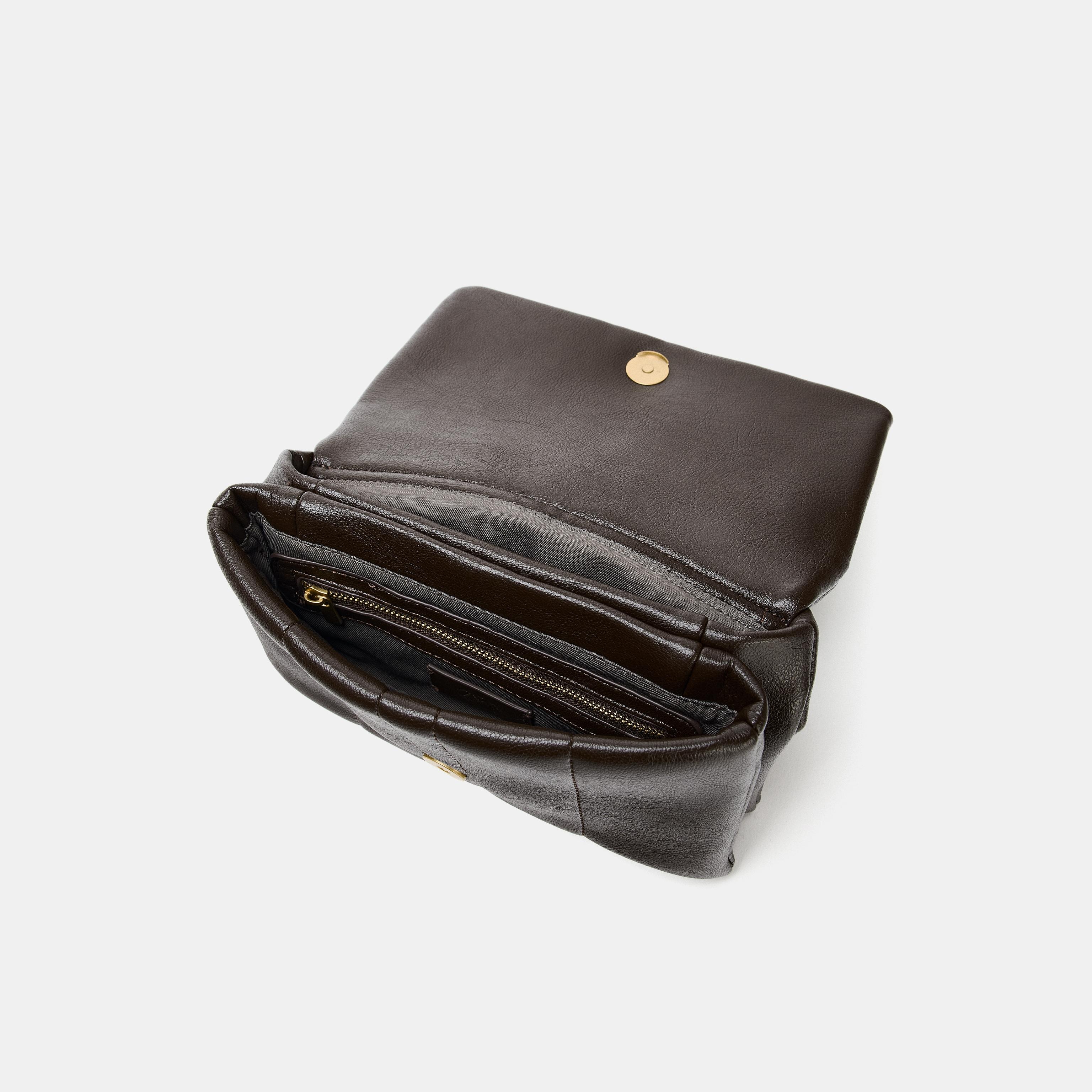حقيبة كروس صغيرة مبطنة – شوكولا، بتصميم عملي مع حزام كتف مزدوج (Quilted Mini Crossbody Bag)