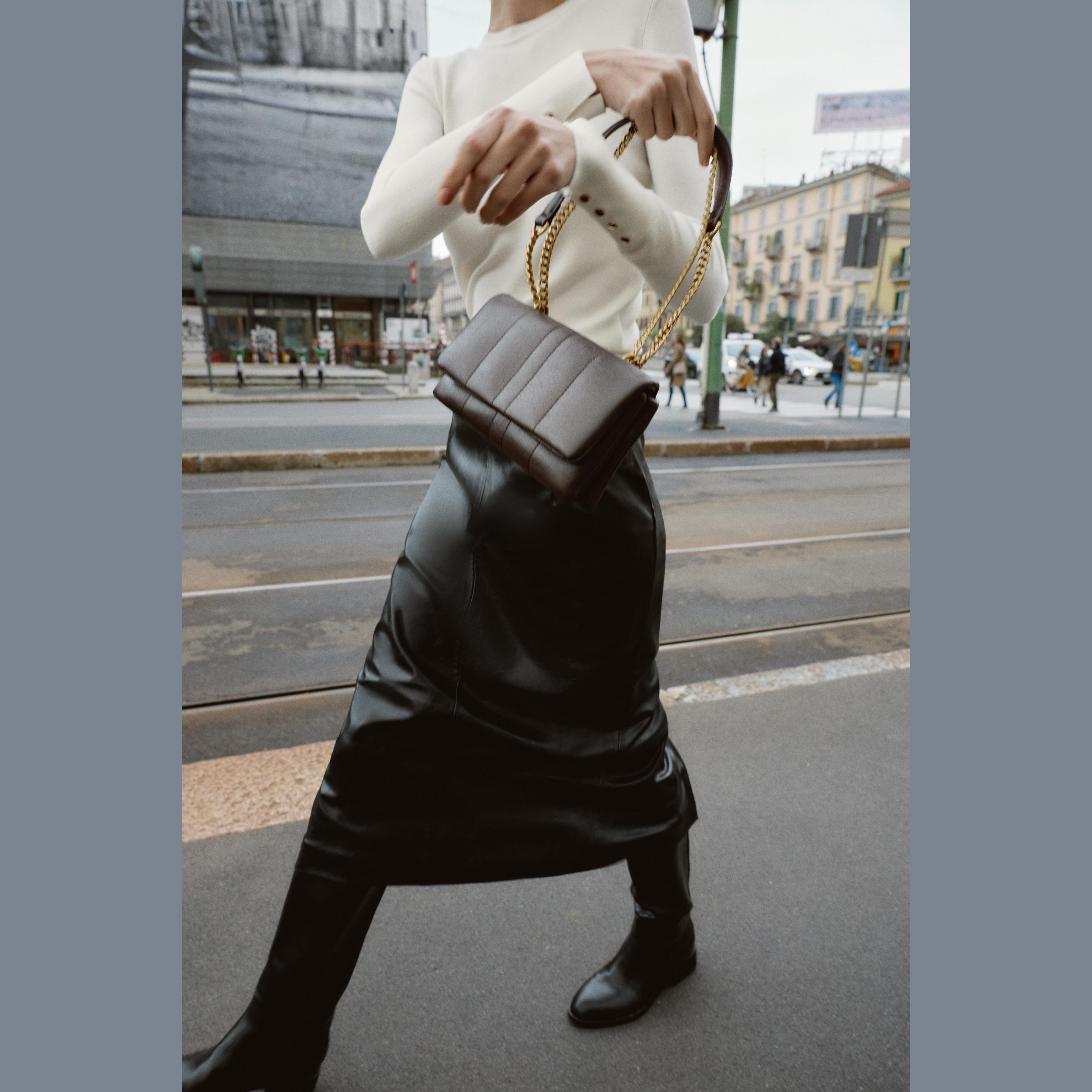 - التصميم: حقيبة كروس صغيرة مبطنة (Mini Crossbody Bag)