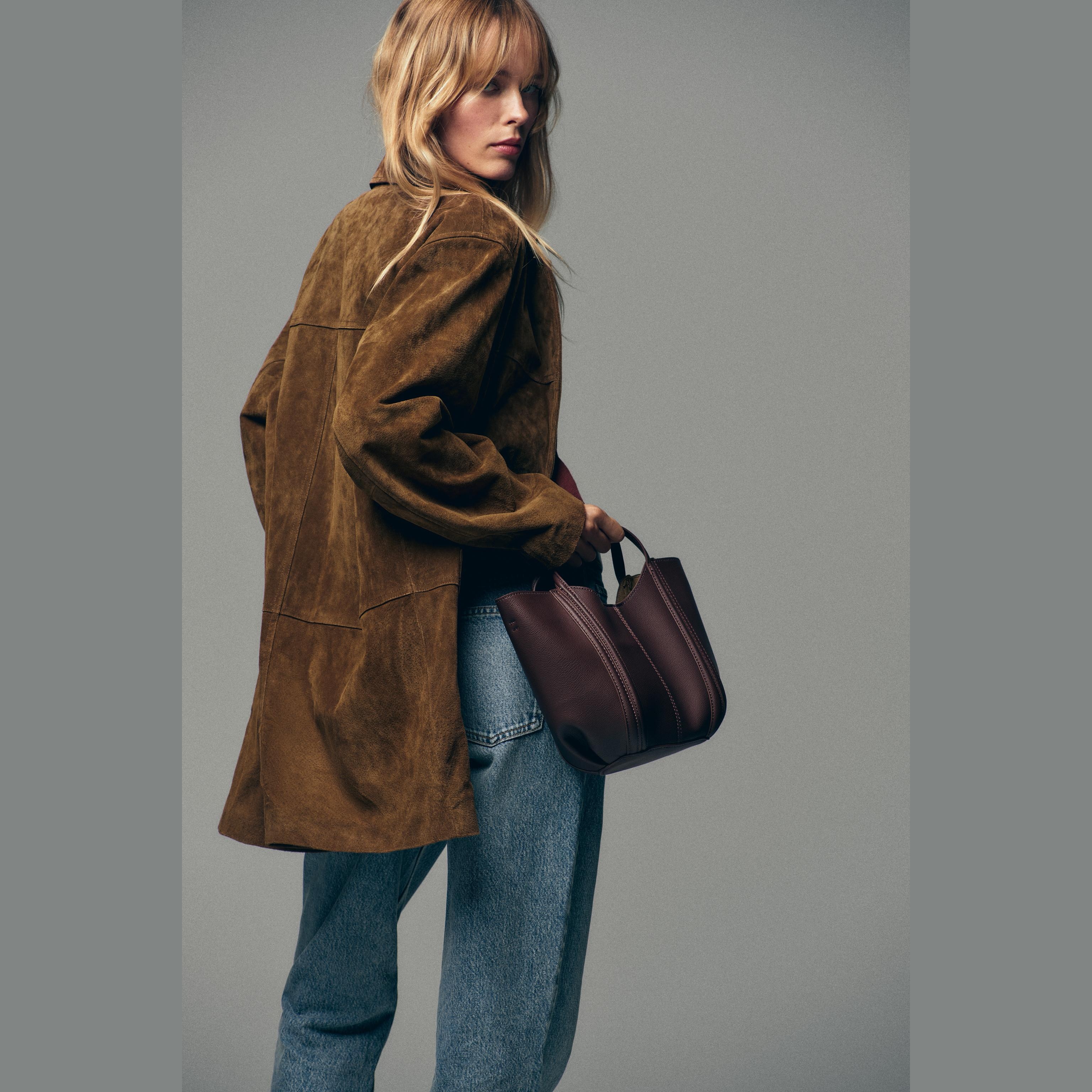 • التصميم: حقيبة صغيرة (Mini City Bag) مع خياطة بارزة