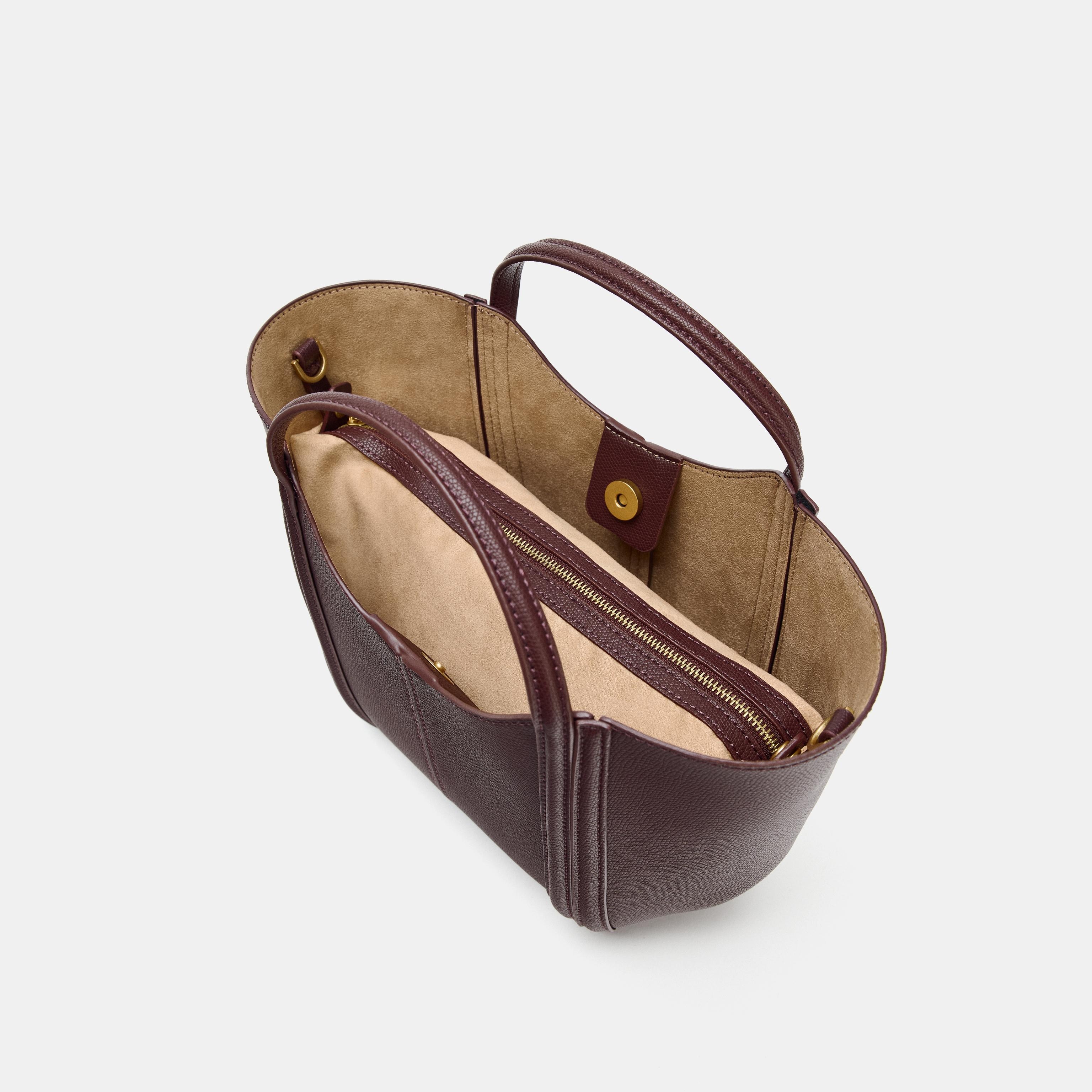 حقيبة صغيرة نسائية – خمري، بتفاصيل خياطة بارزة وحزام كتف قابل للفصل (Mini City Bag with Topstitching)
