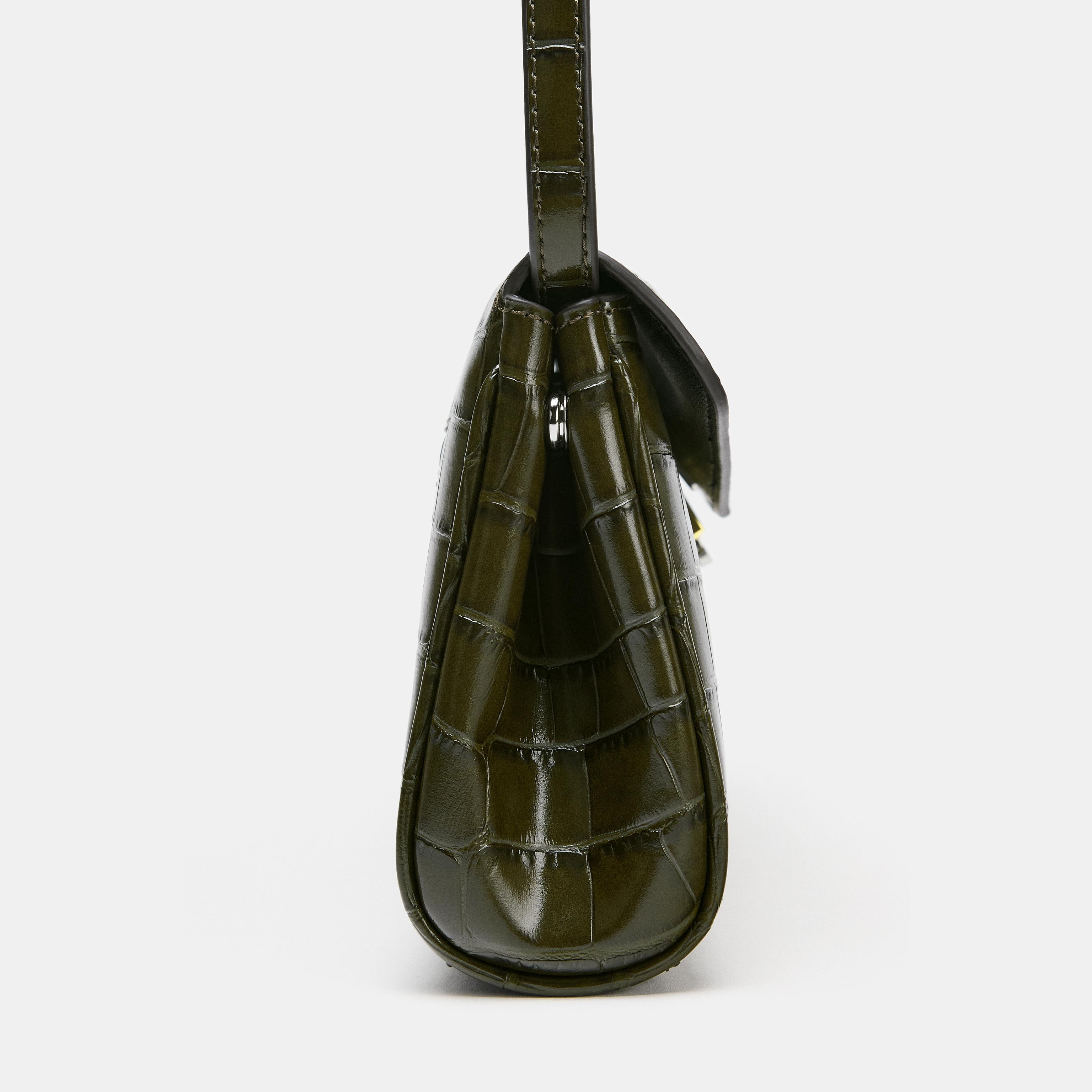 حقيبة يد نسائية – أخضر، بتصميم مزخرف مع حزام كتف قابل للفصل (Embossed Handbag)