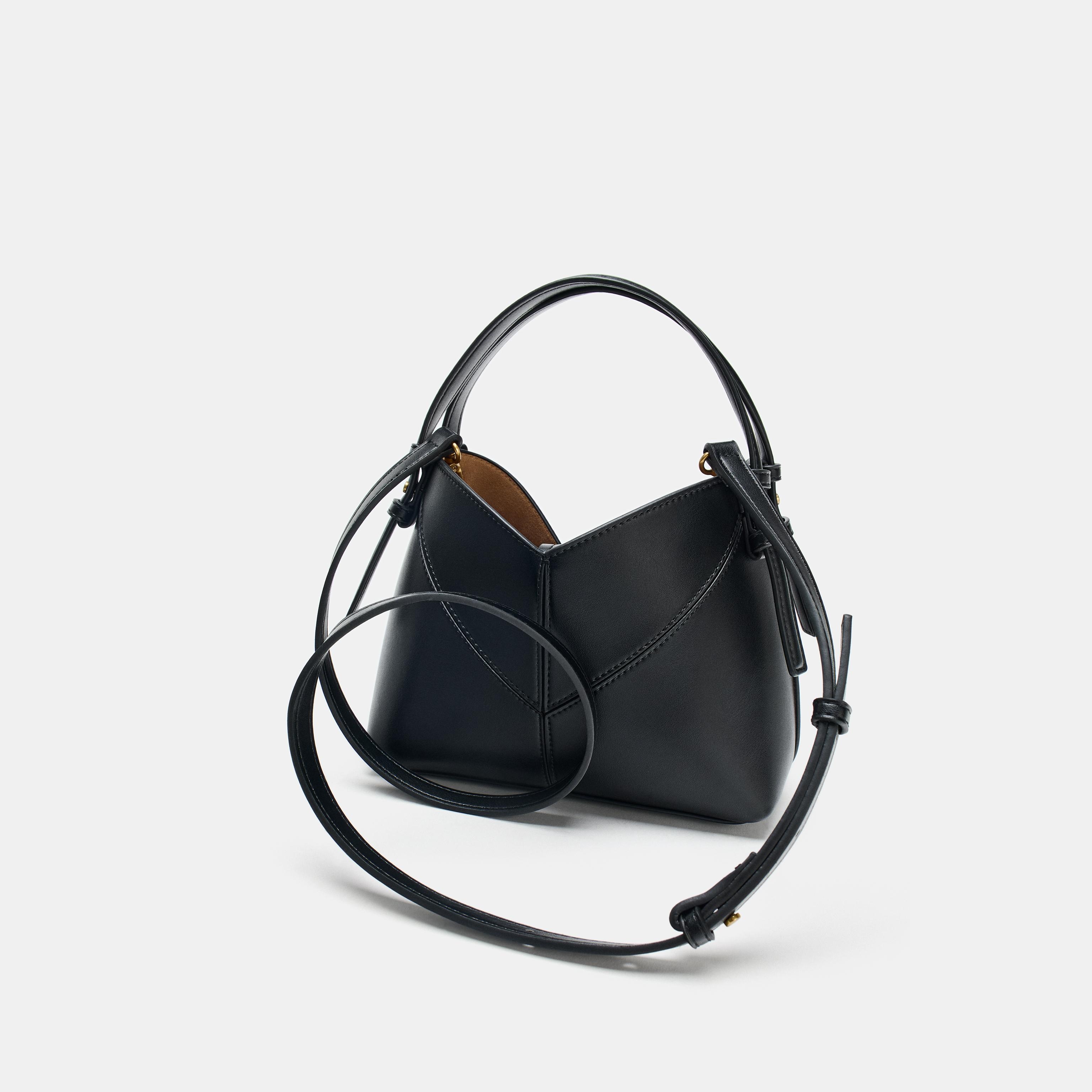 حقيبة صغيرة نسائية – أسود، بتفاصيل خياطة بارزة وحزام كتف قابل للفصل (Mini Tote Bag)