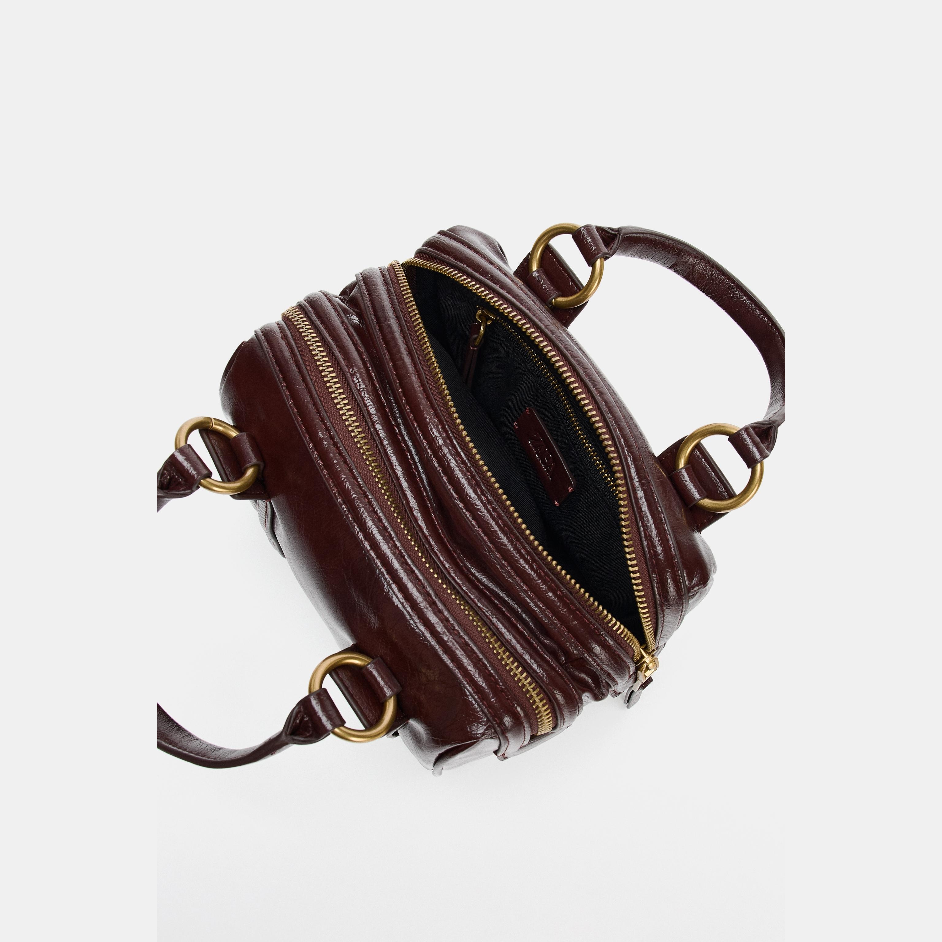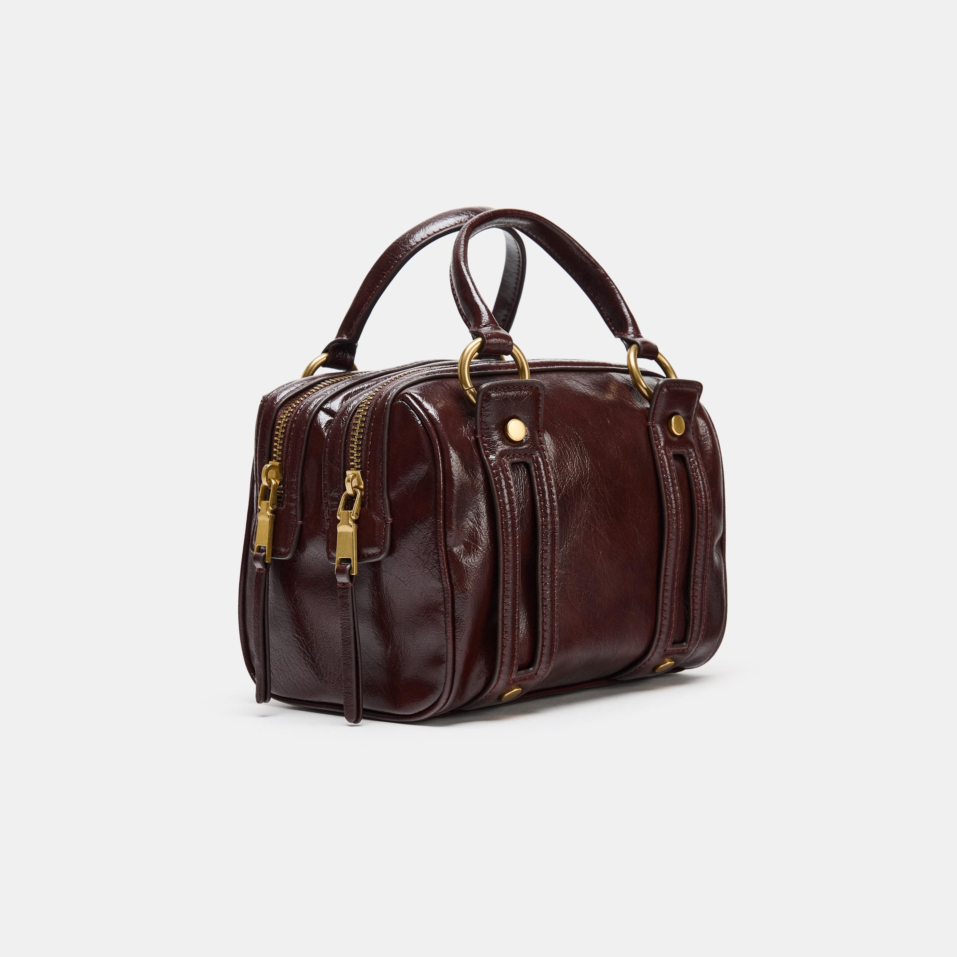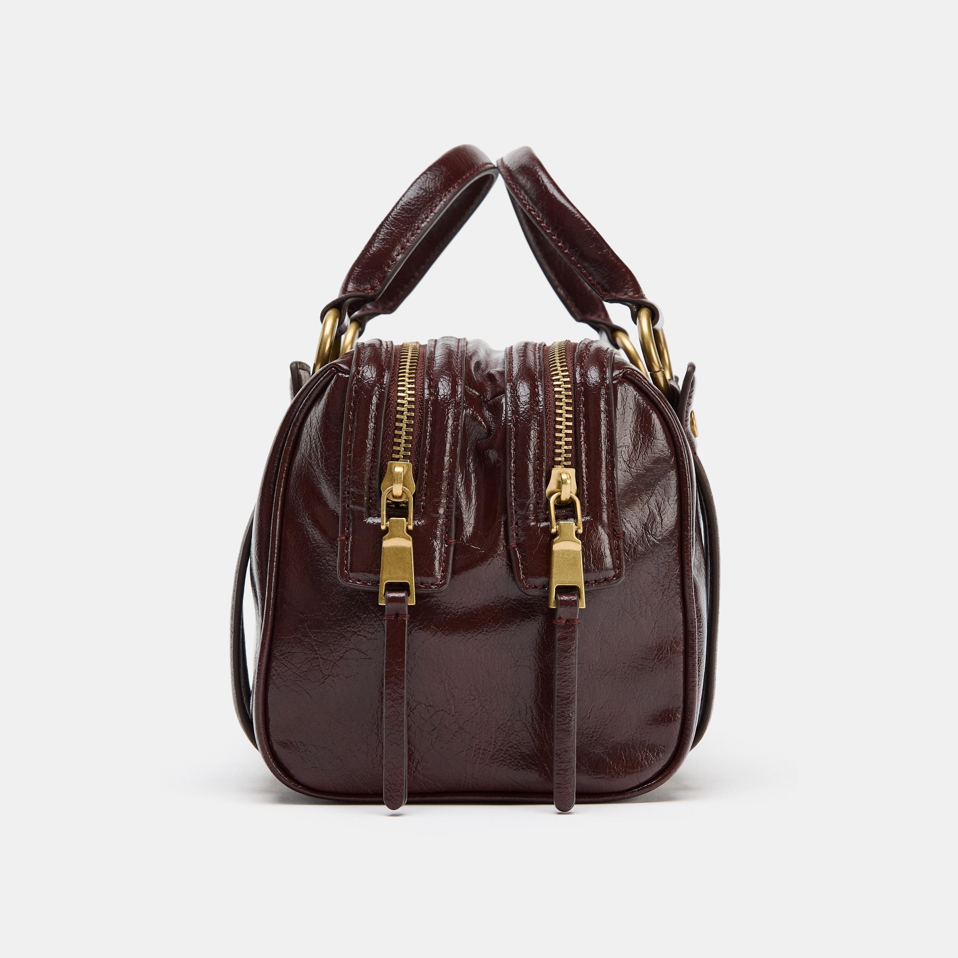 حقيبة يد أنيقة بلون خمري مميز، مصنوعة من خامة صناعية عالية الجودة مع تفاصيل معدنية على الحواف. مزودة بمقابض علوية مزدوجة وحزام كتف طويل قابل للفصل، بالإضافة إلى جيب داخلي بسحاب. تتميز بإغلاق علوي مزدوج بسحّابات معدنية، لتمنحك مزيجًا مثاليًا من الأناقة والوظيفية في الاستخدام اليومي.