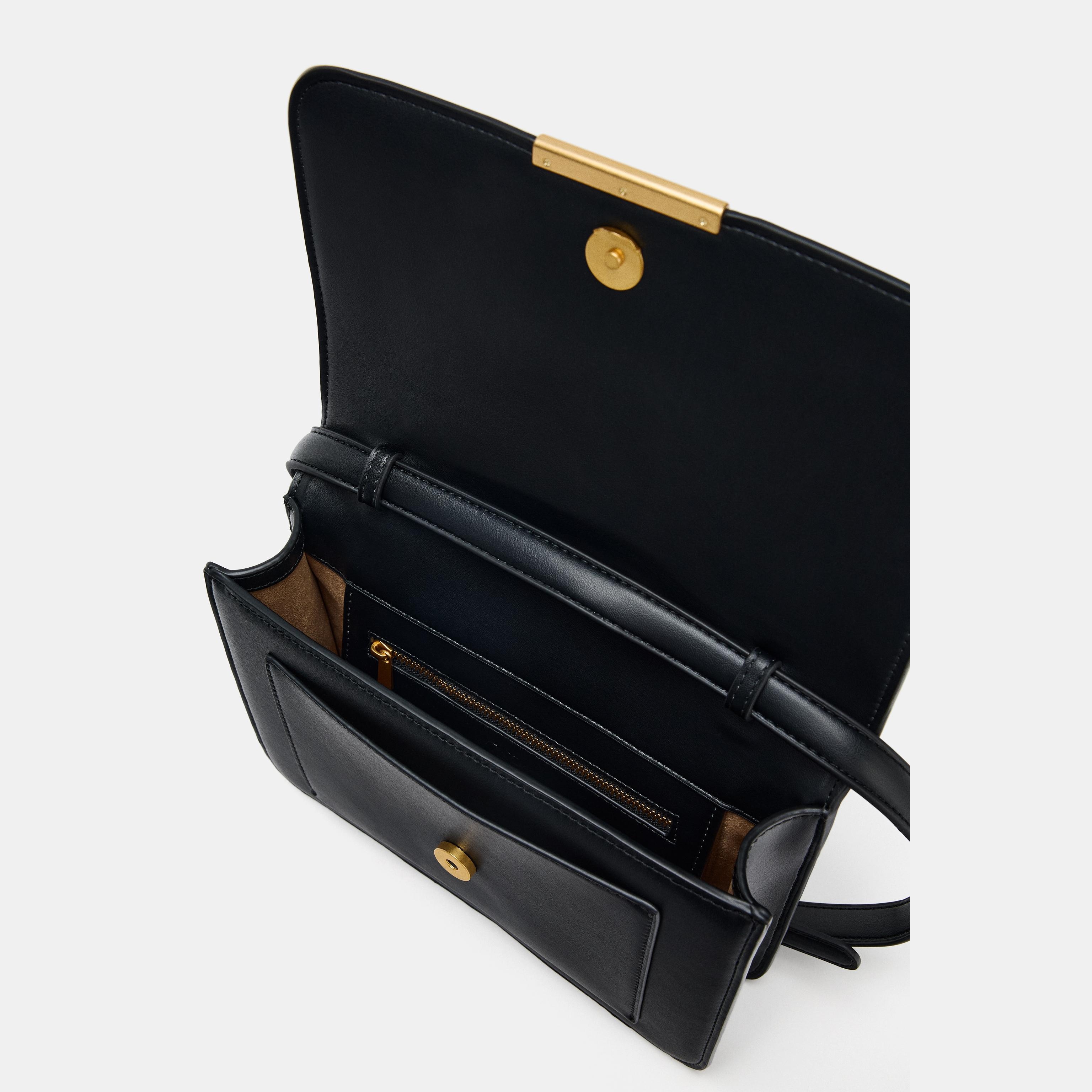 - التصميم: حقيبة كروس صغيرة (Crossbody Bag) مع تفاصيل معدنية