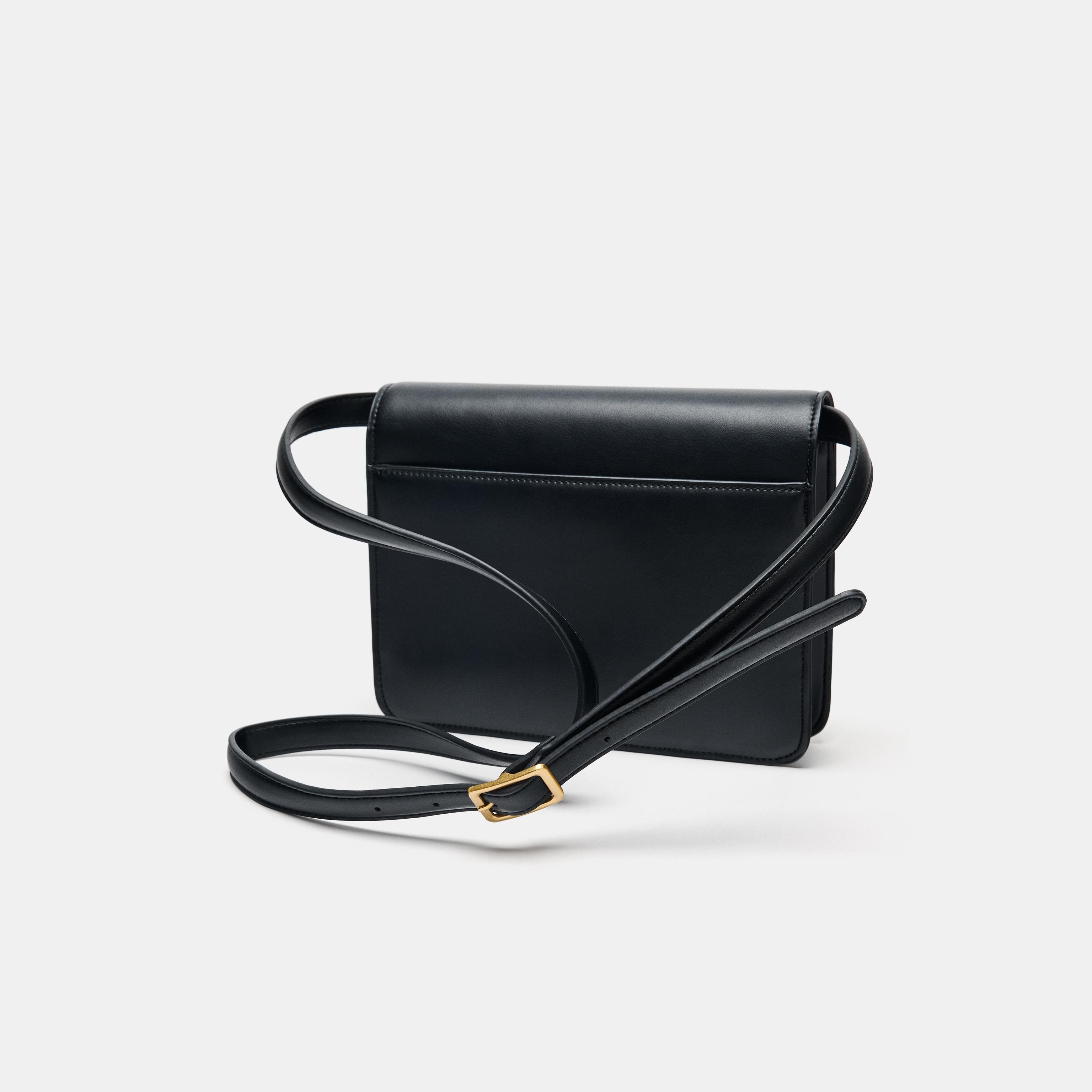 حقيبة كروس نسائية – أسود، بتفاصيل معدنية وحزام كتف قابل للتعديل (Crossbody Bag with Metal Detail)