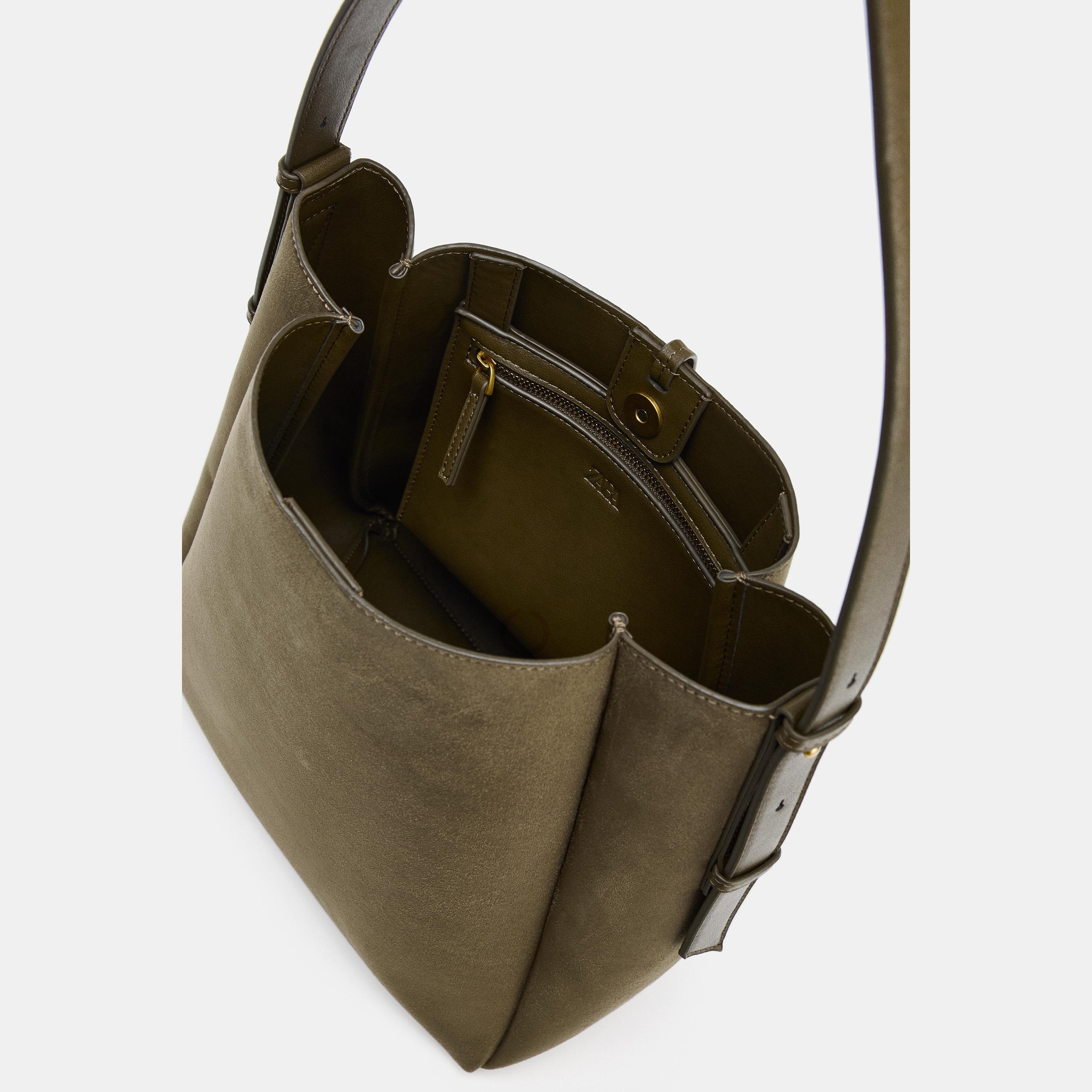 حقيبة باكيت كبيرة نسائية – أخضر، مع حلقة معدنية أمامية وحزام كتف قابل للتعديل (Maxi Bucket Bag with Metal Ring)