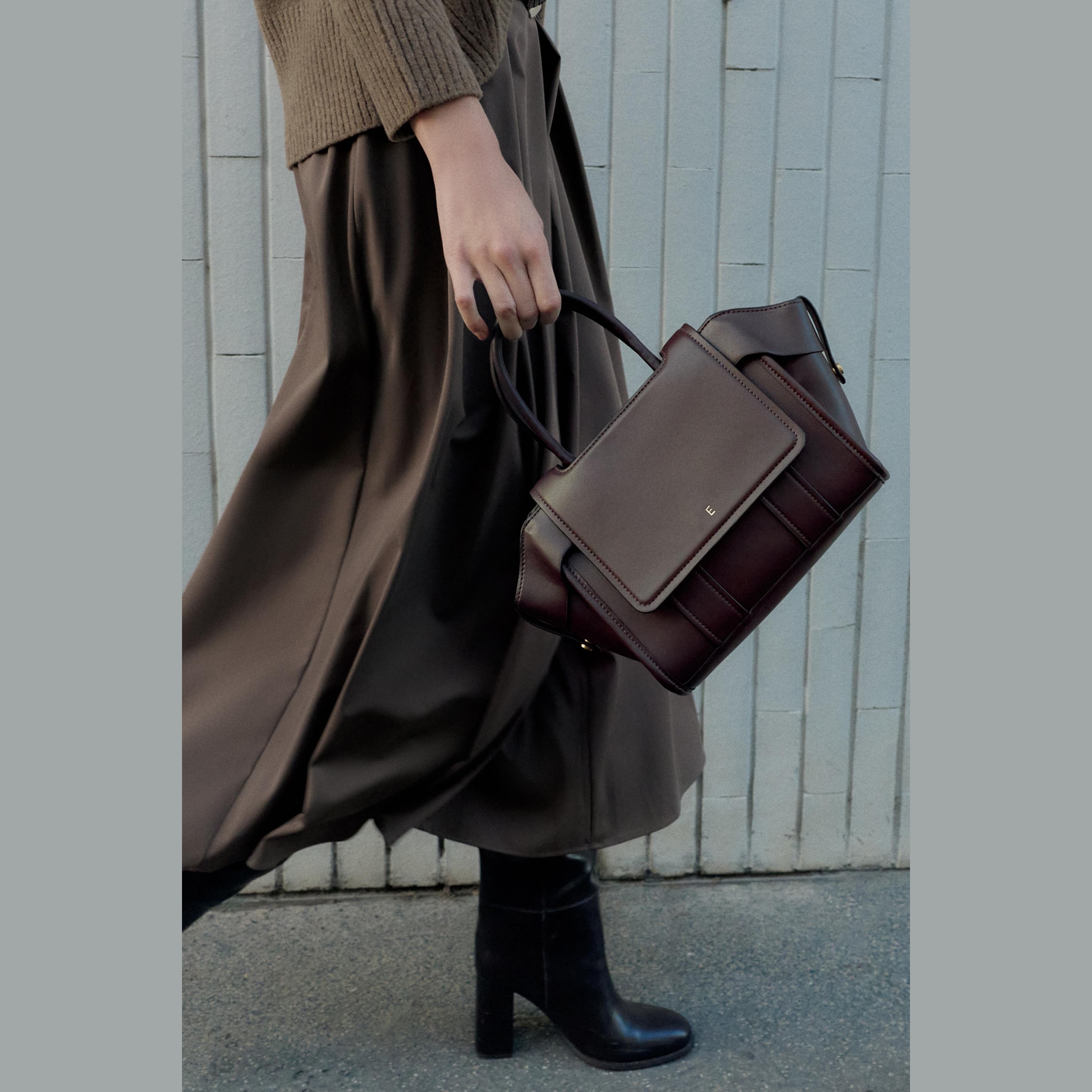 حقيبة سيتي نسائية – خمري، بغطاء أمامي وحزام كتف قابل للفصل (City Bag with Flap)