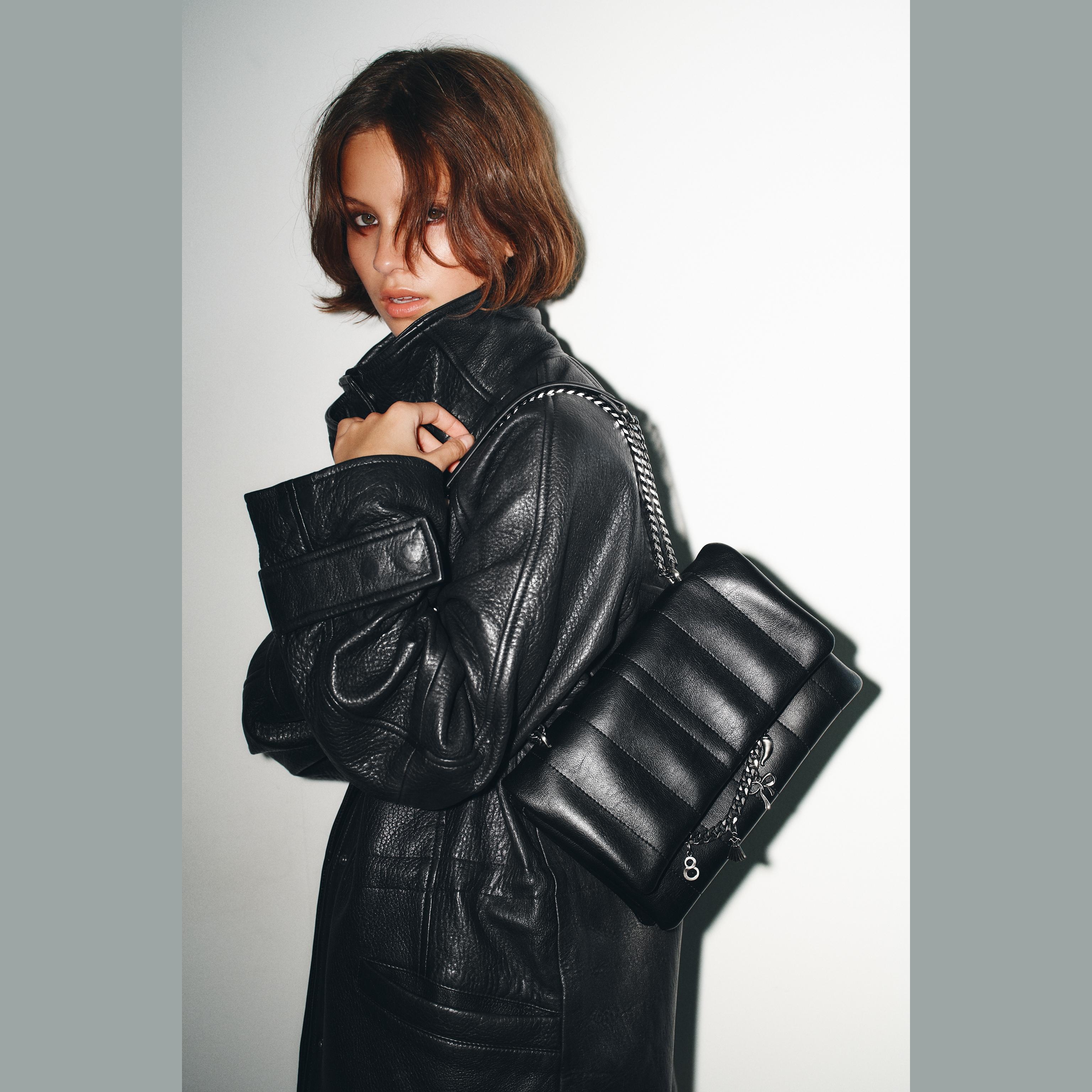 - التصميم: حقيبة كروس مبطنة (Quilted Crossbody Bag) مع سلسلة مزينة بتعليقات