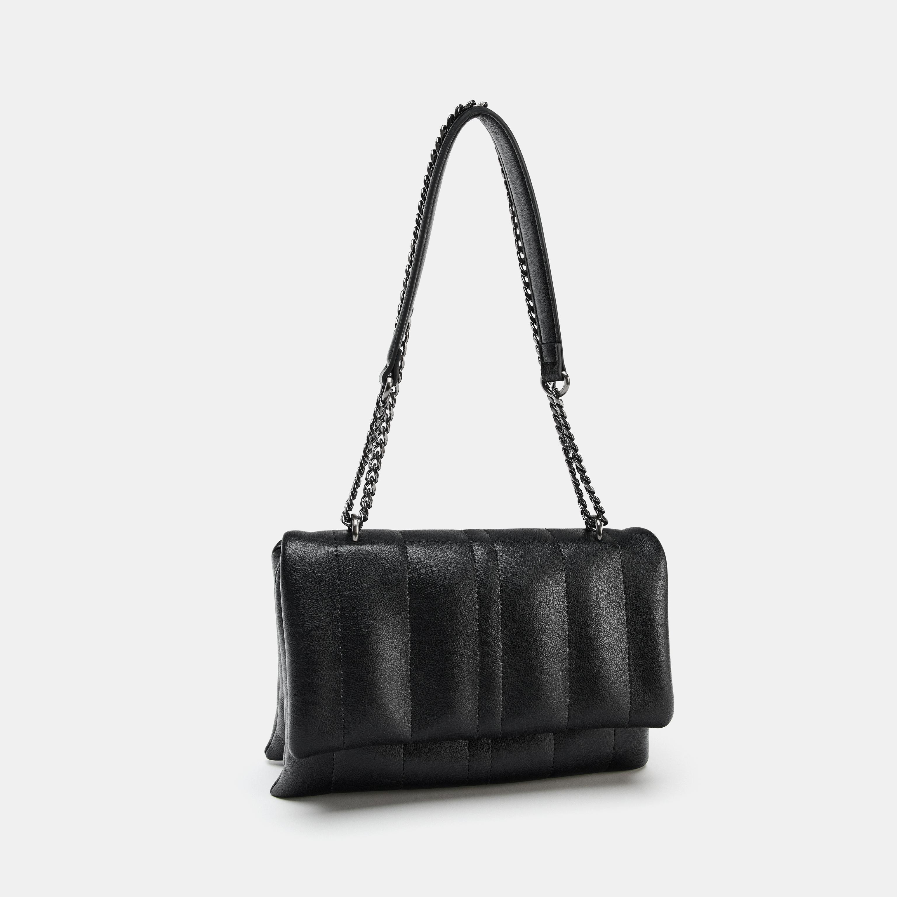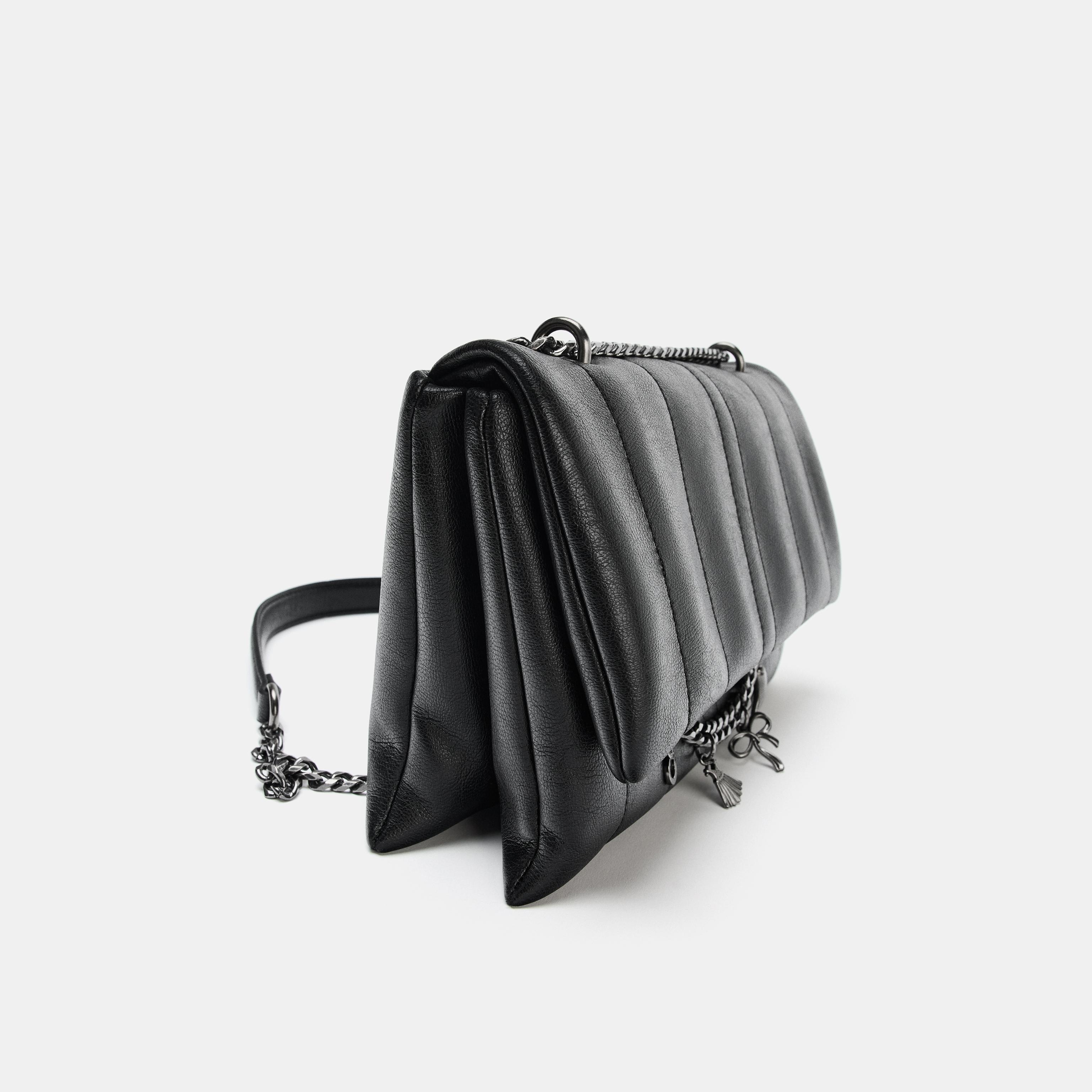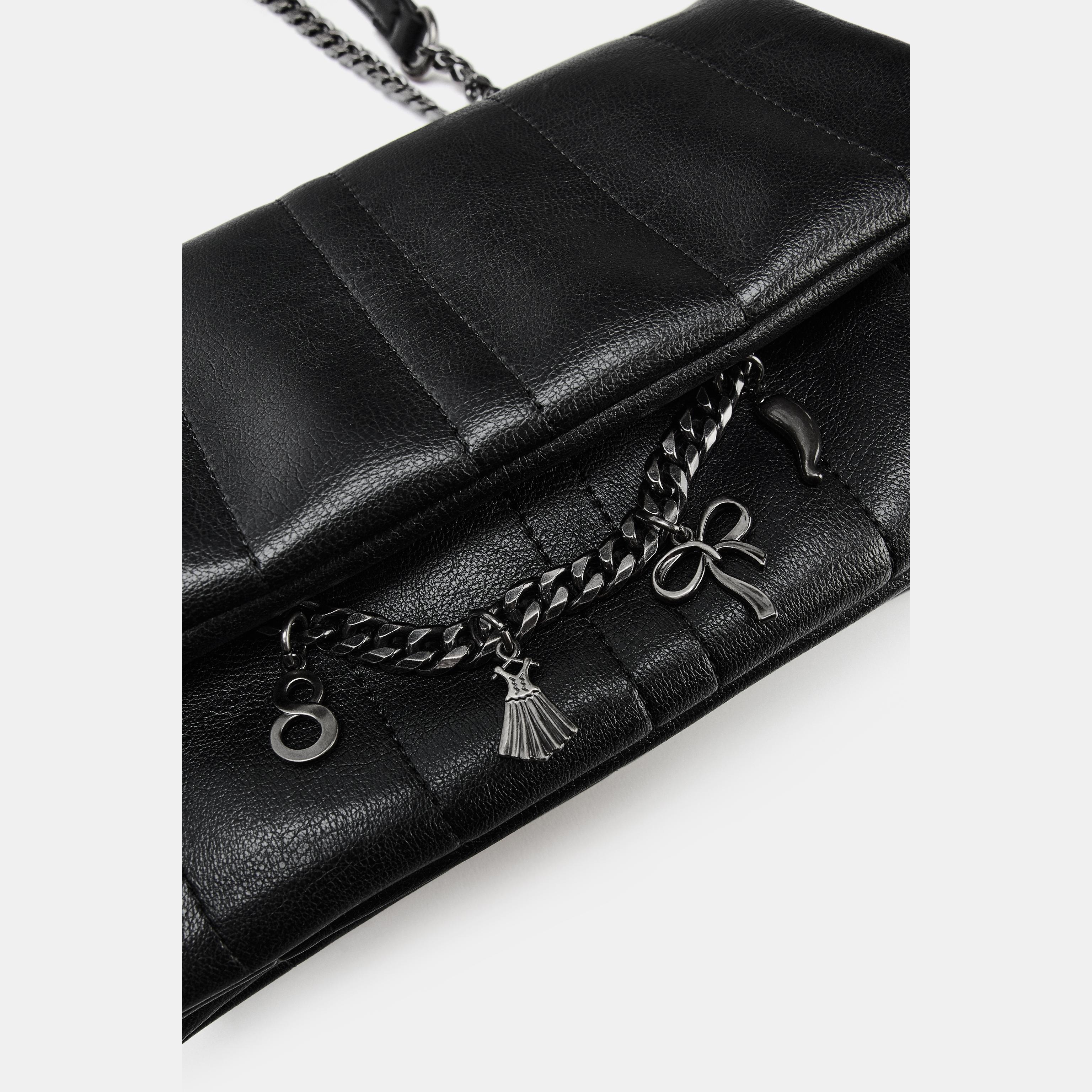 حقيبة كروس مبطنة نسائية – أسود، مزينة بتعليقات معدنية وسلسلة كتف (Quilted Crossbody Bag with Charms)