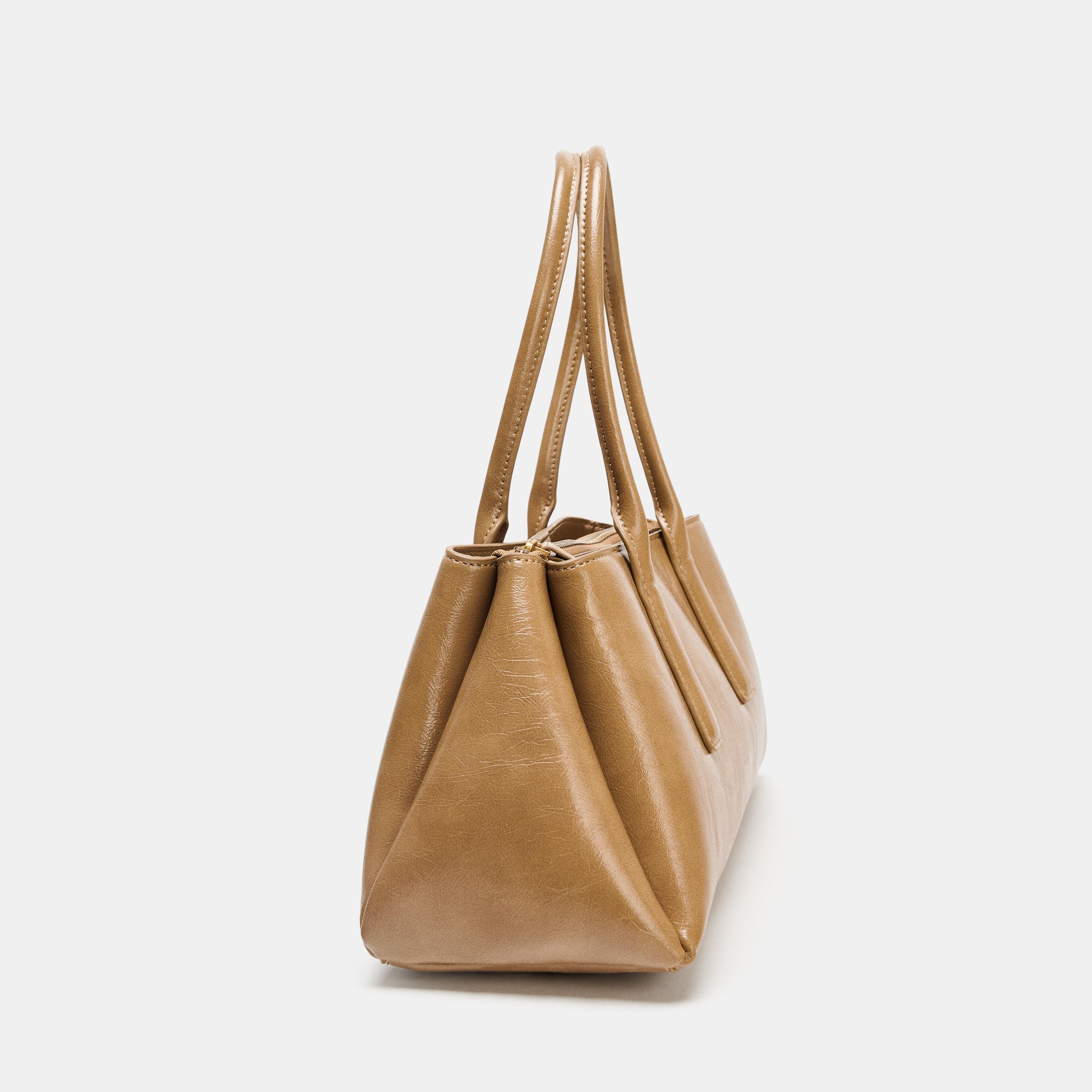 حقيبة سيتي نسائية – بيج، بتأثير متشقق وحزام كتف مزدوج (Crackled-Effect City Bag)