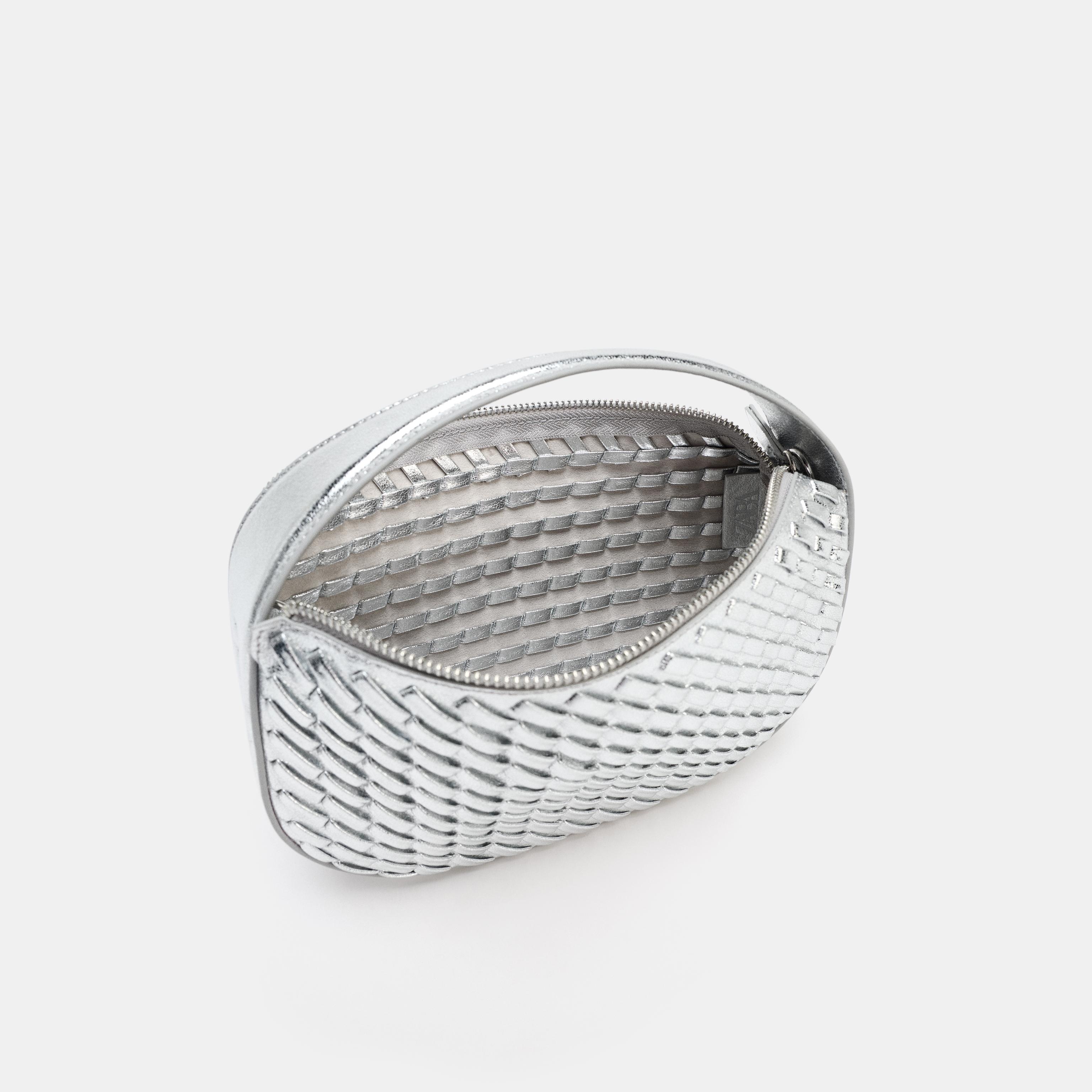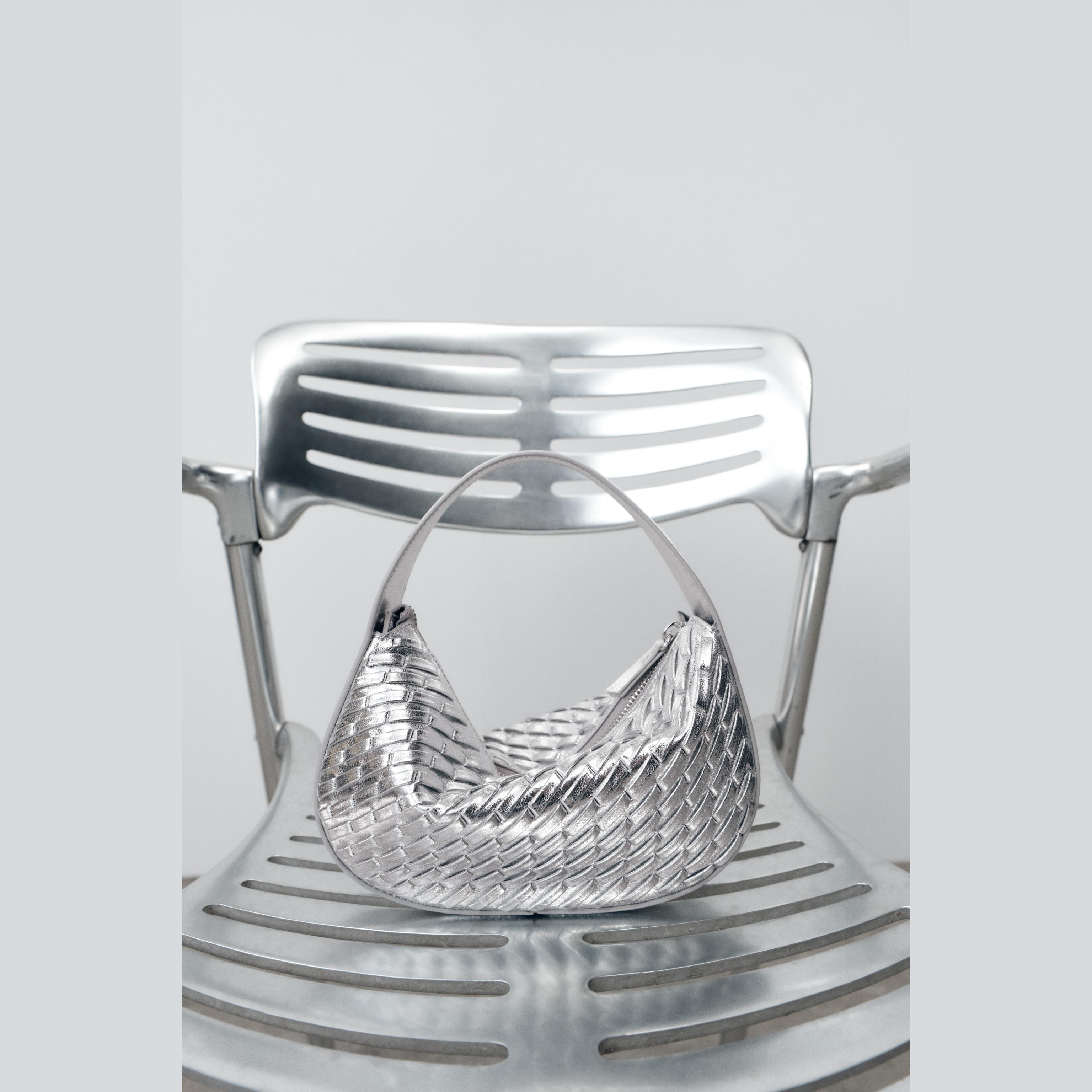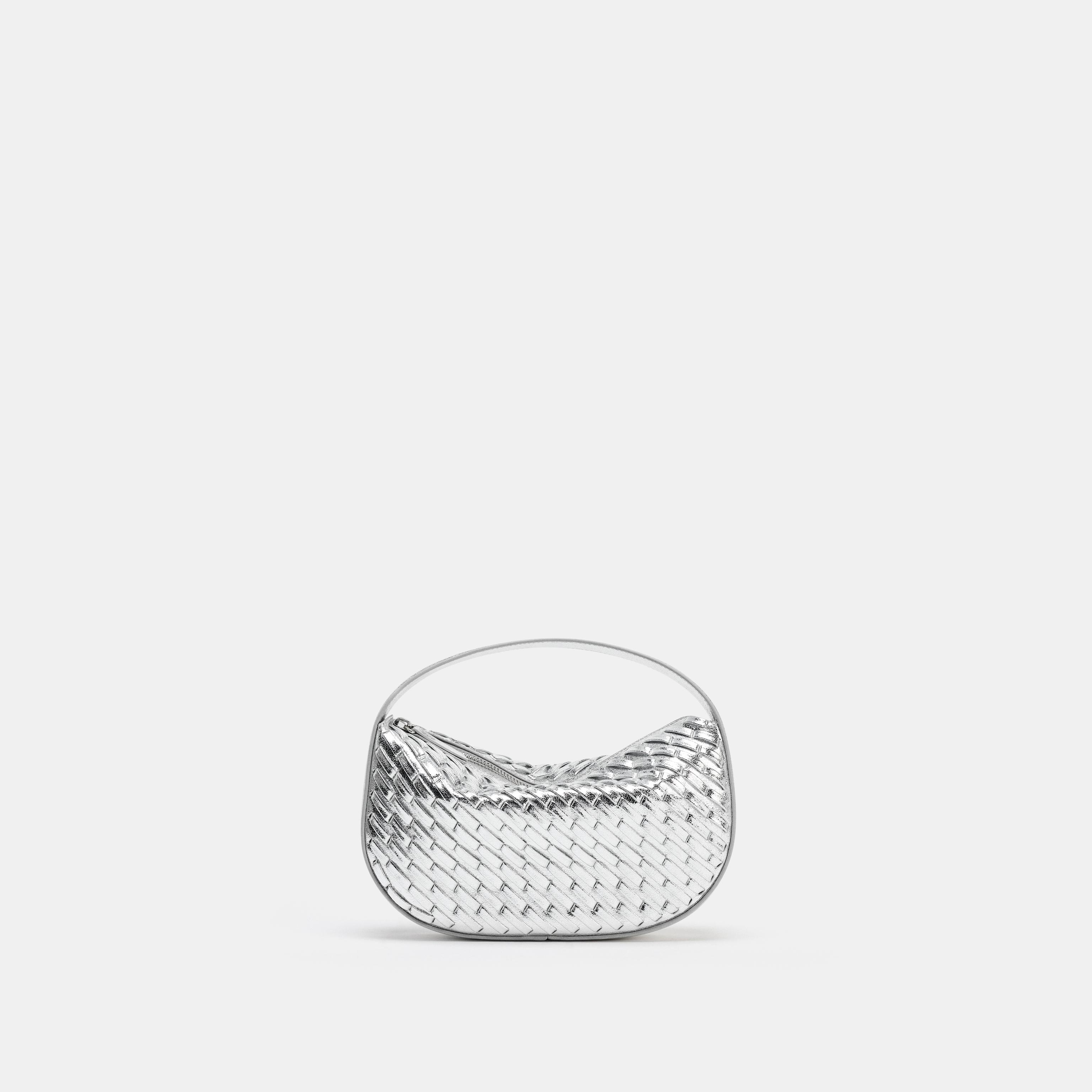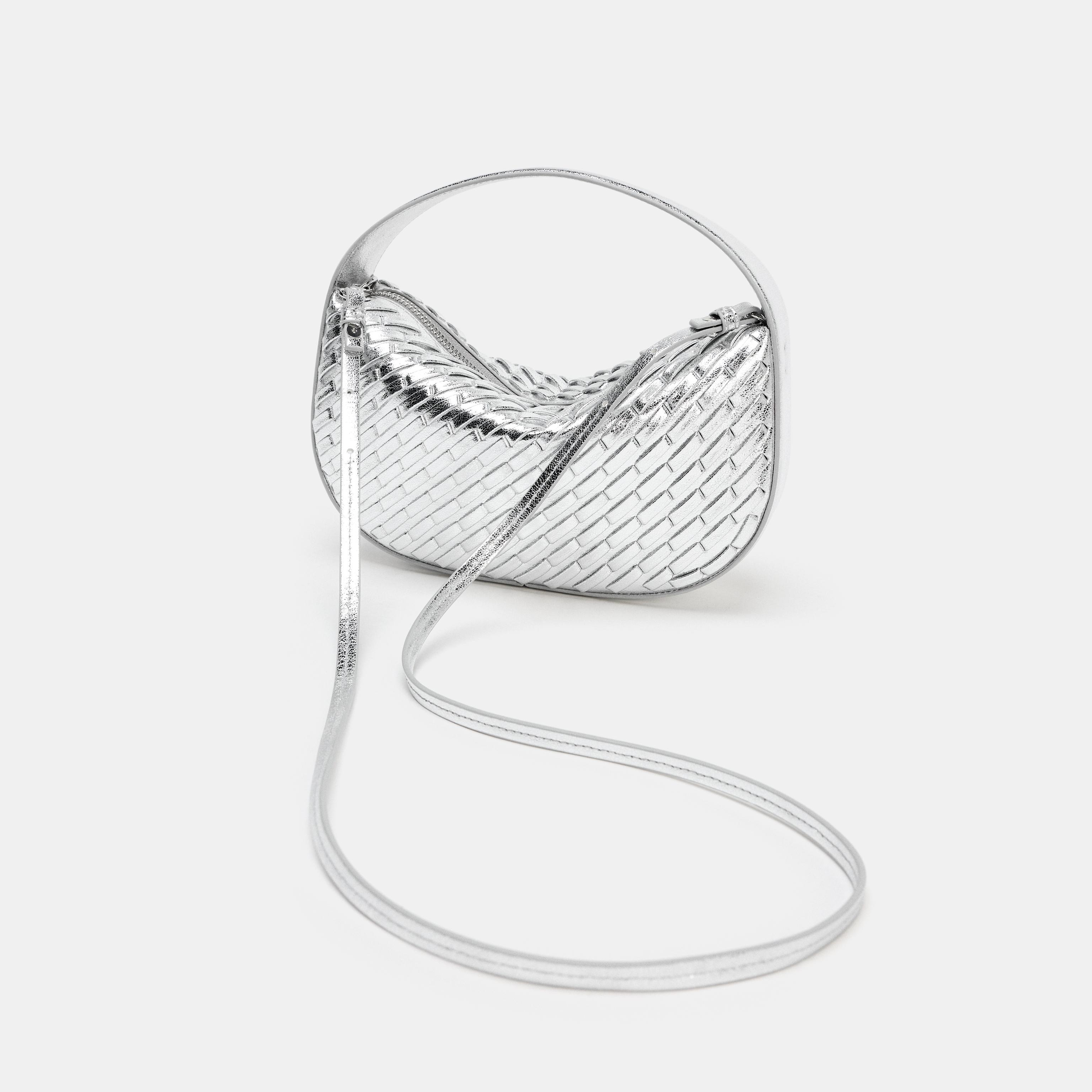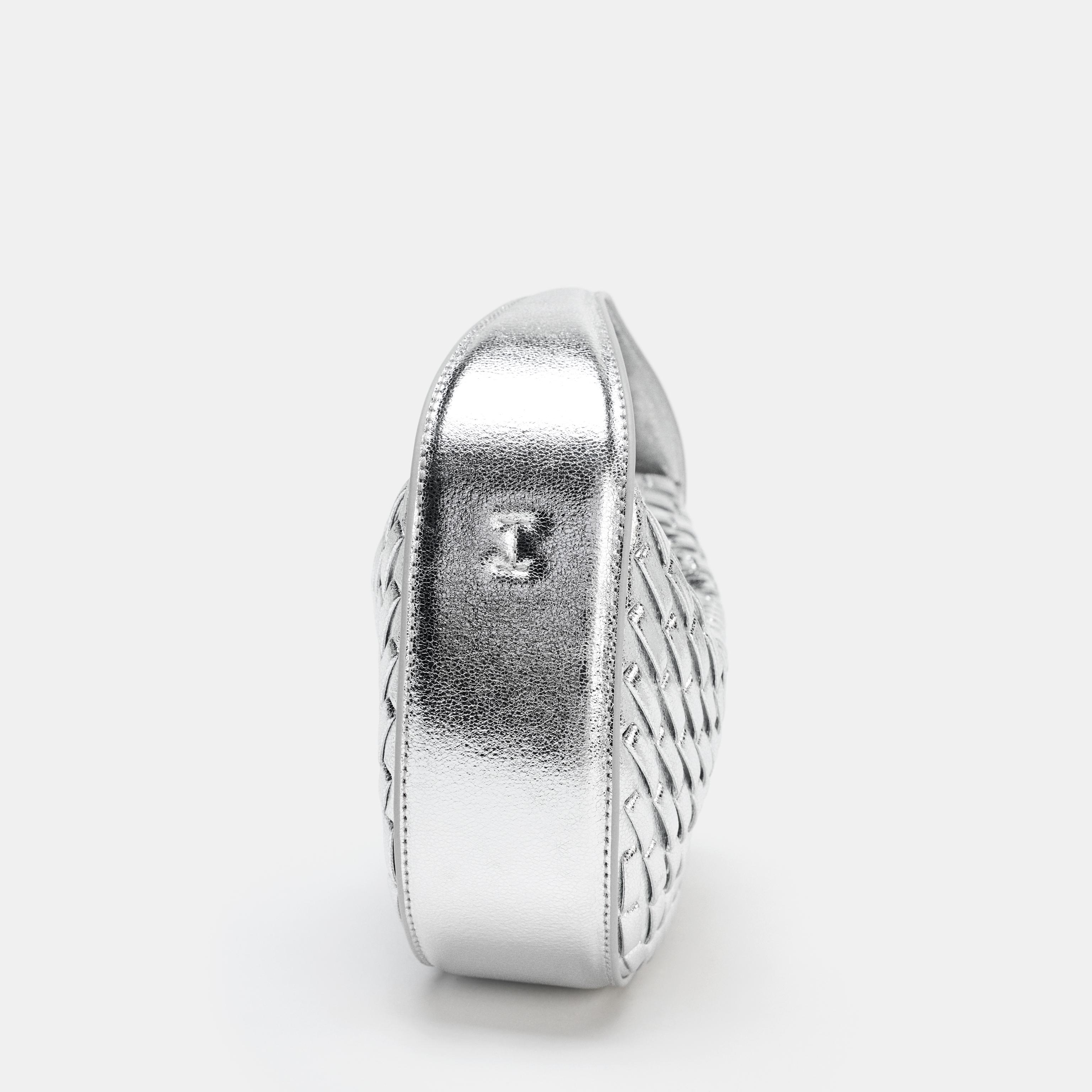 حقيبة يد نسائية – فضي، بتأثير مضفر وحزام كتف قابل للفصل (Braided-Effect Handbag)