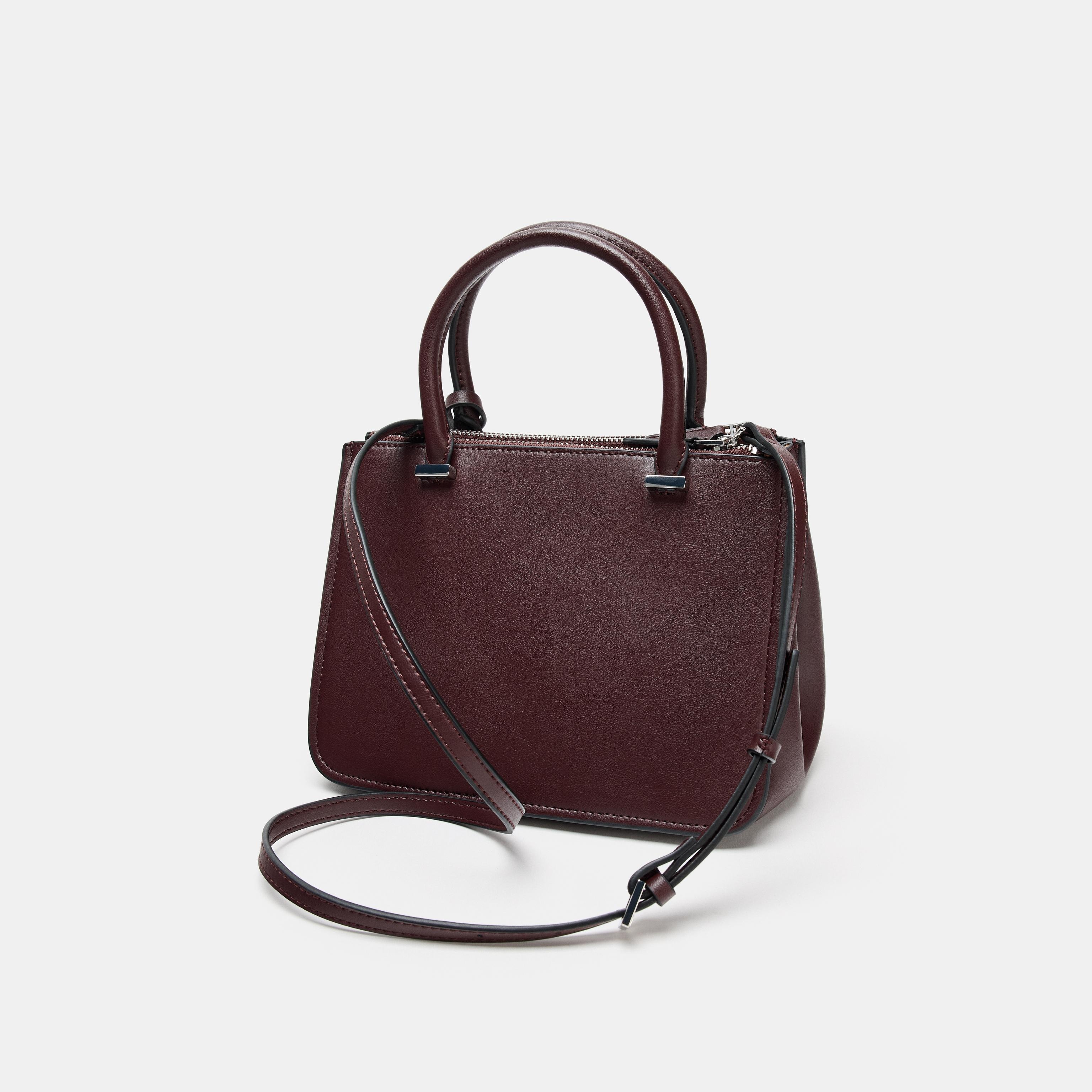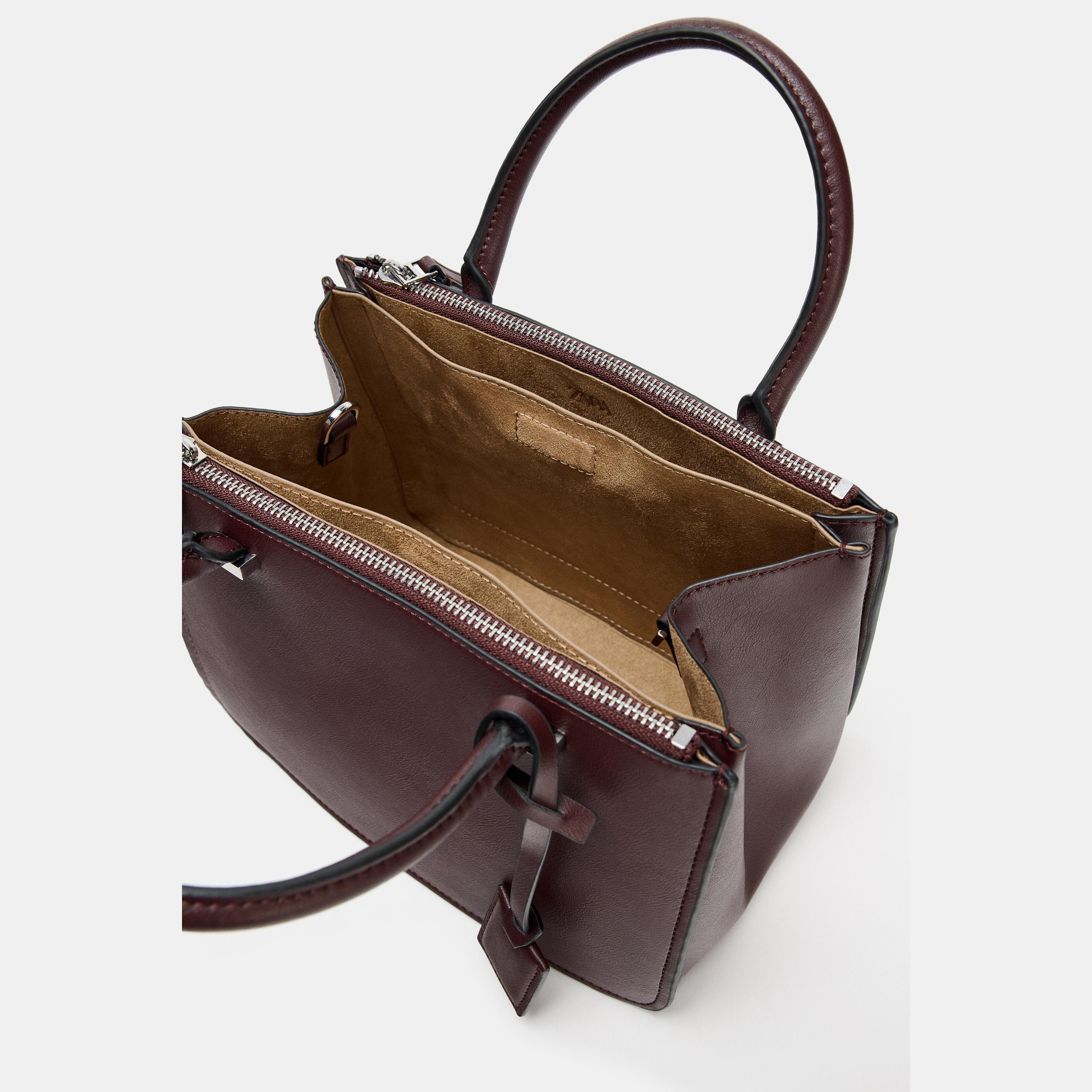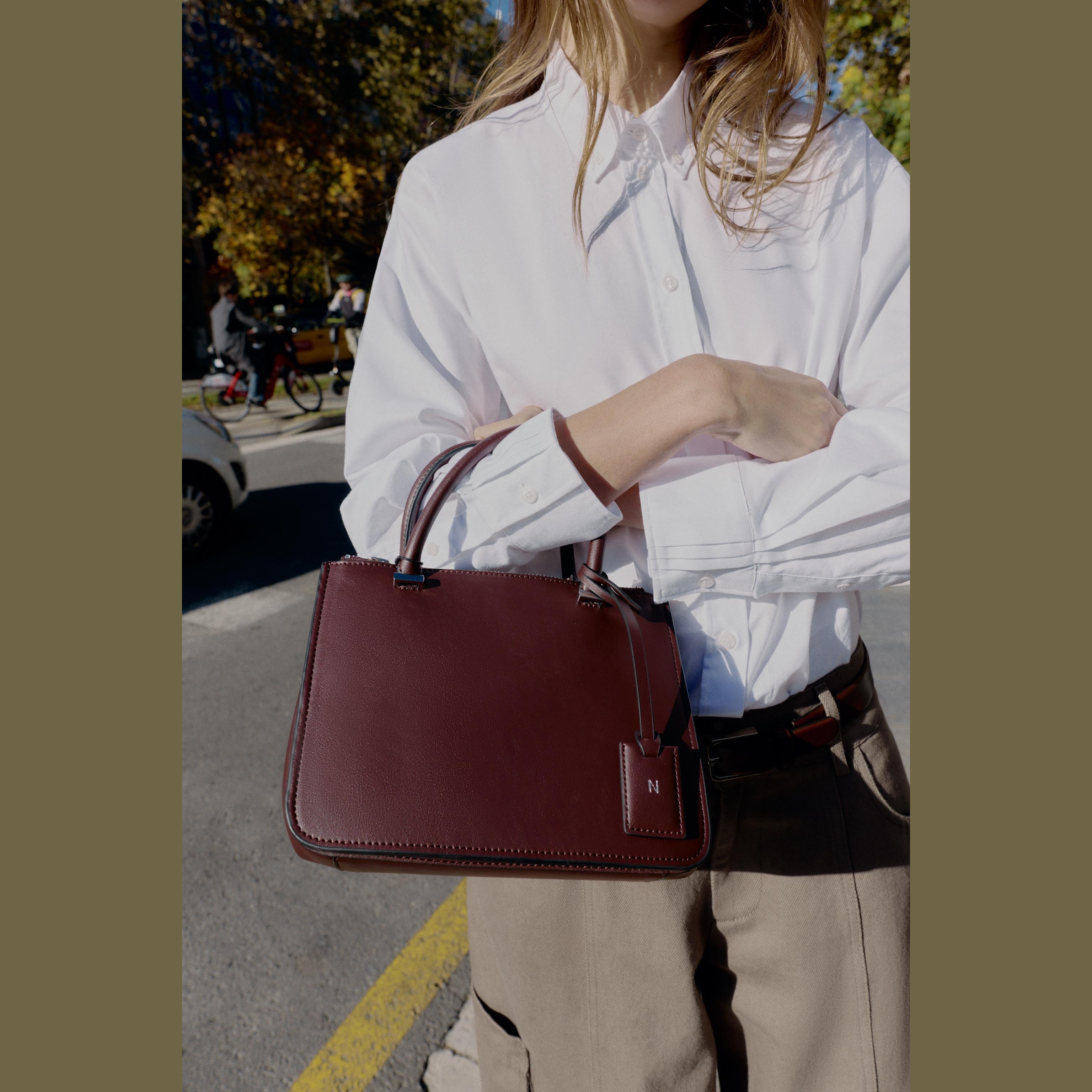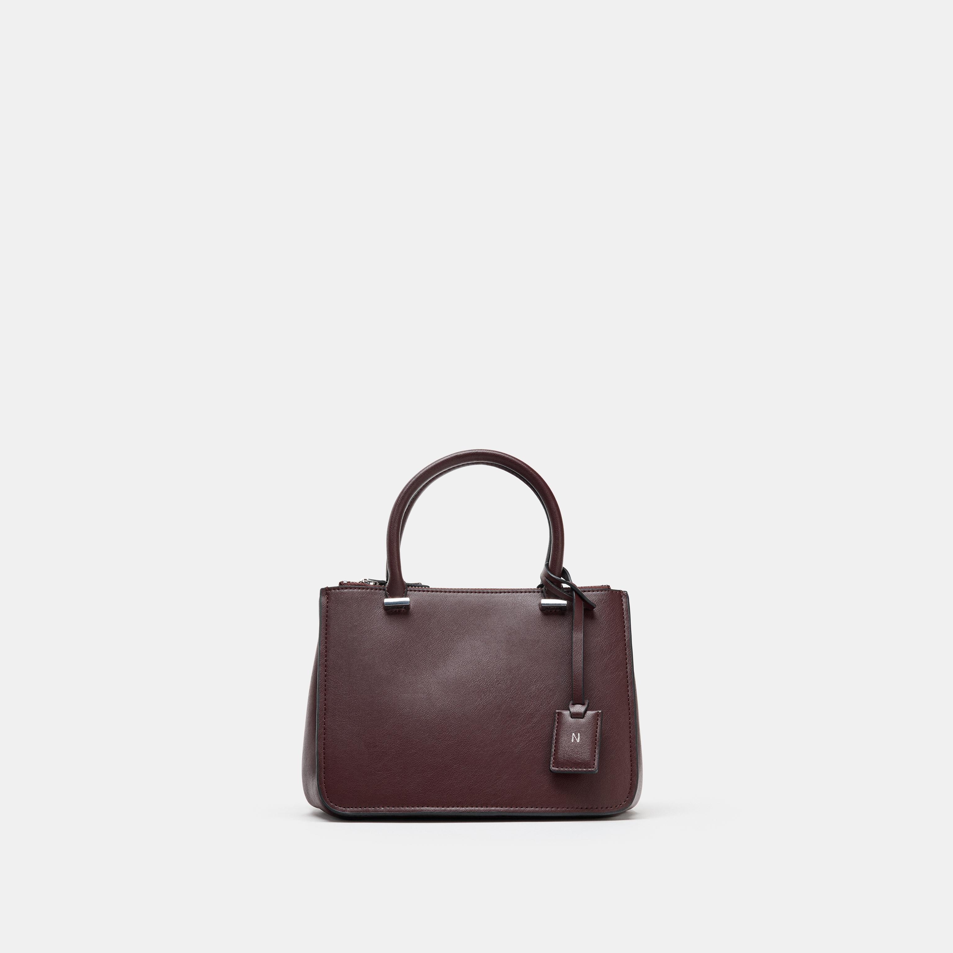 حقيبة سيتي صغيرة نسائية – خمري، بمقابض مزدوجة وحزام كتف قابل للفصل (Mini City Bag with Double Handle)