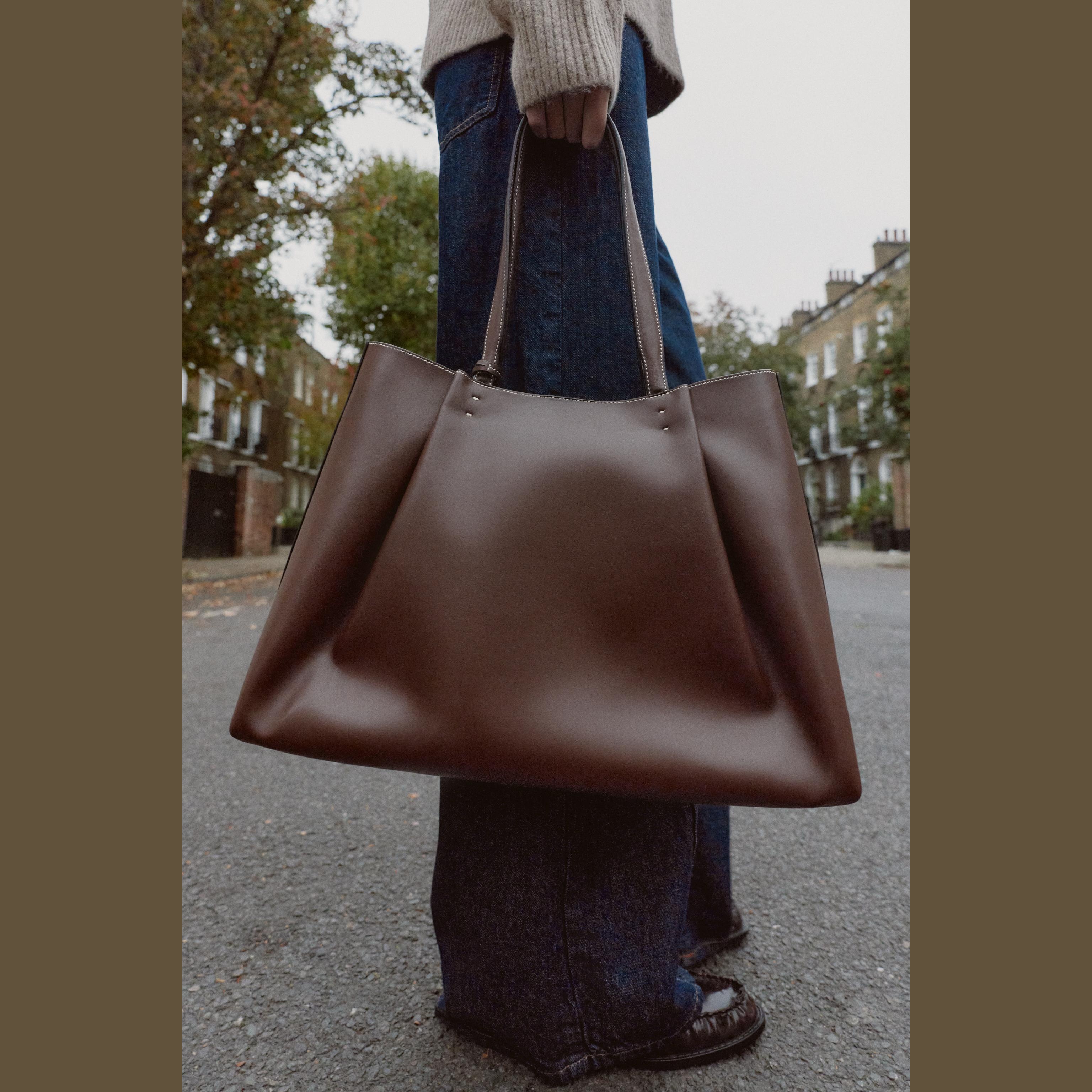 - التصميم: حقيبة توت (Tote Bag) بتفاصيل Pinch