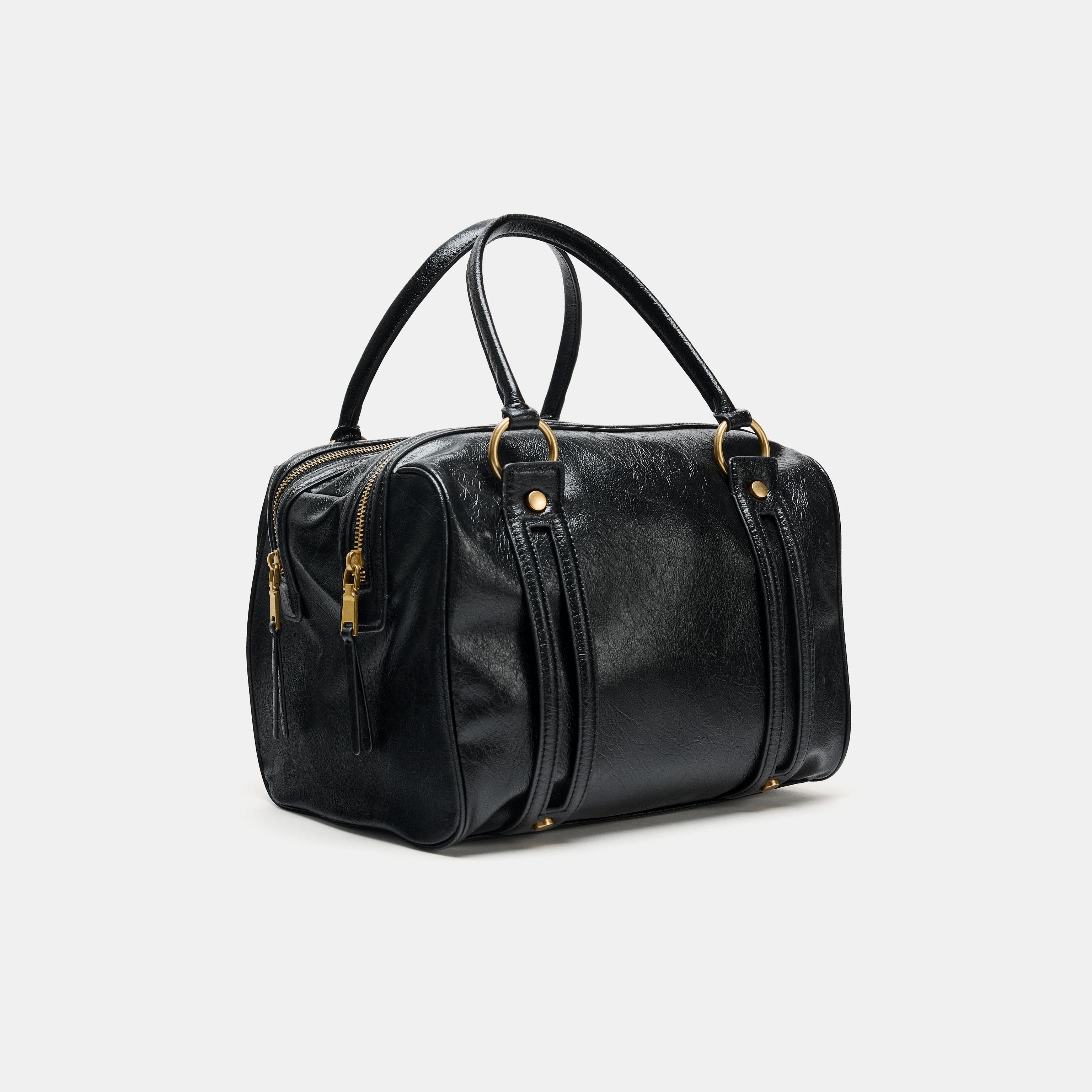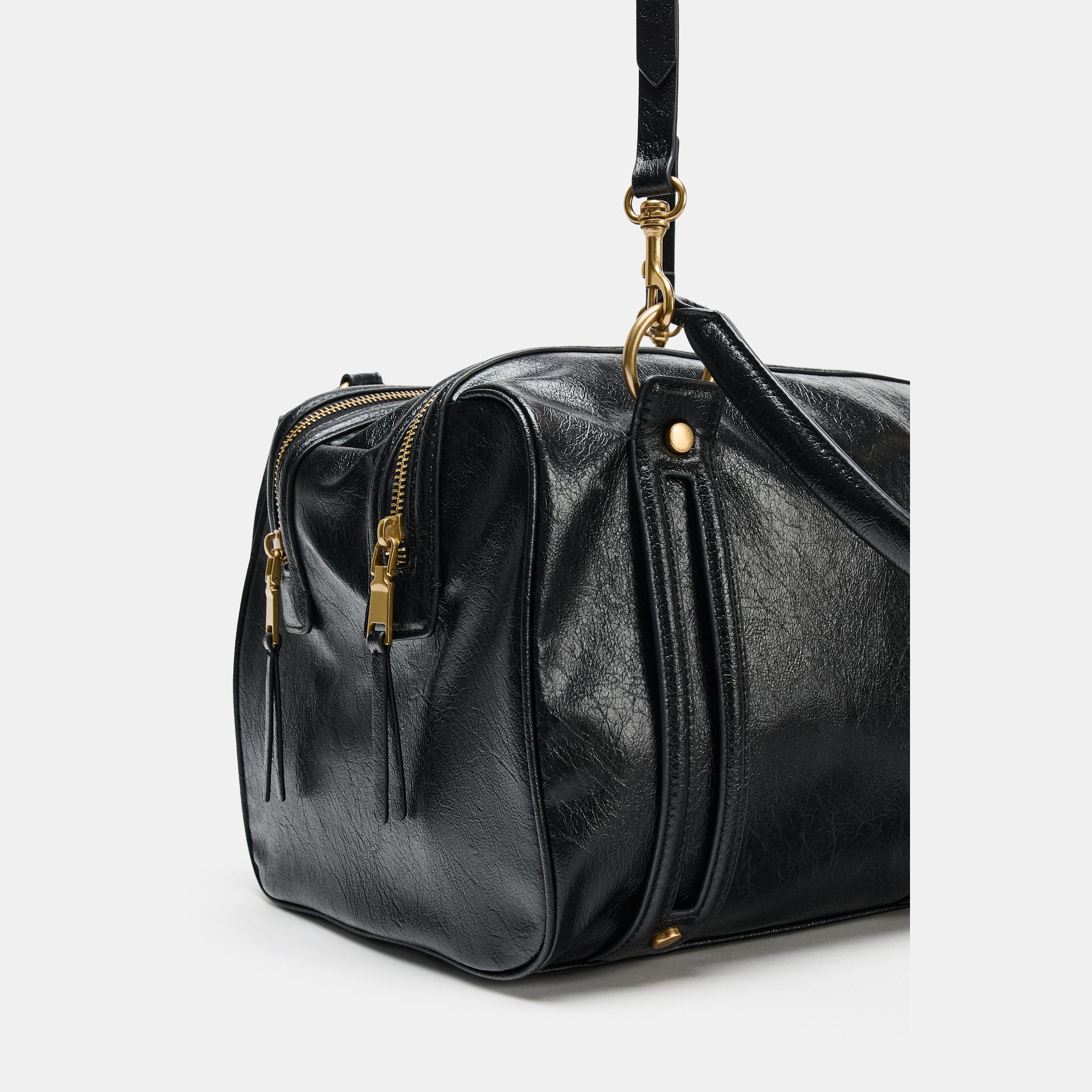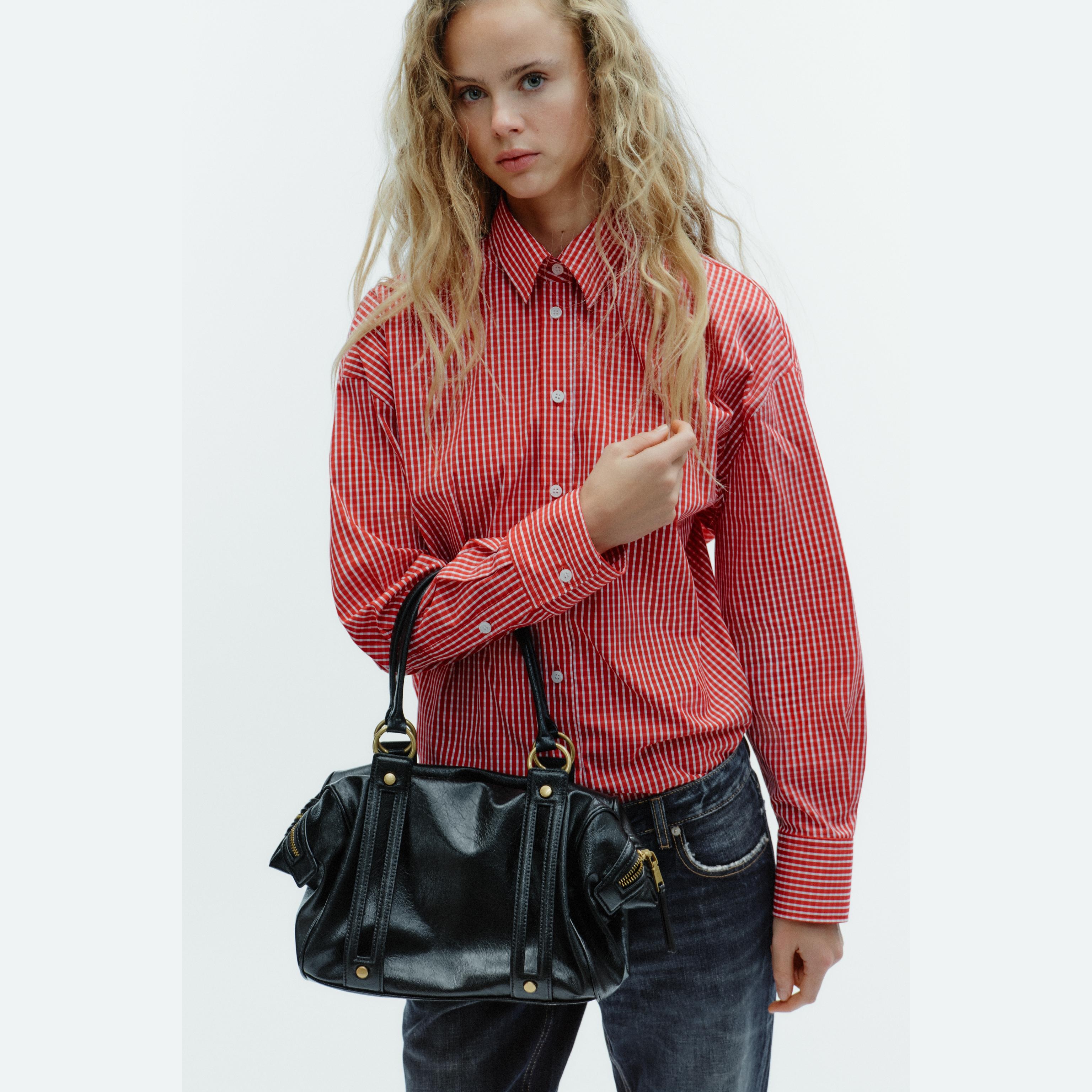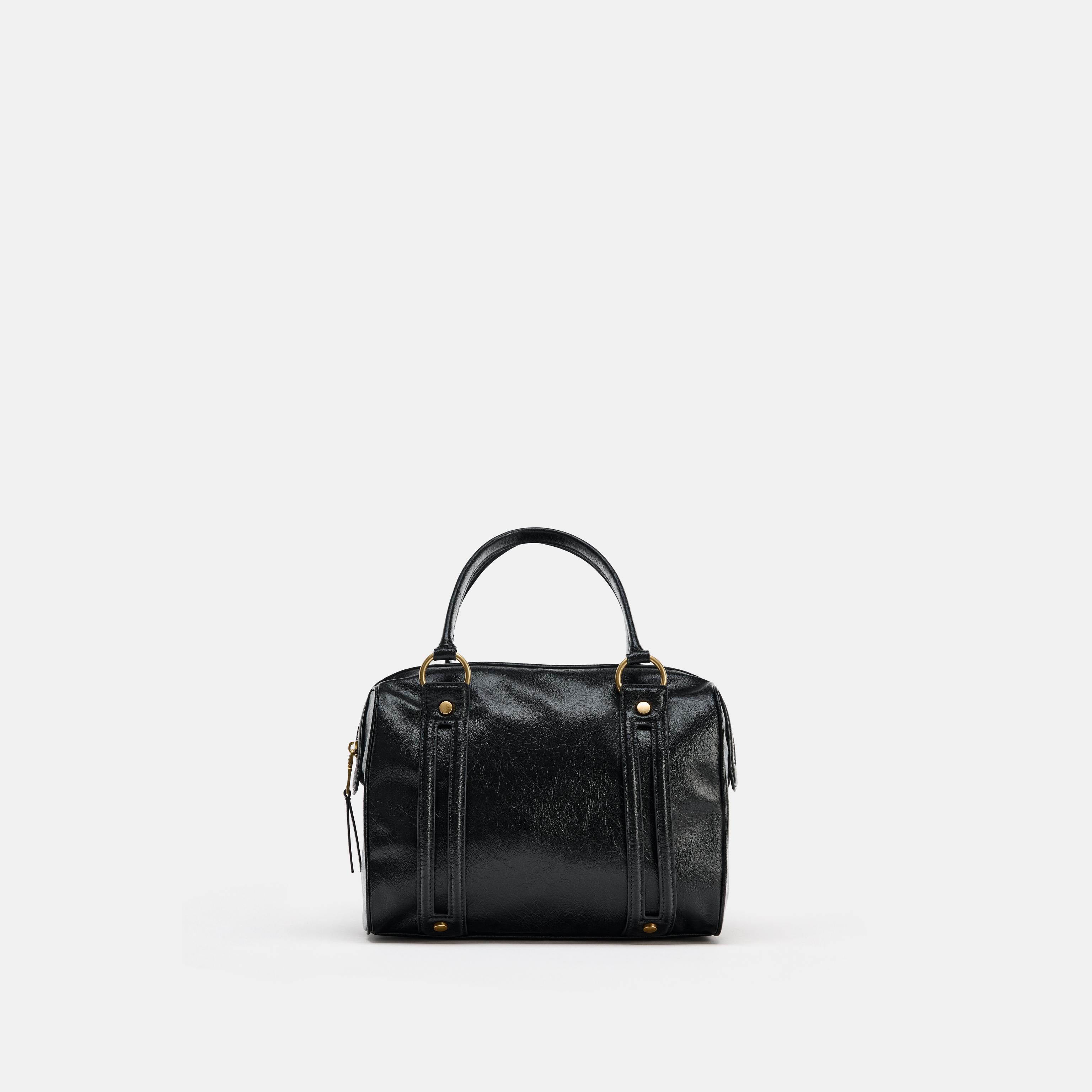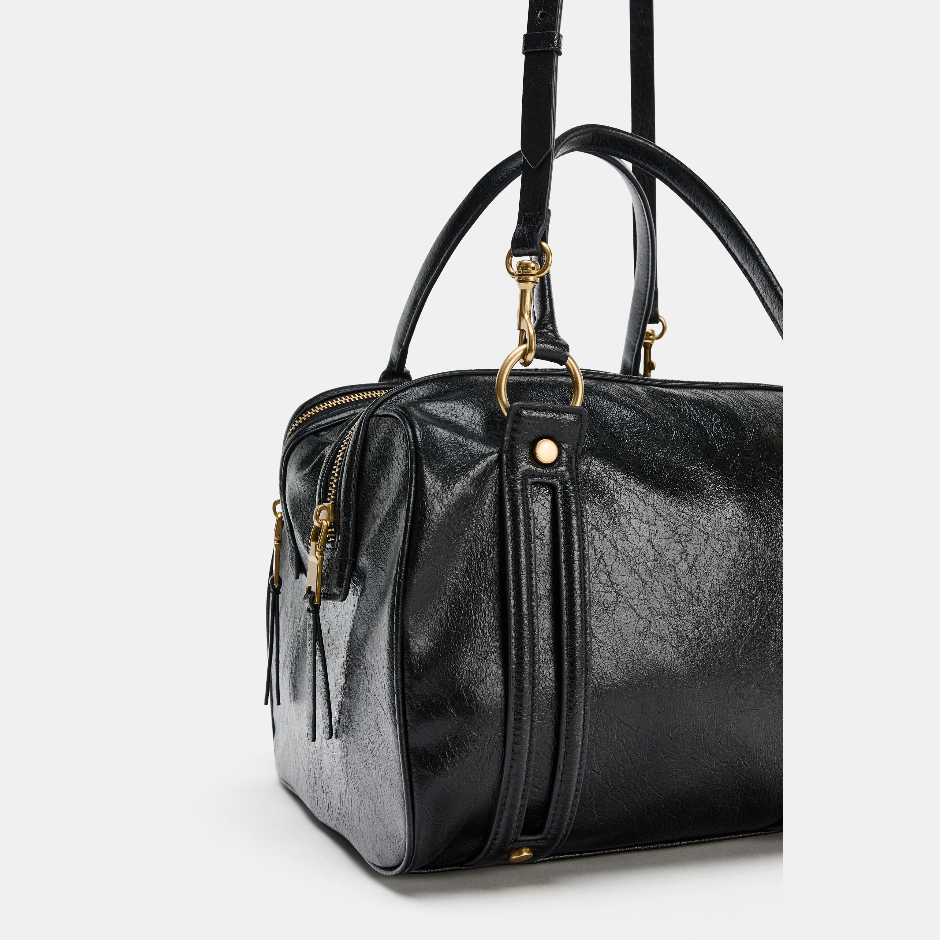 حقيبة كتف أنيقة بلون أسود كلاسيكي، مصنوعة من خامة صناعية عالية الجودة مع تفاصيل معدنية تضيف لمسة عصرية. مزودة بمقبض علوي مزدوج وحزام كتف طويل قابل للفصل، مع جيب داخلي بسحاب وإغلاق علوي مزدوج بسحّاب معدني. تصميم مثالي للإطلالات اليومية أو المناسبات الخاصة.