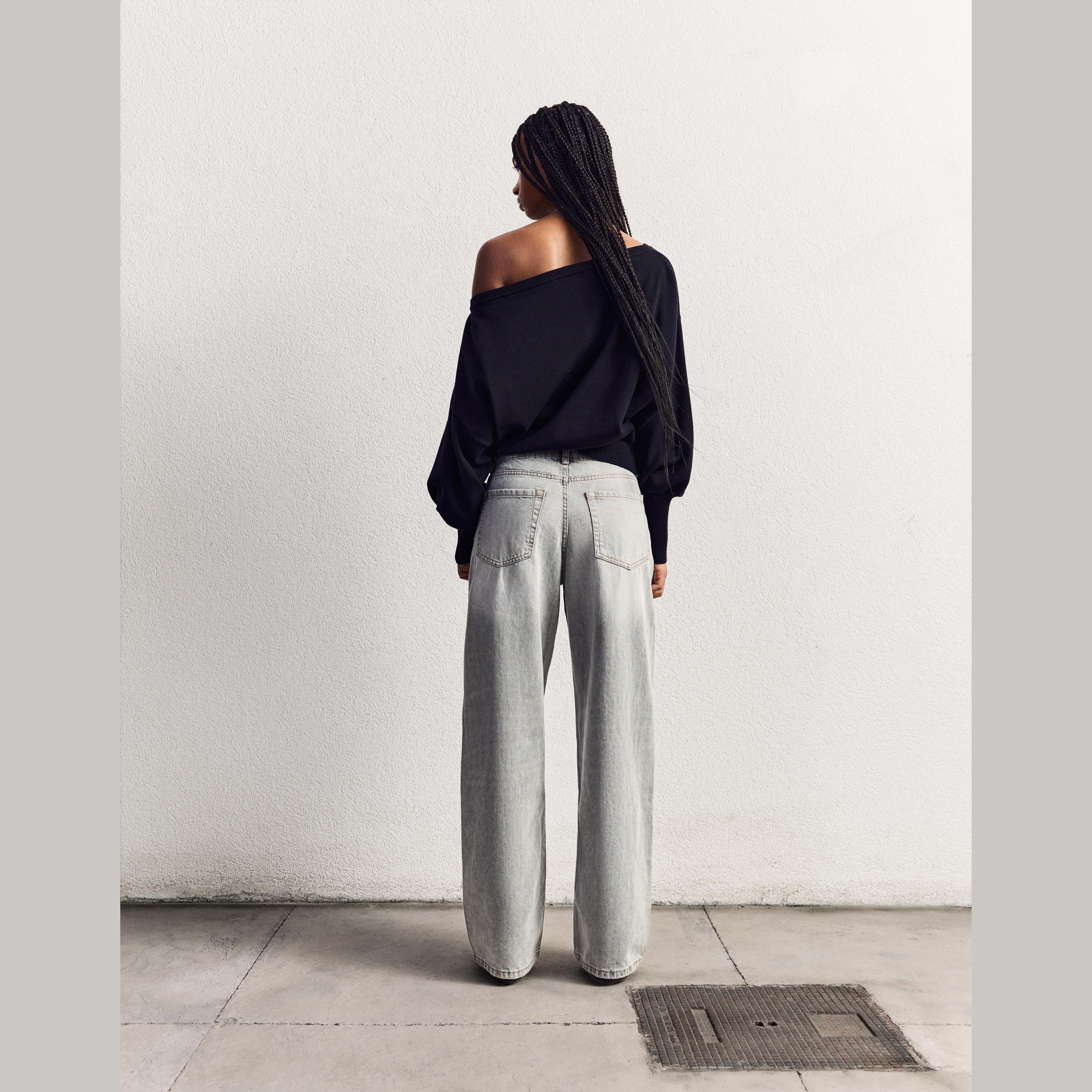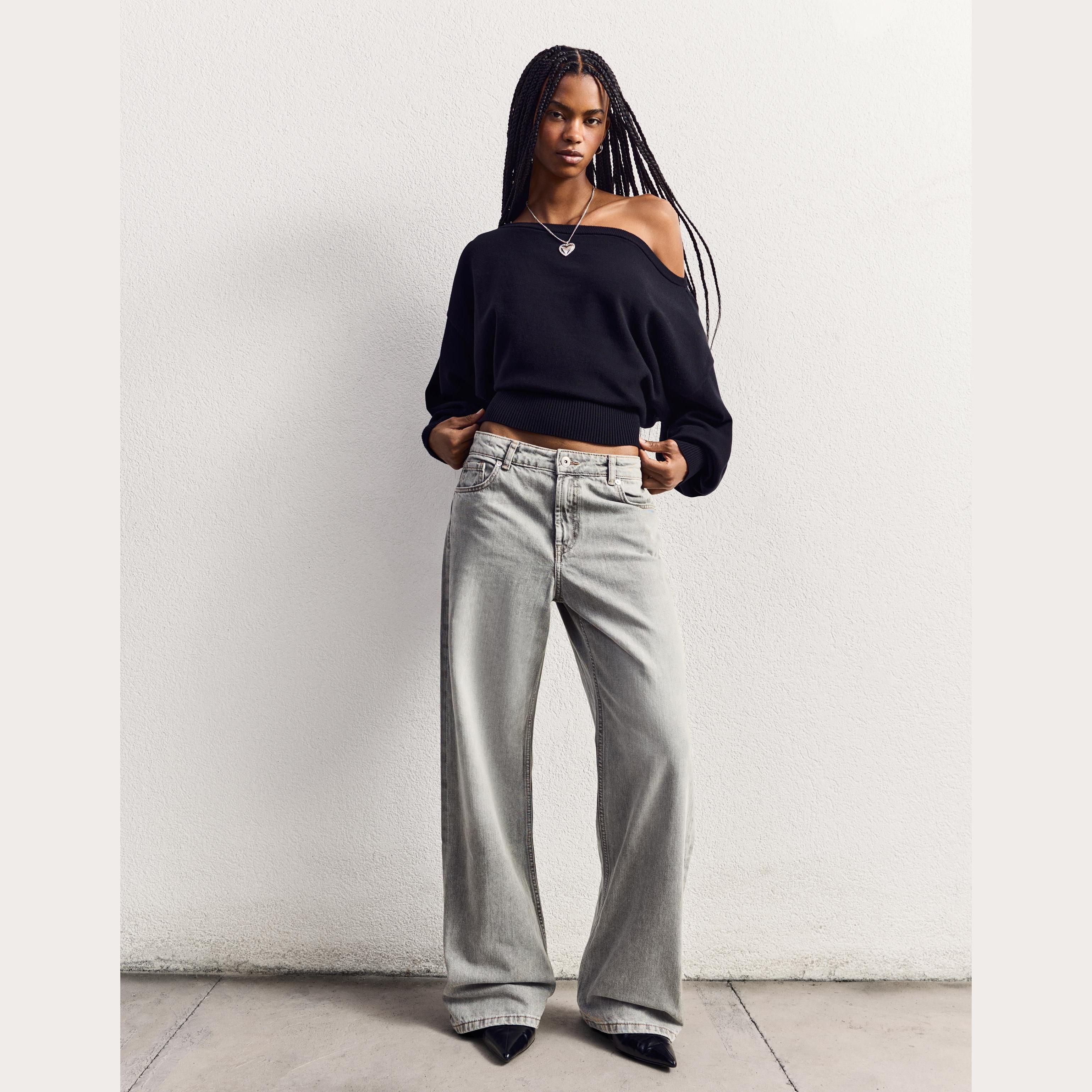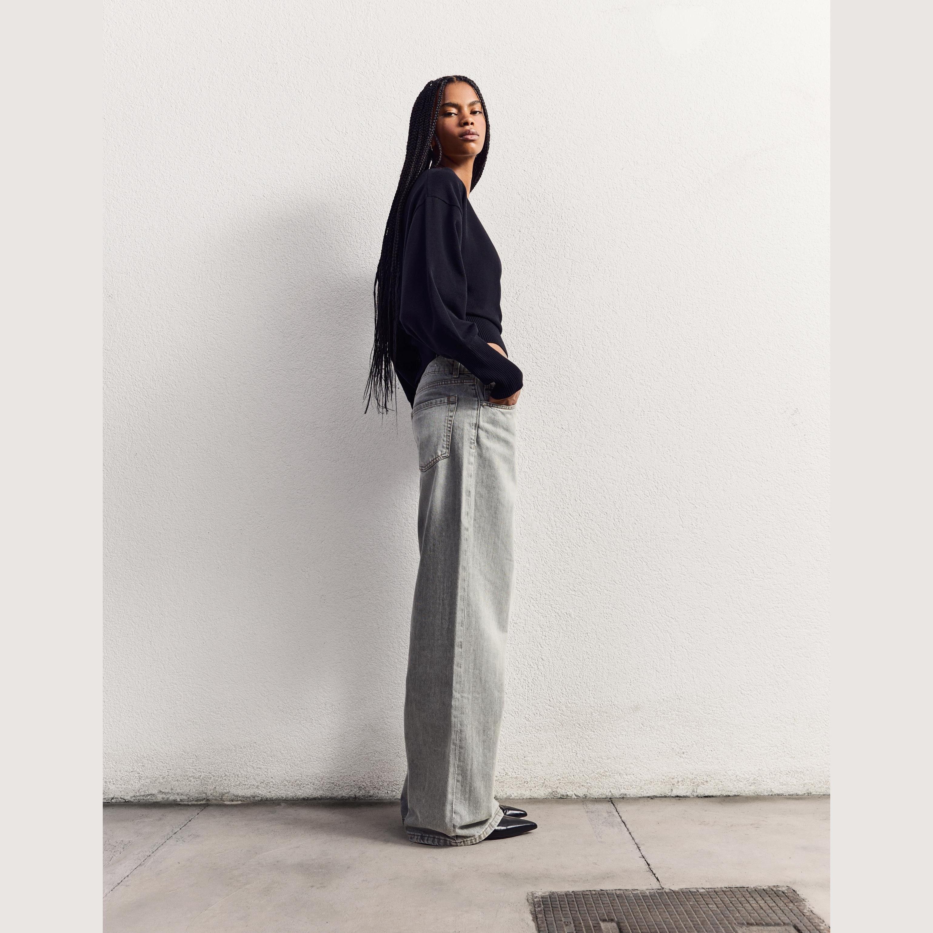 Bershka – جينز Baggy للفتيات بلون رمادي