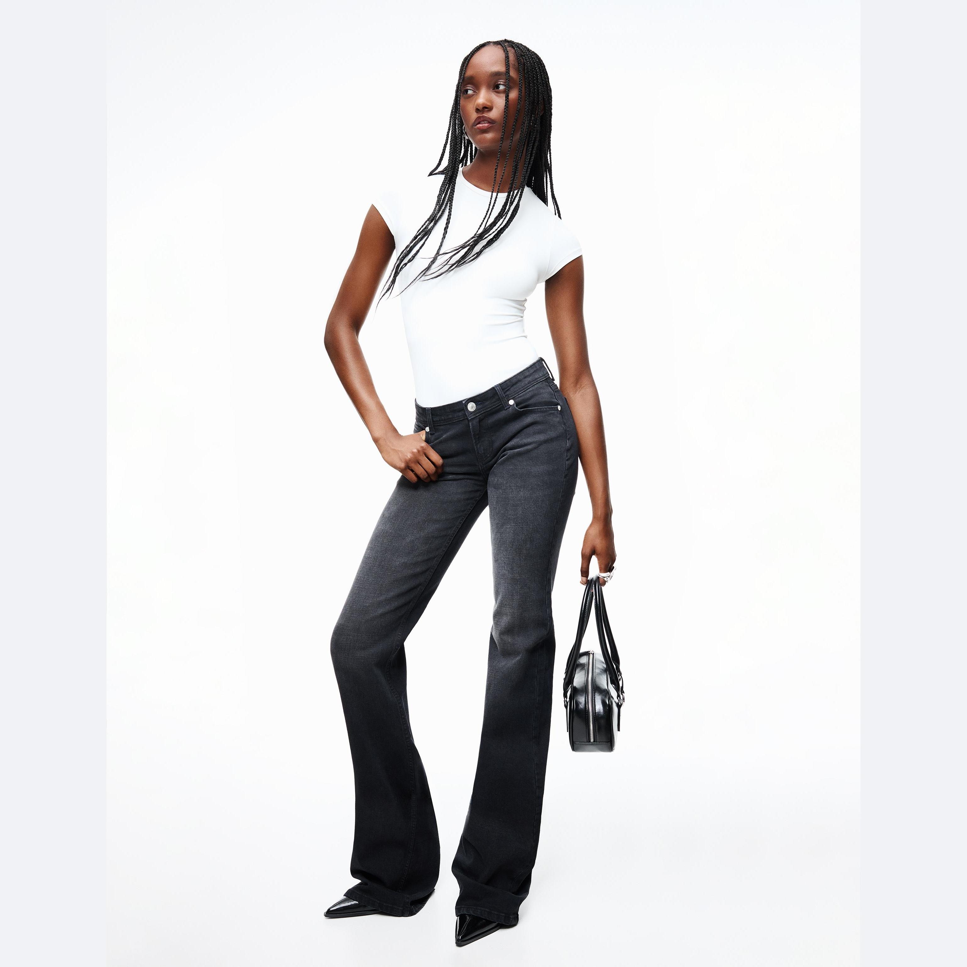 Bershka – جينز Boot-Cut بخصر منخفض للفتيات بلون رمادي داكن