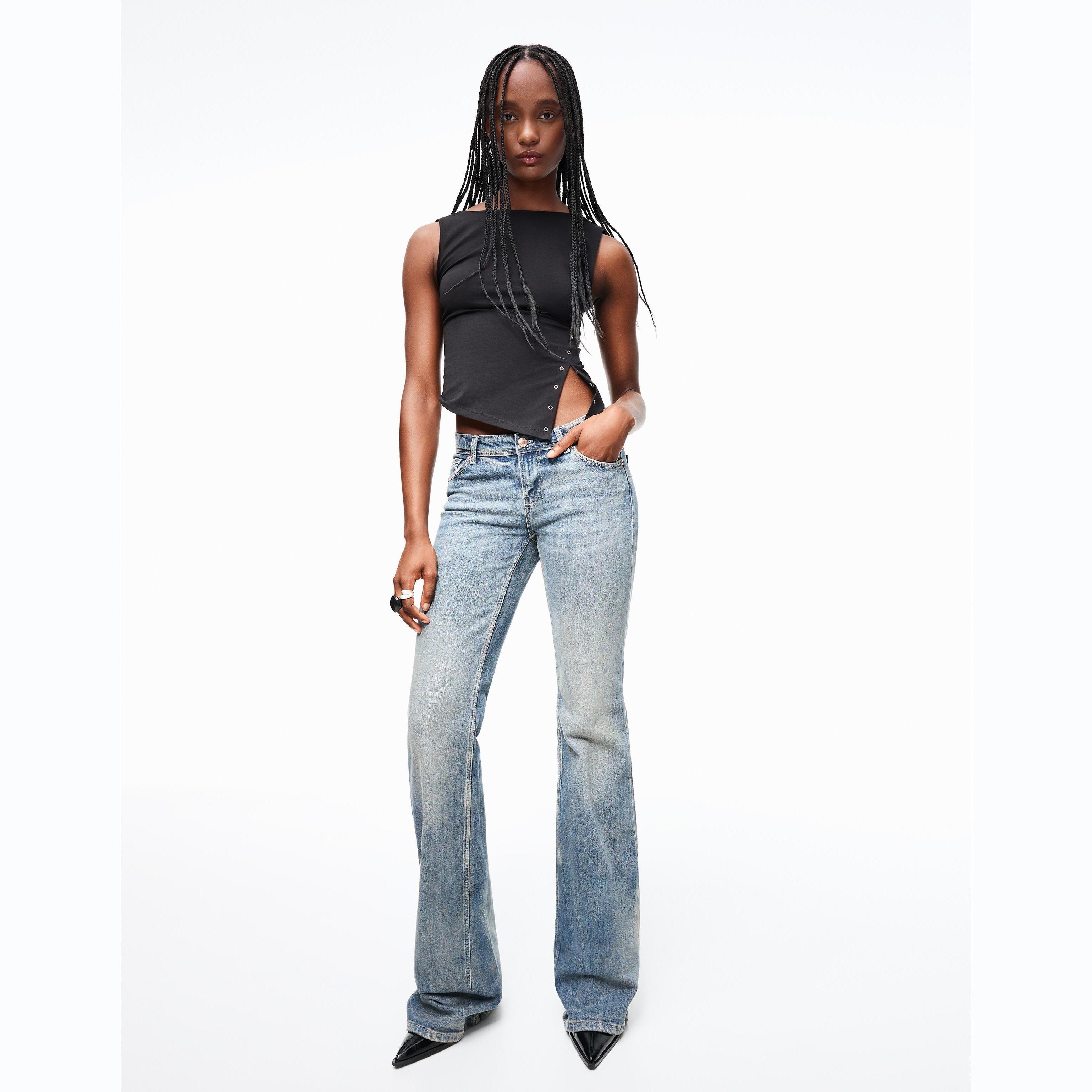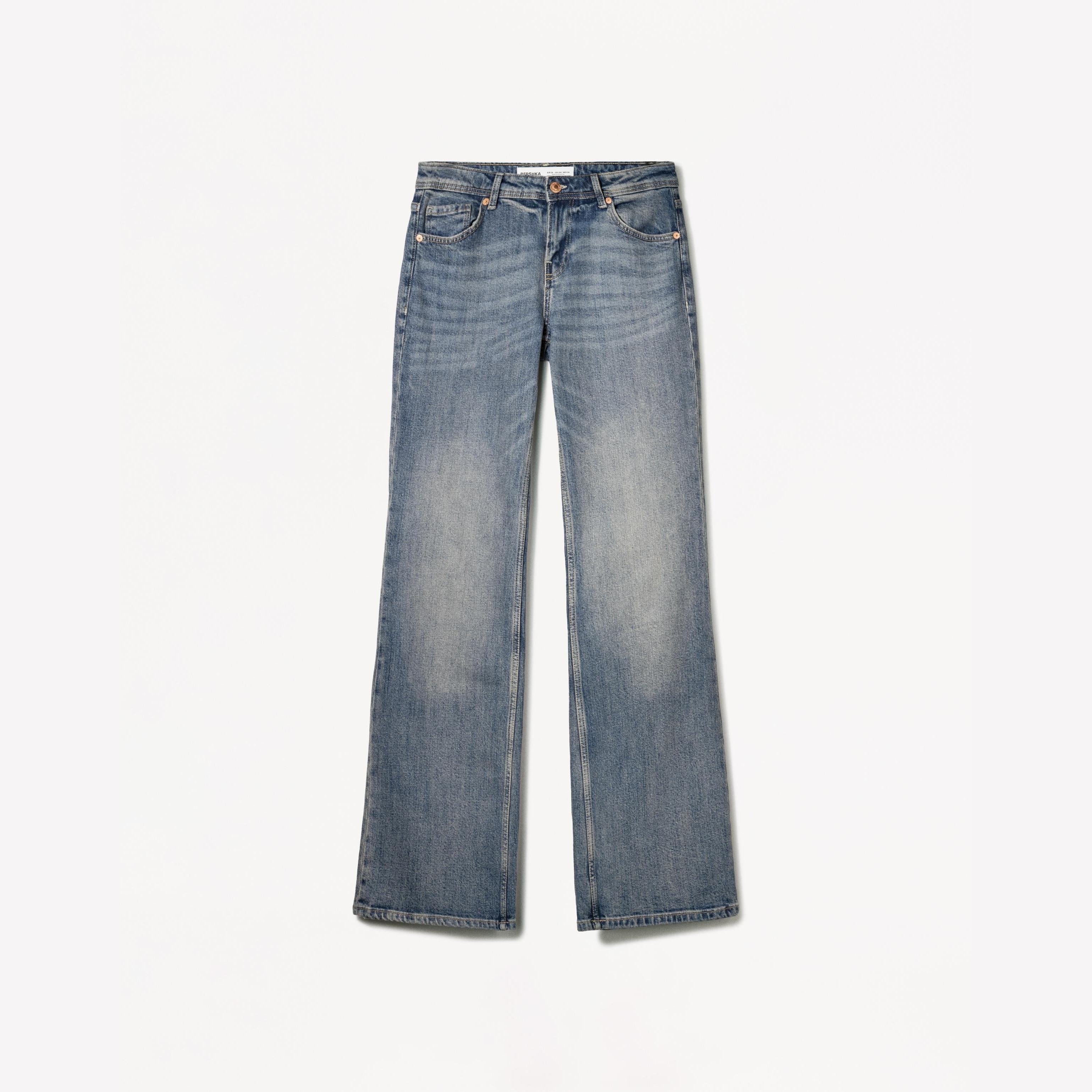 Bershka – جينز Boot-Cut بخصر منخفض للفتيات بلون أزرق مغسول
