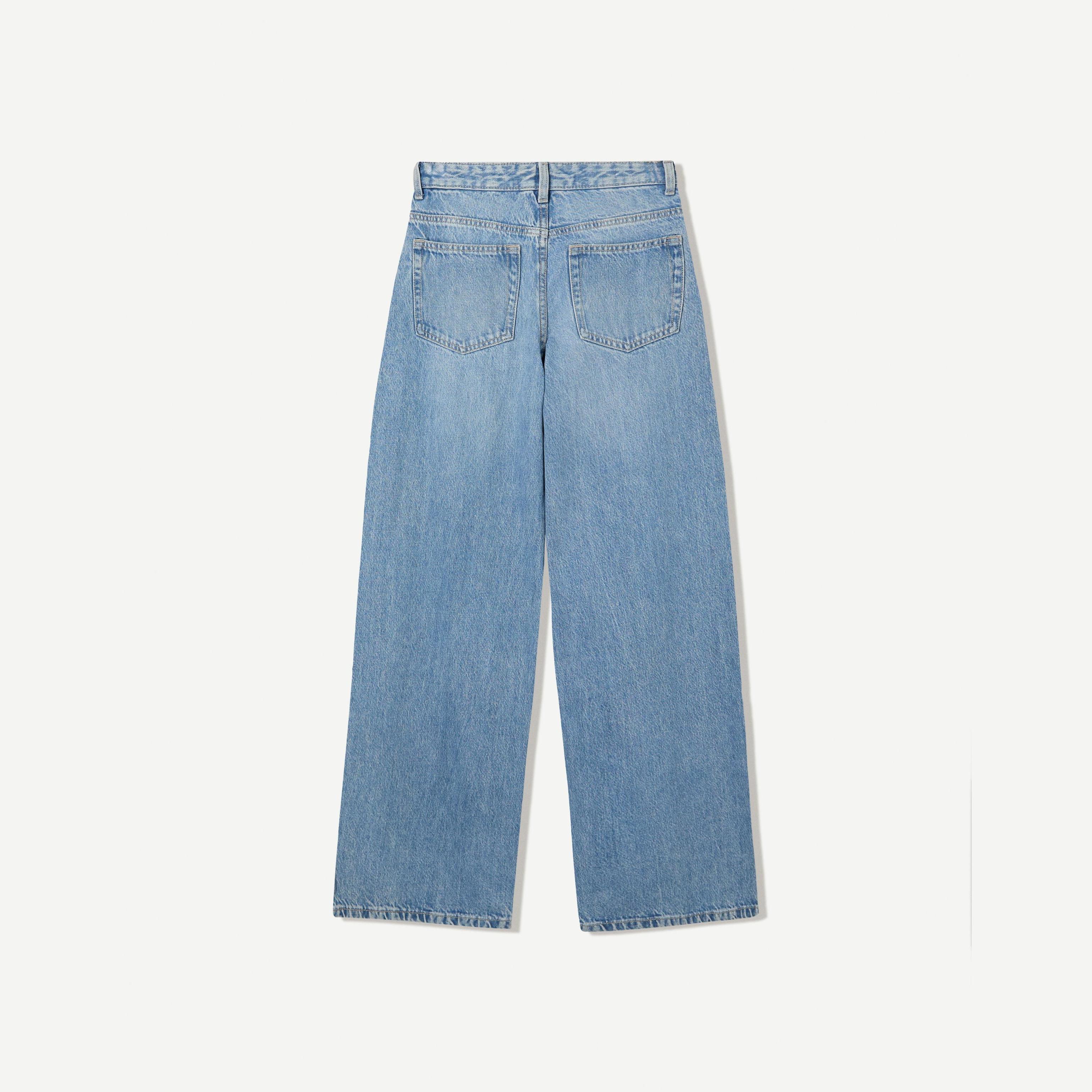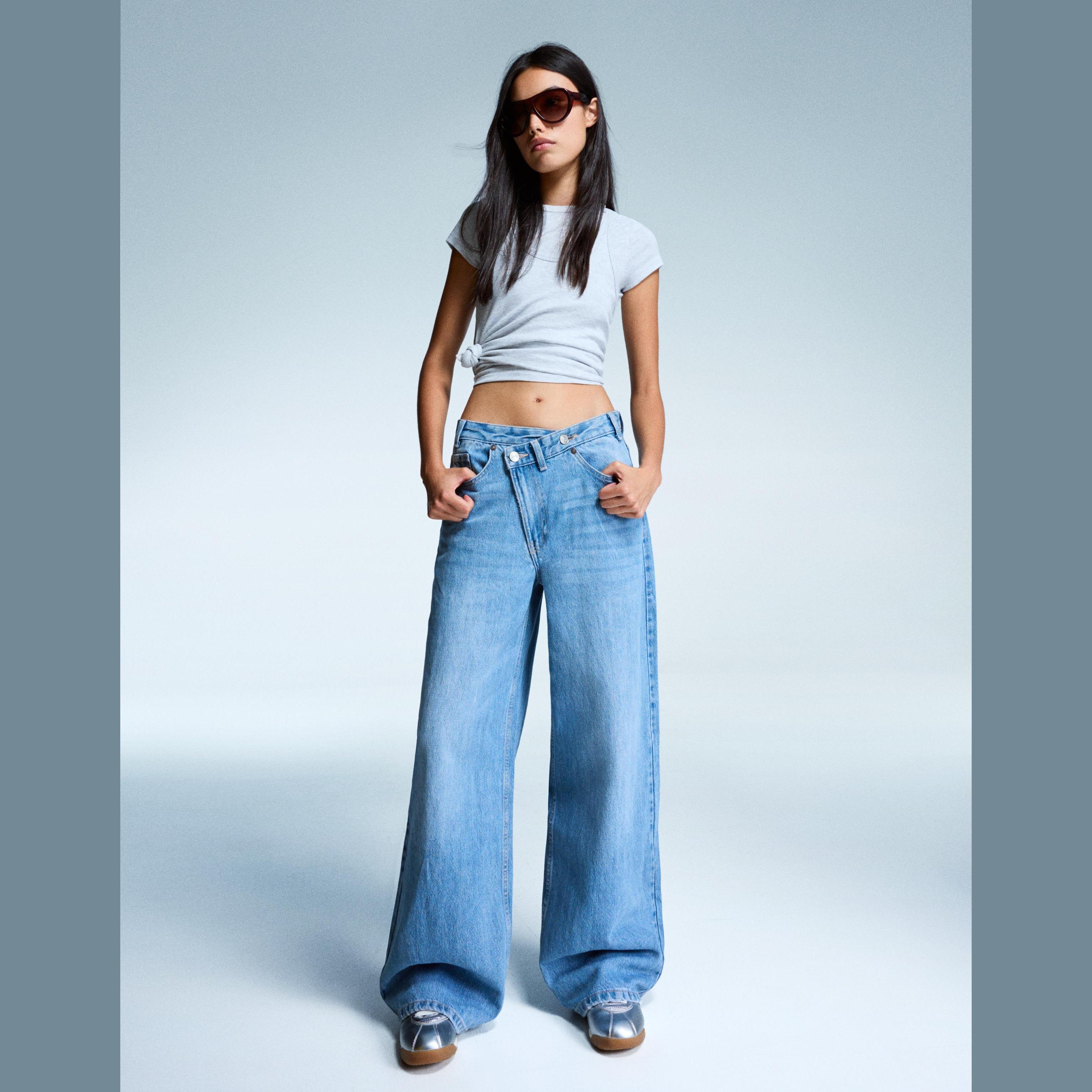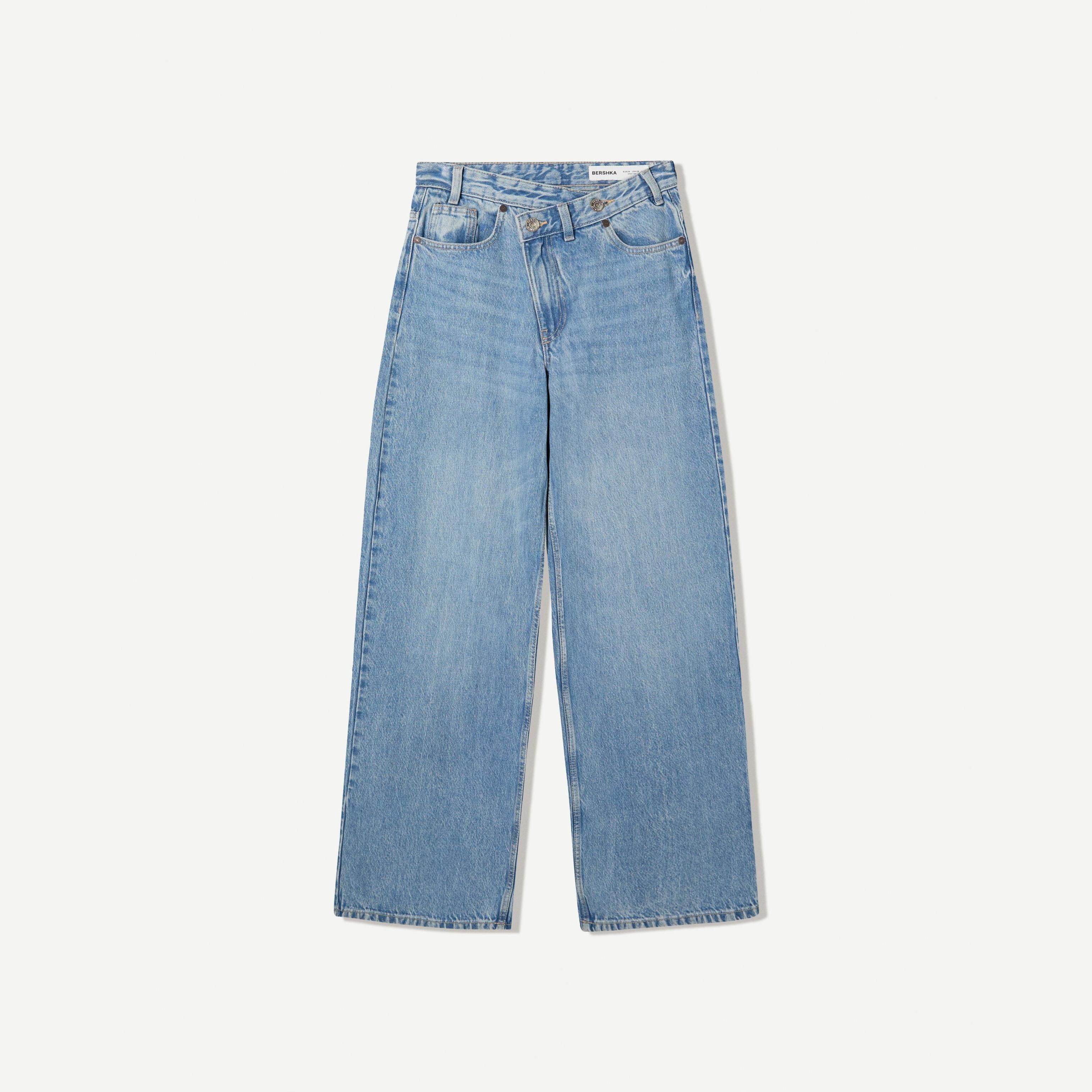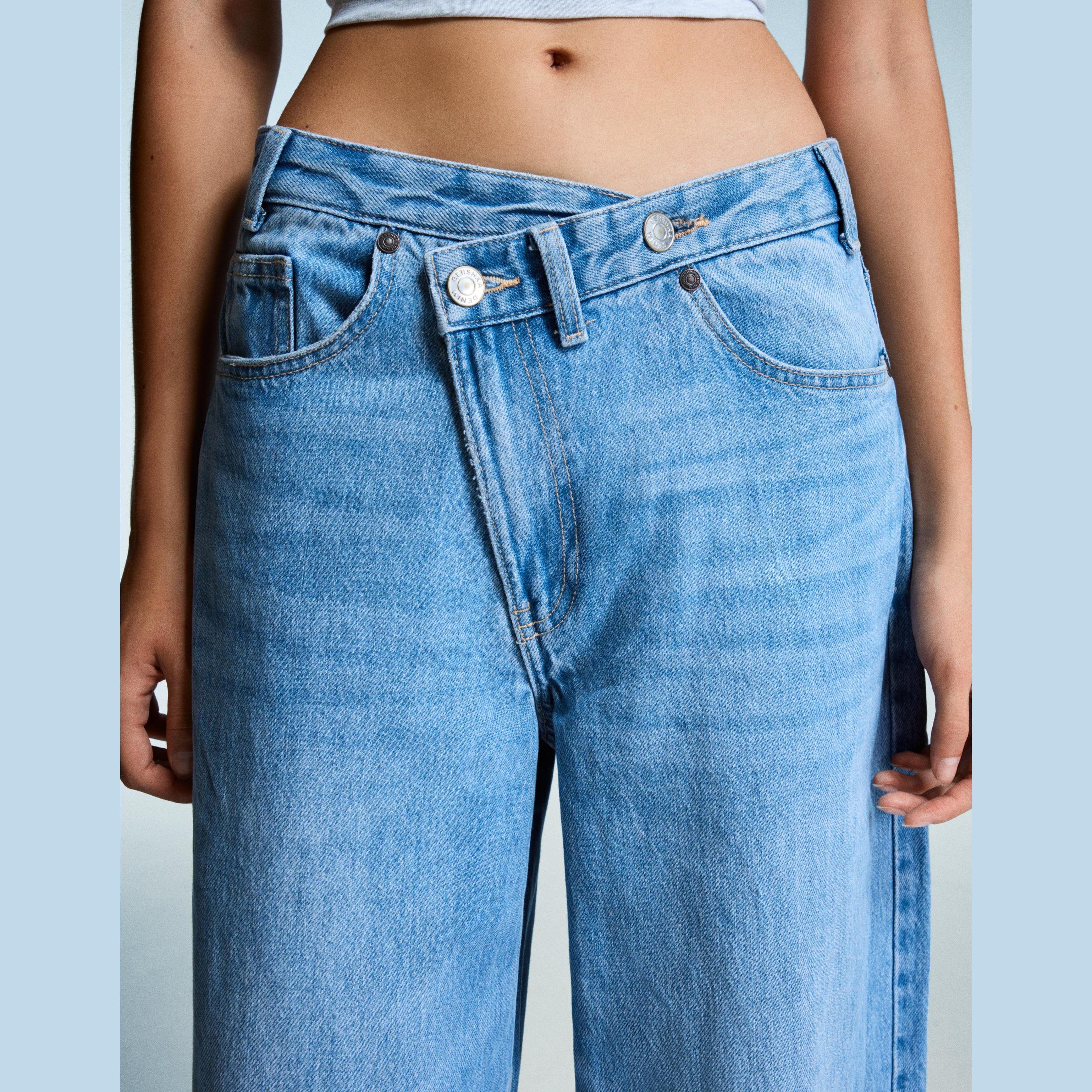 Bershka – جينز واسع الساق بخصر متقاطع للفتيات بلون أزرق فاتح